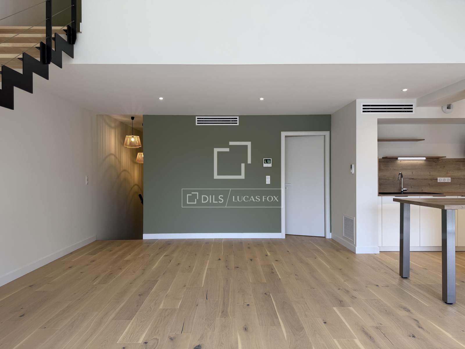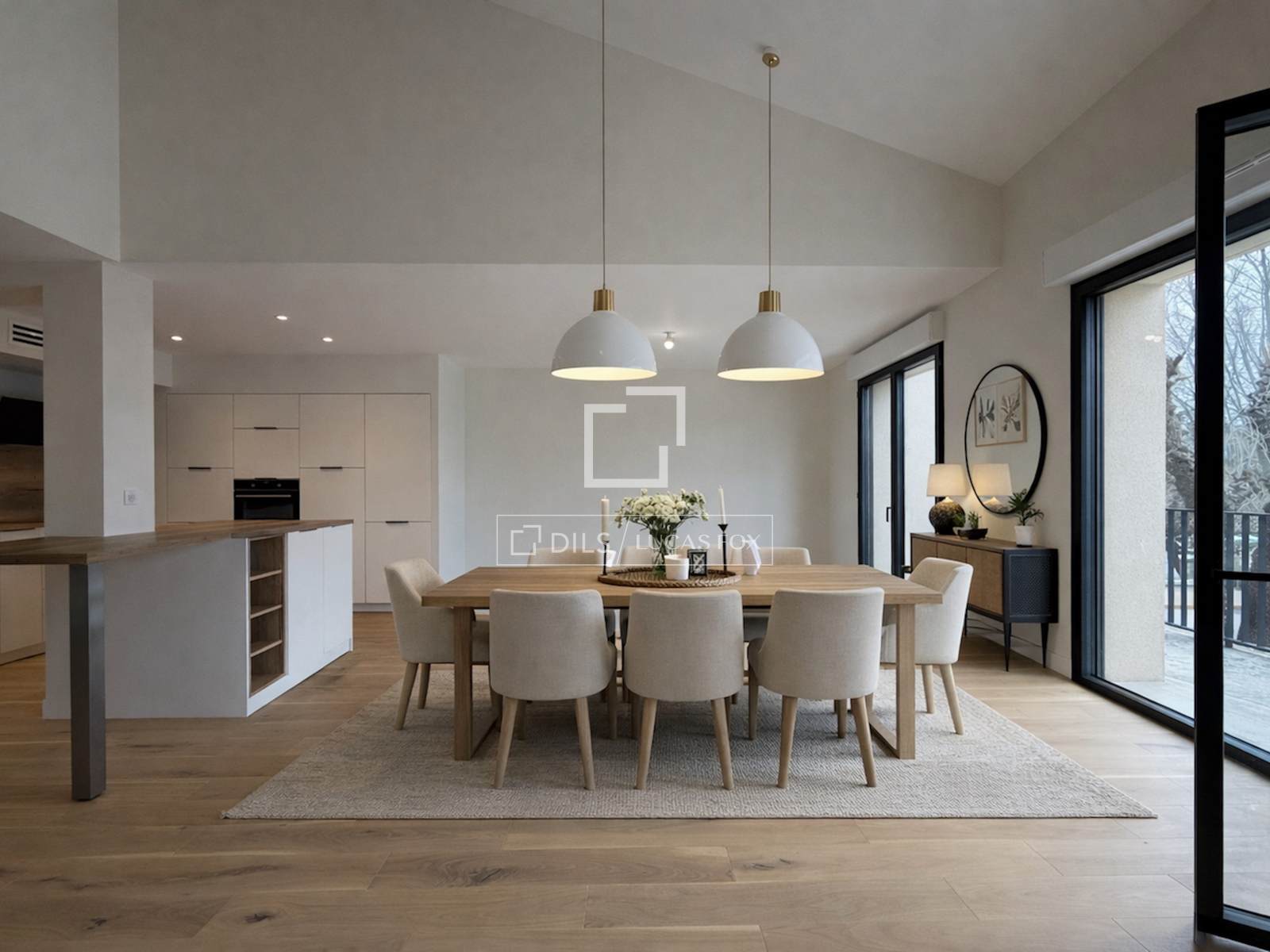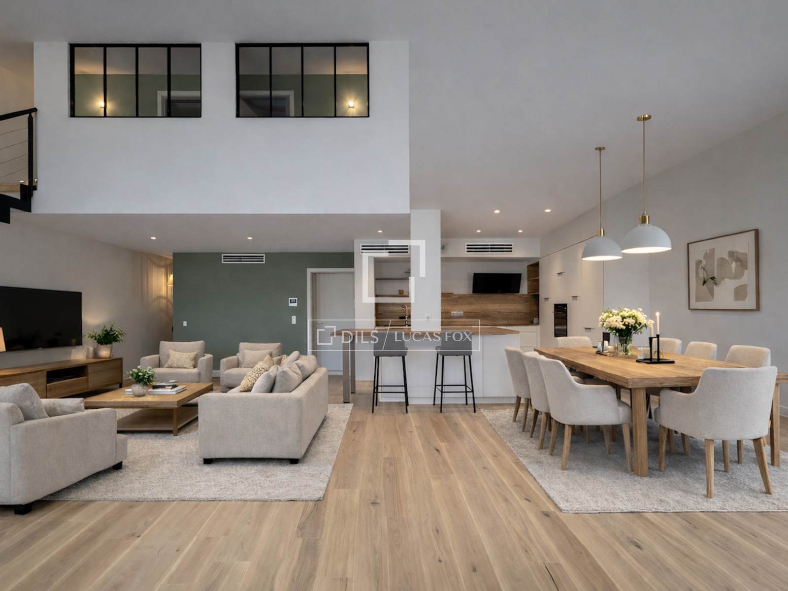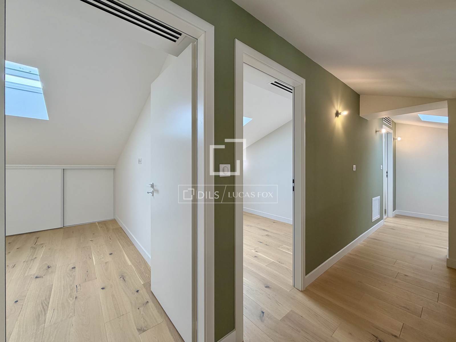 Полностью отремонтированная от пола до потолка с использованием высококачественных материалов, эта квартира площадью 172 кв. м (1844 кв. фута) имеет следующую планировку: прихожая с гардеробной, просторная гостиная с высокими потолками, включающая зону отдыха, столовую и кухню с обеденной зоной и островом. Из гостиной есть выход на террасу с панорамным видом. На том же уровне расположены две спальни, одна из которых с гардеробной, а также отдельный туалет.