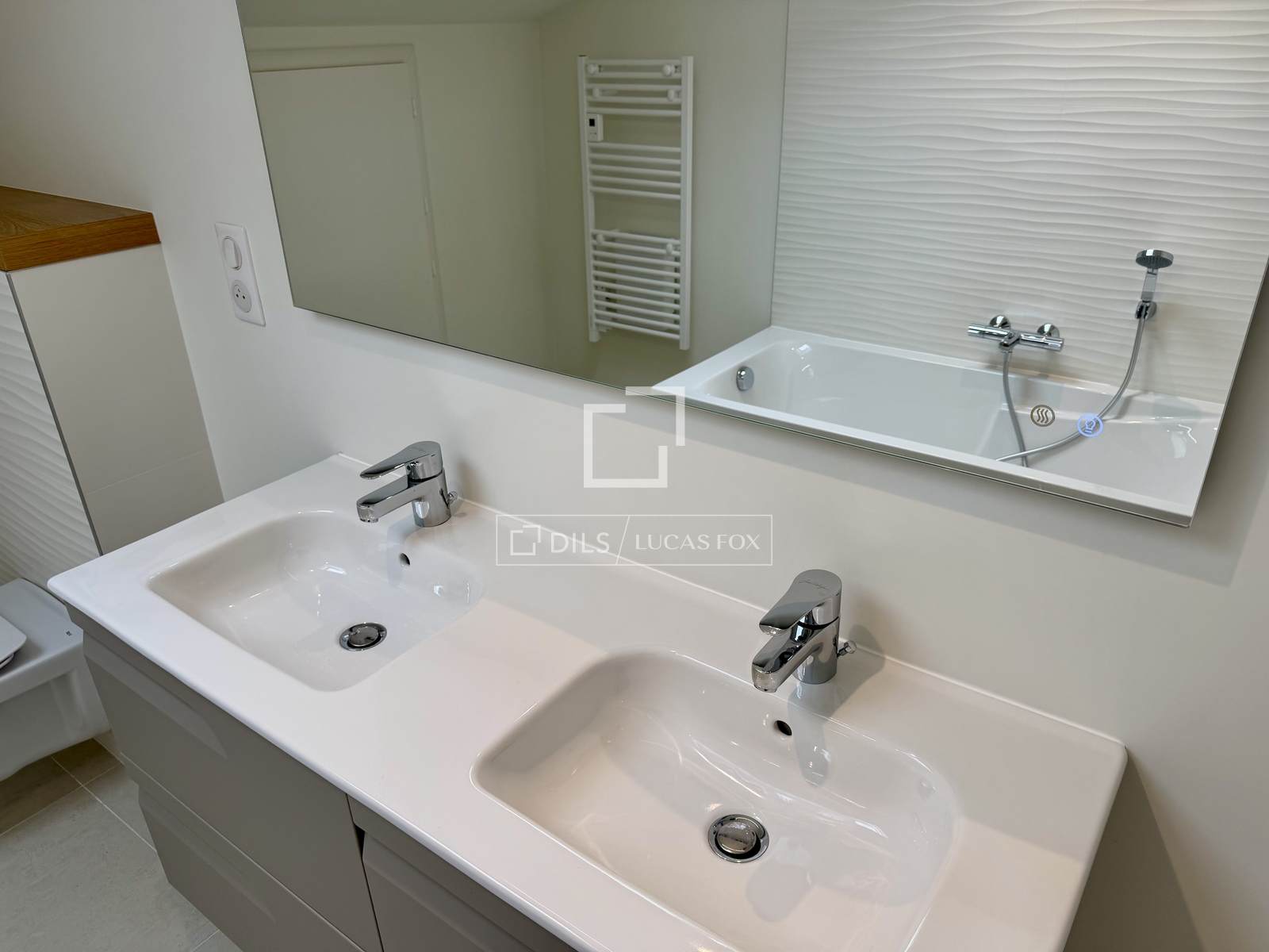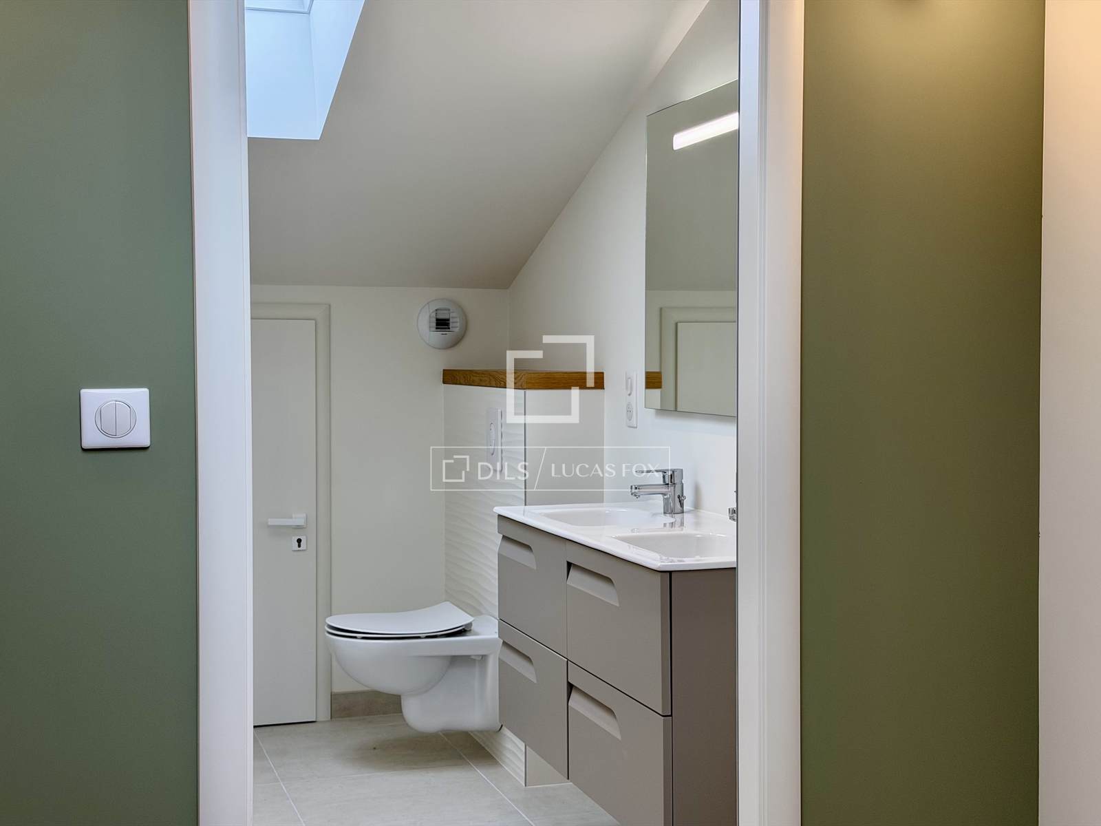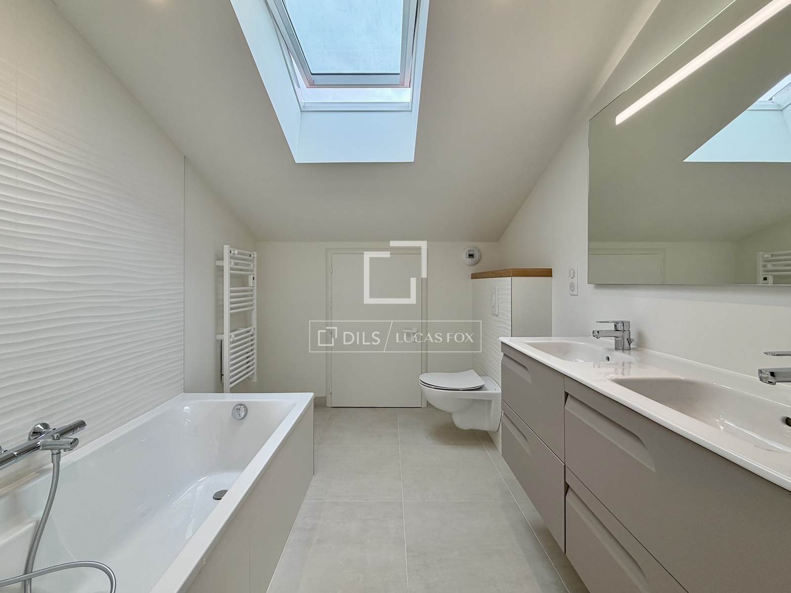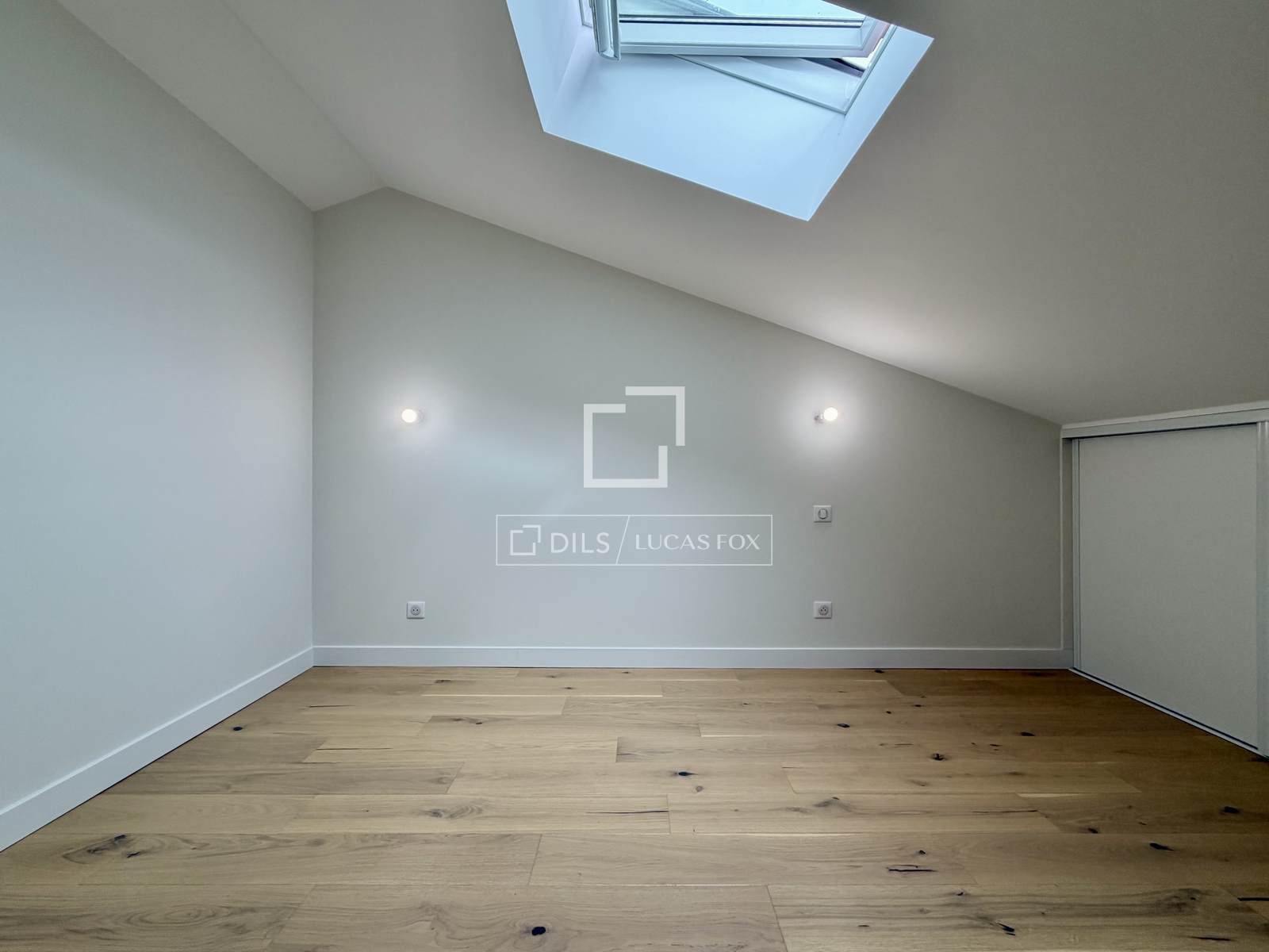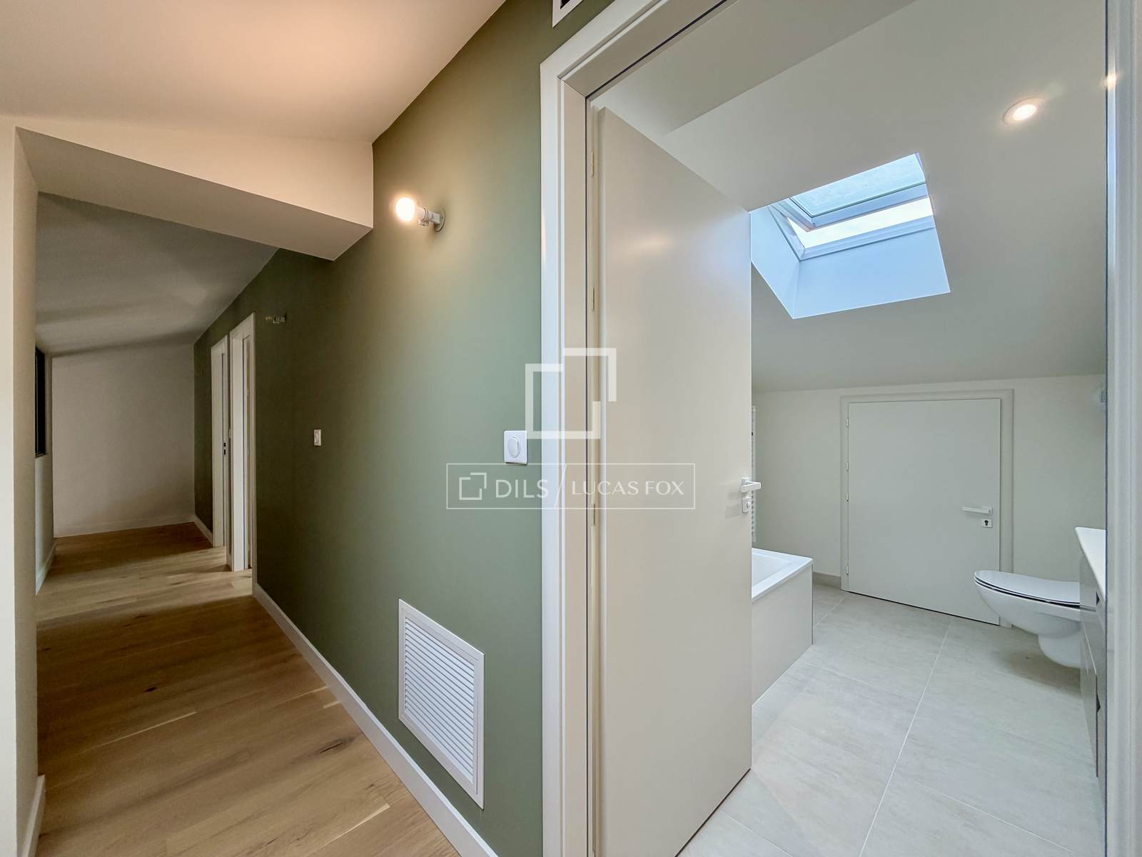 На верхнем этаже расположены две спальни со встроенными шкафами, которые делят прекрасную ванную комнату с туалетом. Дополнительная комната может служить кабинетом или игровой комнатой для детей. На нижнем уровне находится прачечная/кладовая, обеспечивающая дополнительное место для хранения и повышающая функциональность дома. С этого уровня также можно выйти на вторую, более просторную террасу.