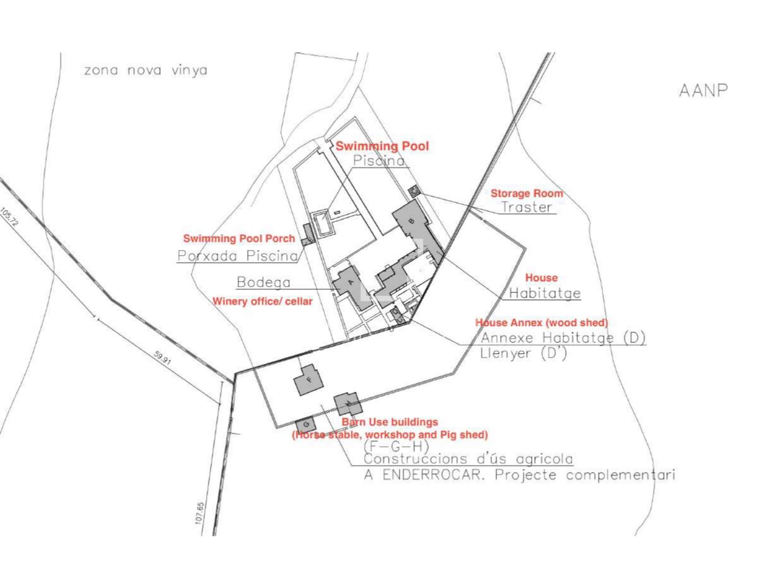На второй территории размещается производственная часть поместья, включая виноградник, винодельню и объекты, связанные с сельскохозяйственной и животноводческой деятельностью. Это пространство спроектировано для эффективной работы, объединяя как зоны выращивания, так и производственные и складские помещения.
