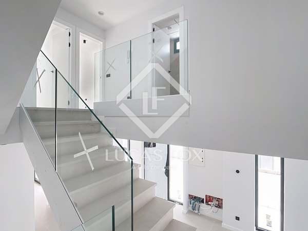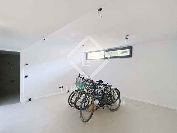 Здание распределено по нескольким этажам. На первом этаже есть комната с отдельным входом, используемая как магазин, входная дверь в дом и третий вход в гараж и склад 125 м² с патио. Его можно интегрировать в единую среду площадью около 200 м².