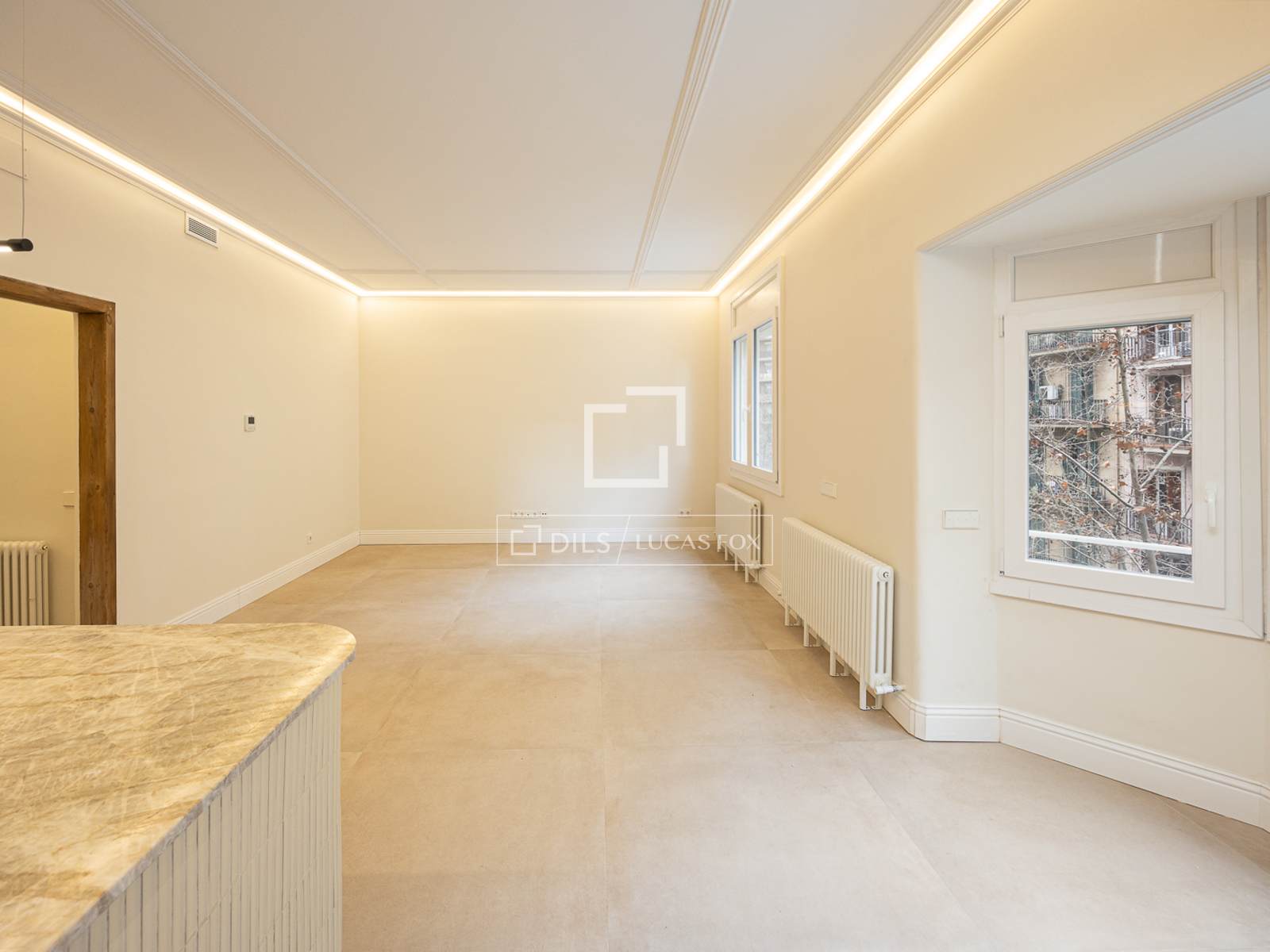 Продается недавно отремонтированная современная квартира с 3 спальнями и 2 ванными комнатами на одной из лучших улиц района Эшампле Лефт в Барселоне, в здании с консьерж-сервисом и лифтом.