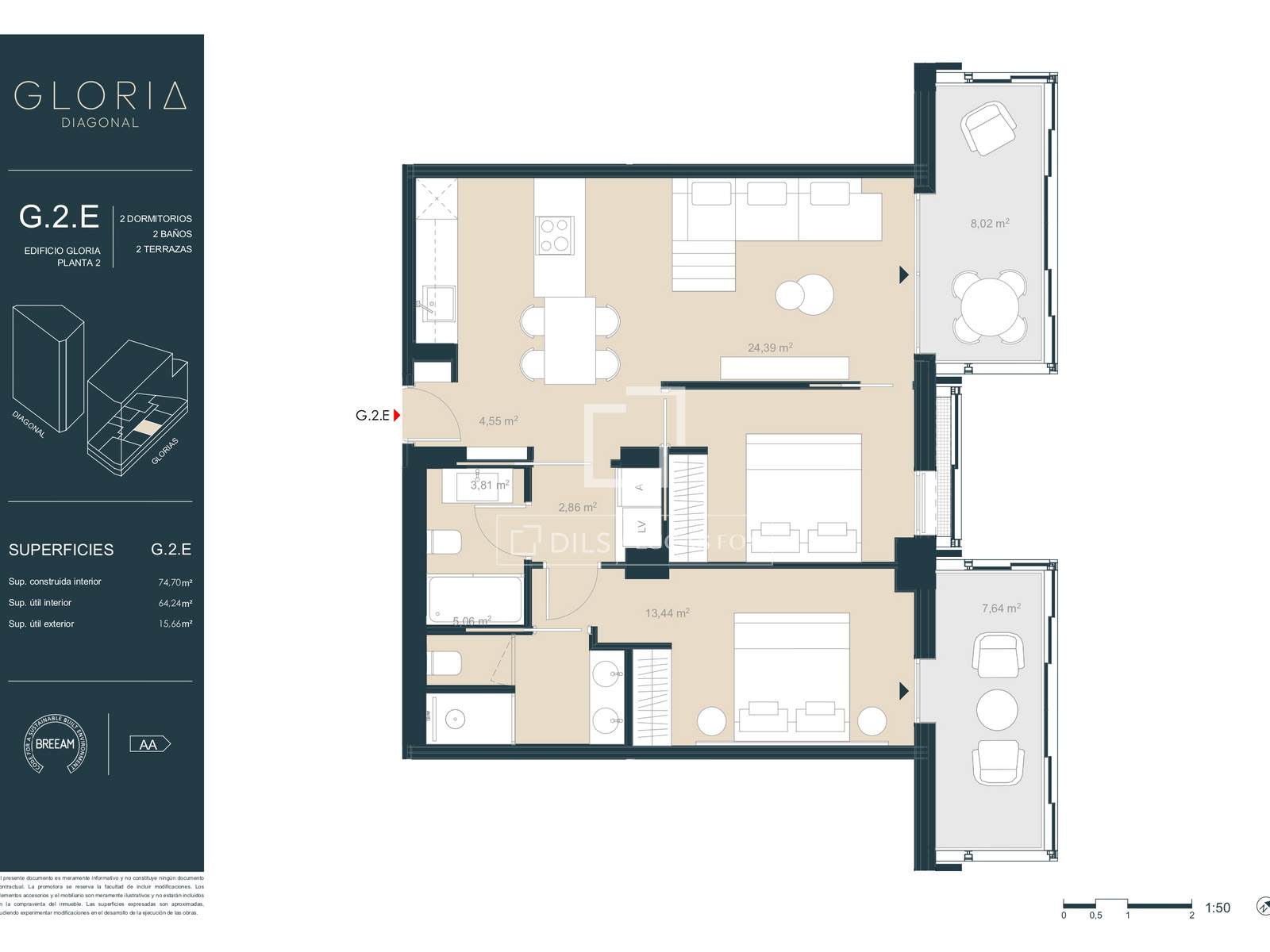 Жилой комплекс Gloria-Park, расположенный на пересечении улиц Диагональ и Картахена, является шедевром, спроектированным престижной студией OAB Studio. Этот новый комплекс состоит из двух впечатляющих башен, Torre Diagonal и Torre Glòries, и предлагает в общей сложности 94 квартиры с одной, двумя, тремя или пятью спальнями, площадью от 75 м² до более чем 350 м² для пентхаусов.