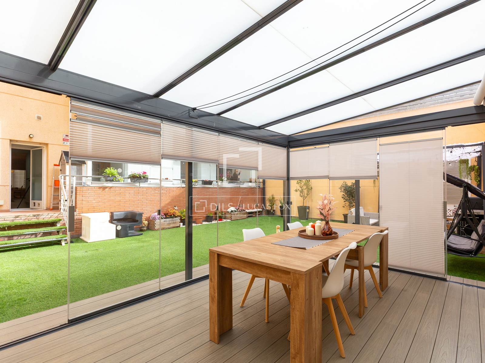- Терраса площадью 115 м2 с застекленной верандой площадью 18 м2