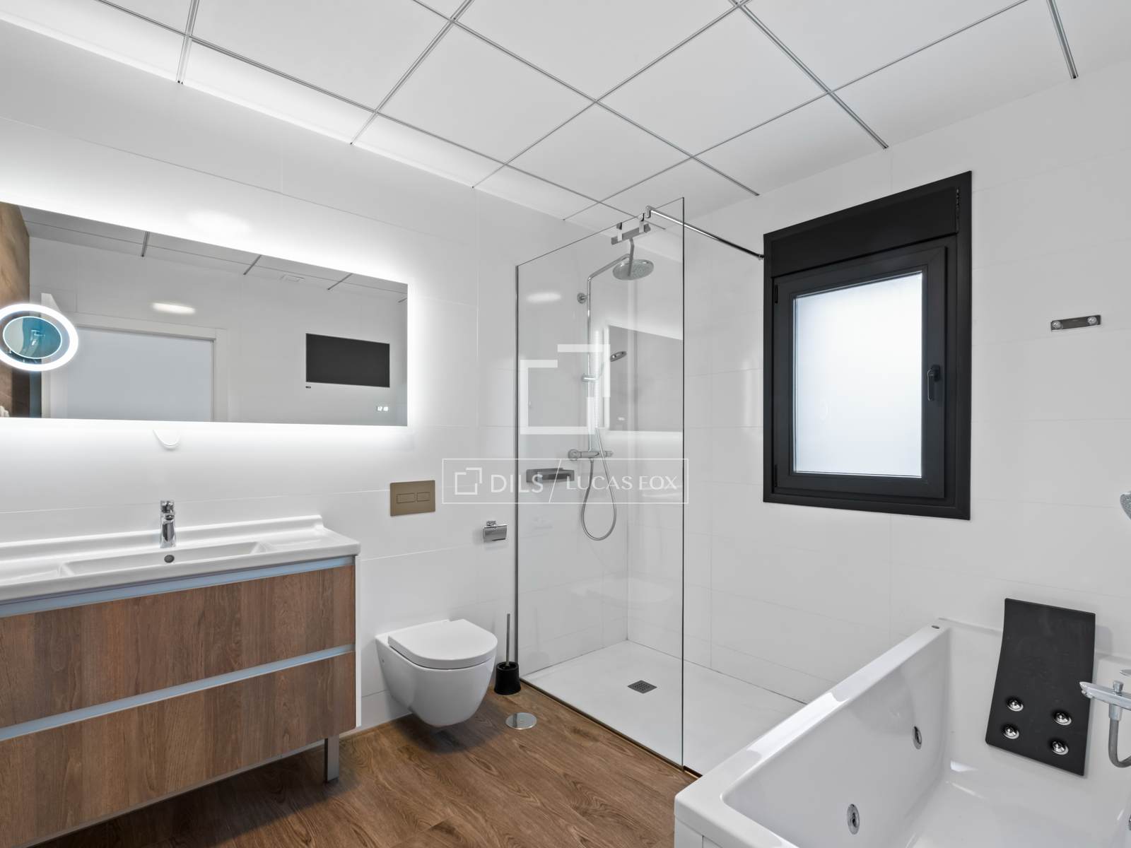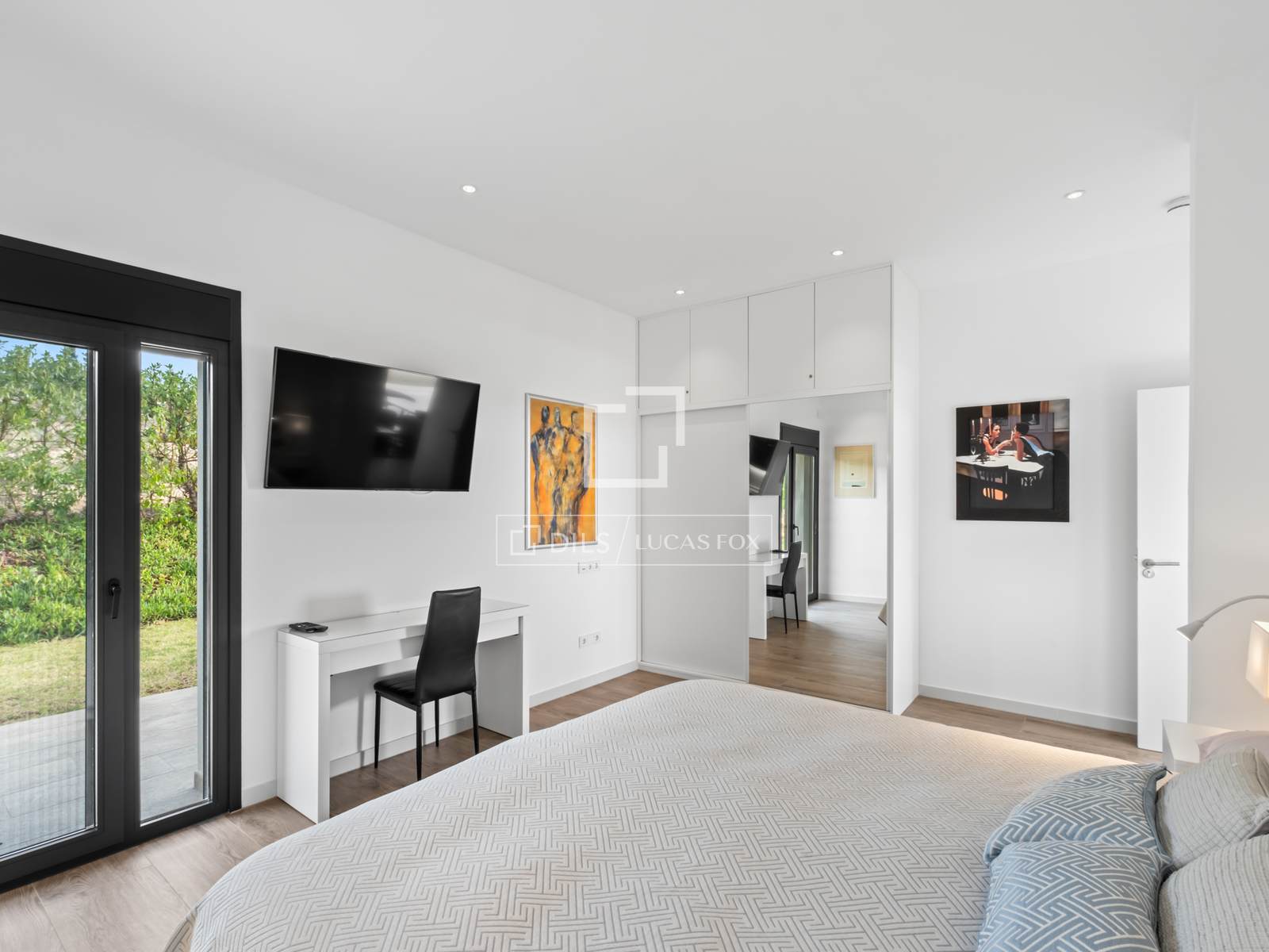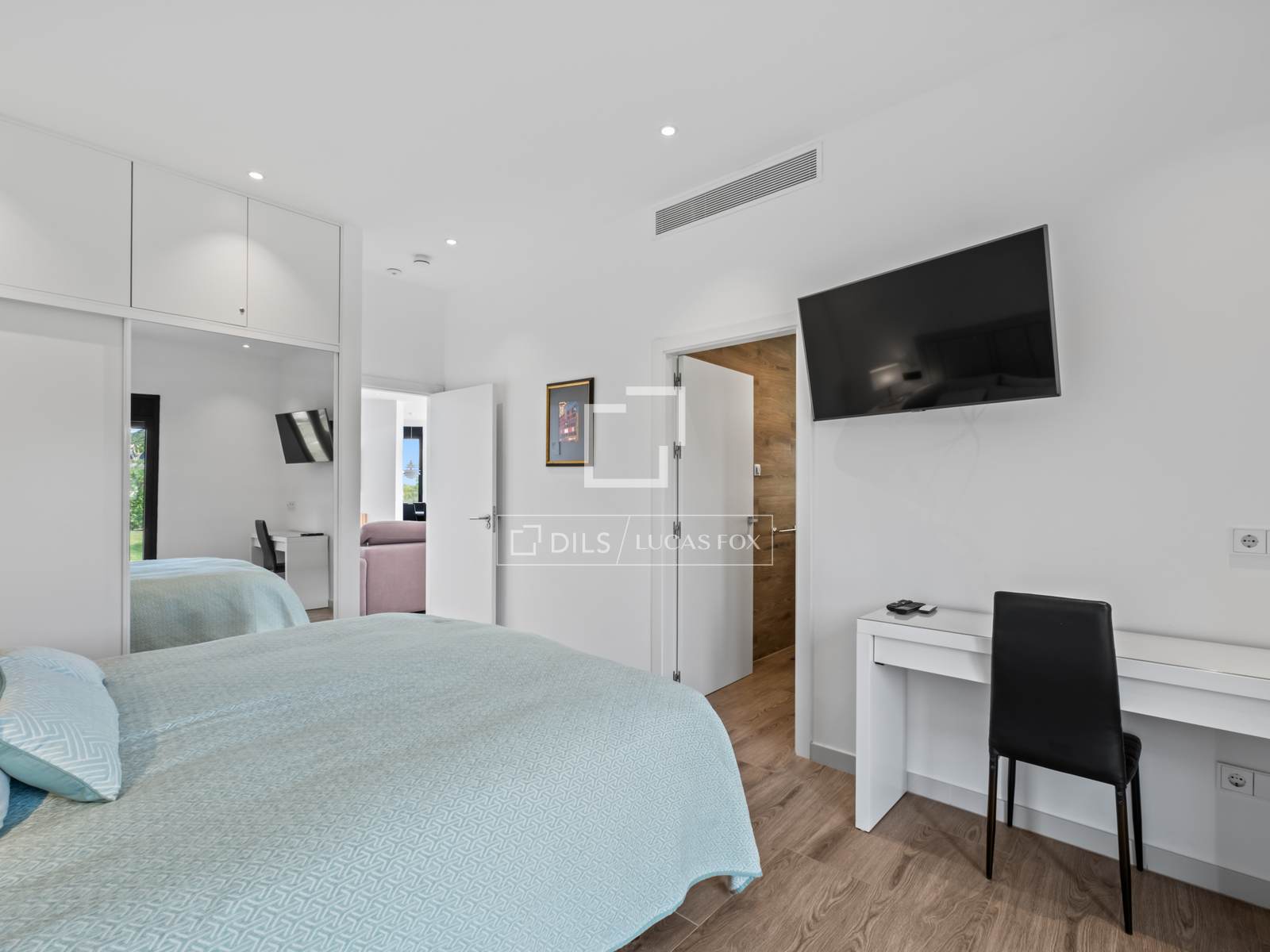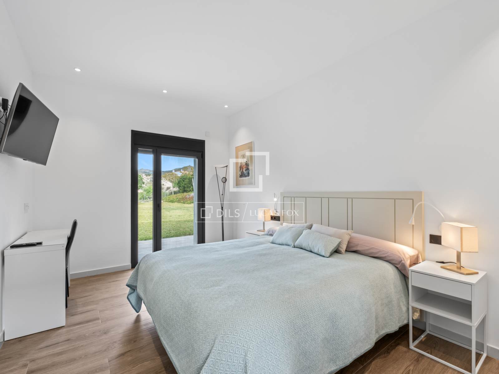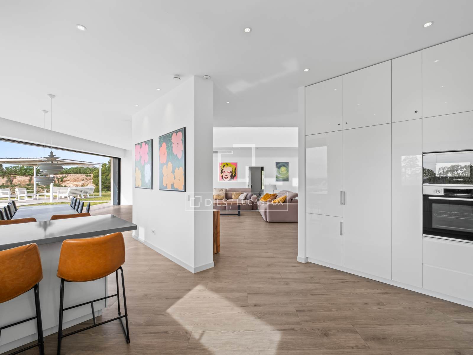Сердцем дома является светлая гостиная открытой планировки, где большие стеклянные двери плавно переходят на внешнюю террасу. Снаружи вы можете насладиться прекрасным бассейном, зоной отдыха и джакузи, идеально расположенными для того, чтобы любоваться потрясающими панорамными видами. На просторном участке также есть гараж и возможность обустроить частный теннисный или падель-корт, что еще больше повысит ценность и привлекательность недвижимости.