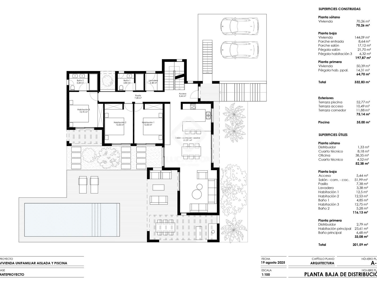 Полностью оборудованная современная кухня оснащена качественной техникой и элегантными шкафами, что обеспечивает одновременно стиль и функциональность. Вилла включает в себя три просторные спальни, каждая со встроенными шкафами, и три современные ванные комнаты, отделанные высококачественными материалами. Также есть возможность добавить четвёртую спальню, кабинет или гостевой люкс в зависимости от ваших потребностей.