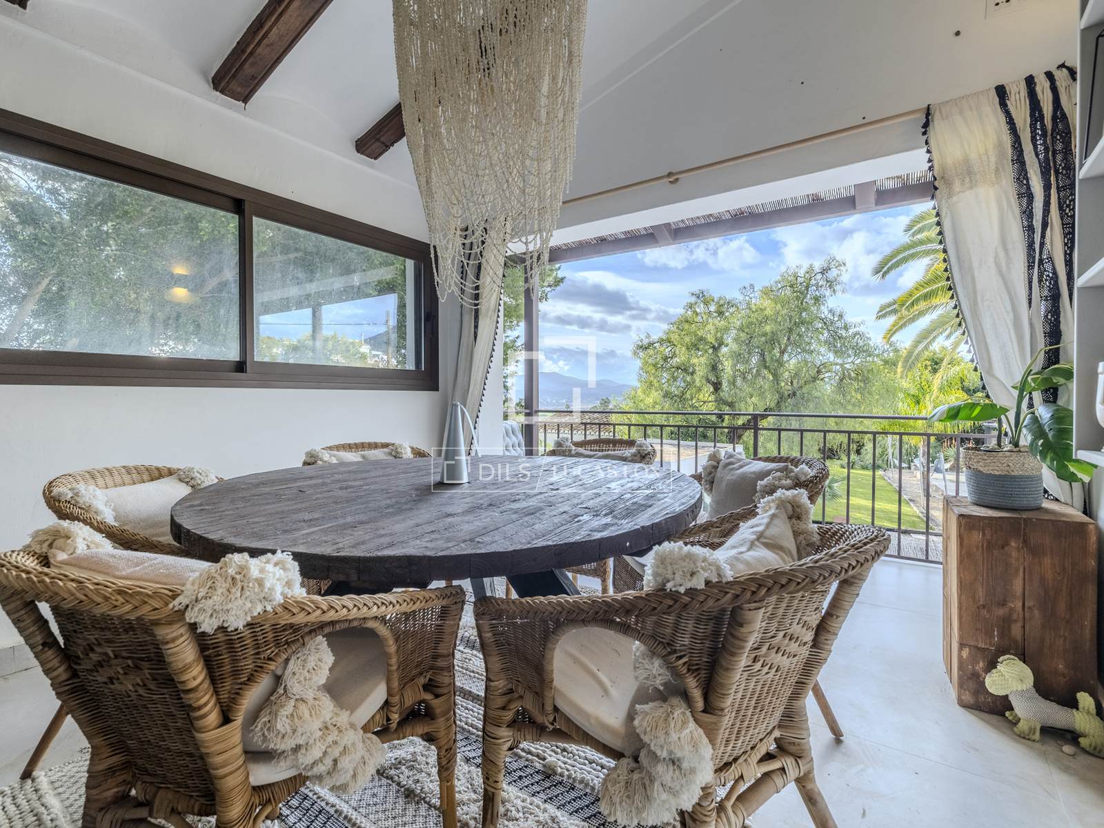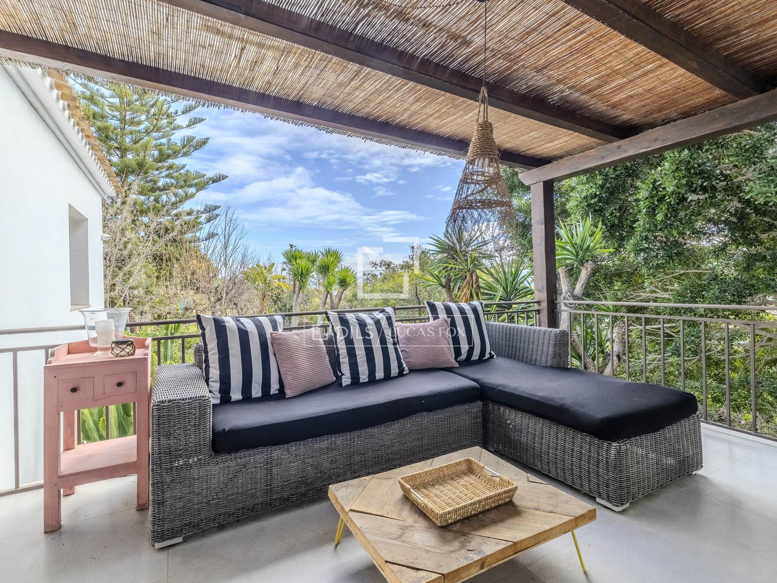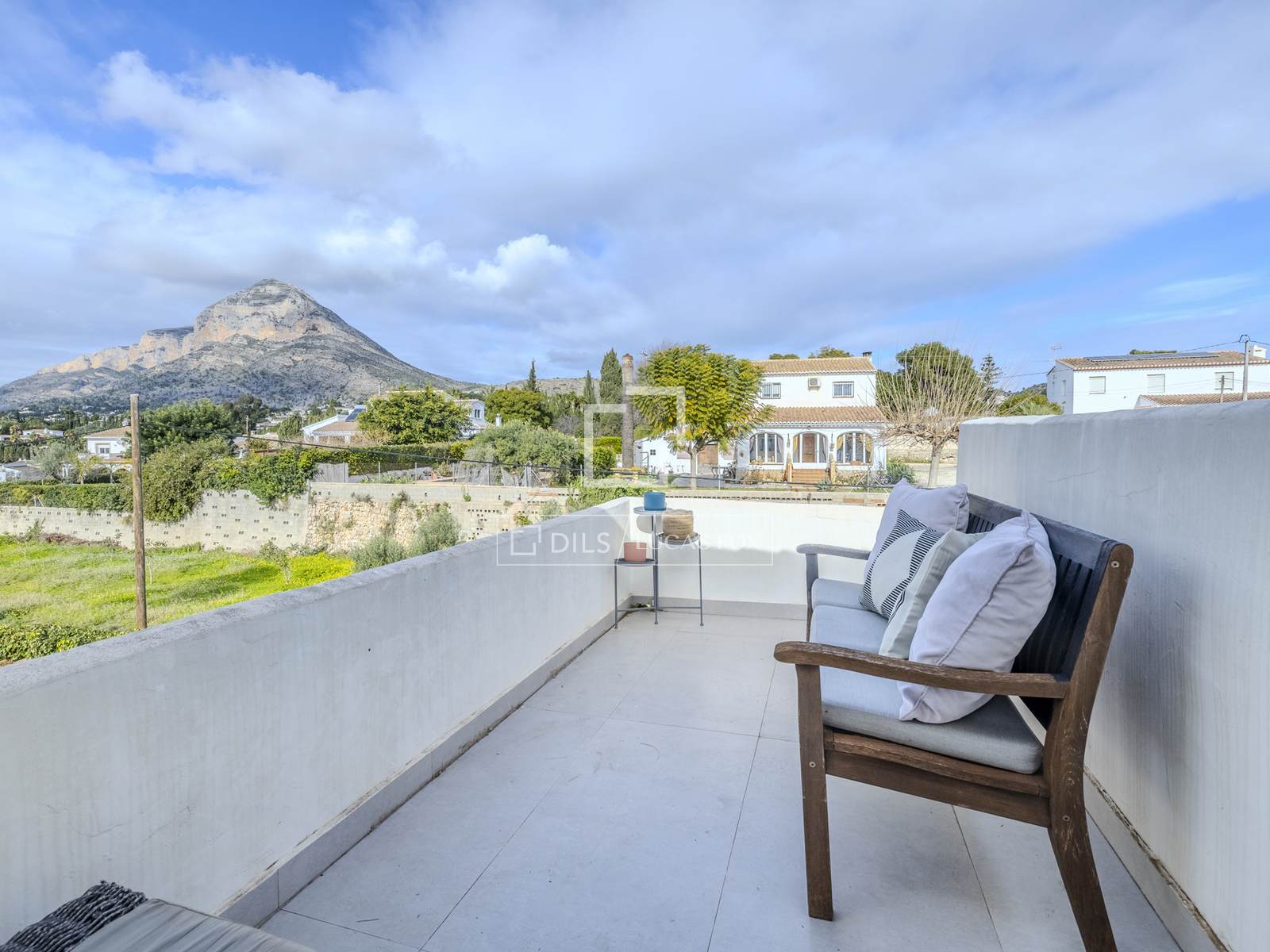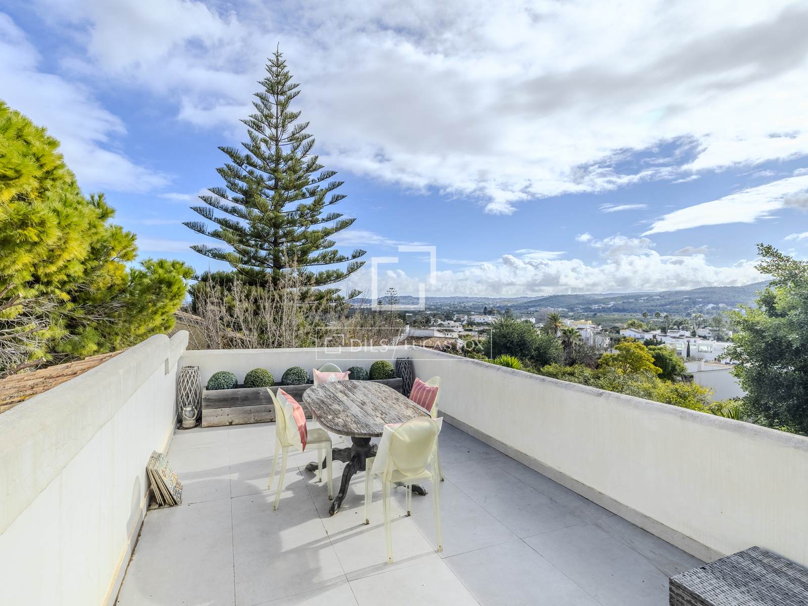 - Большая терраса в задней части дома с видом на долину и частичным видом на море.