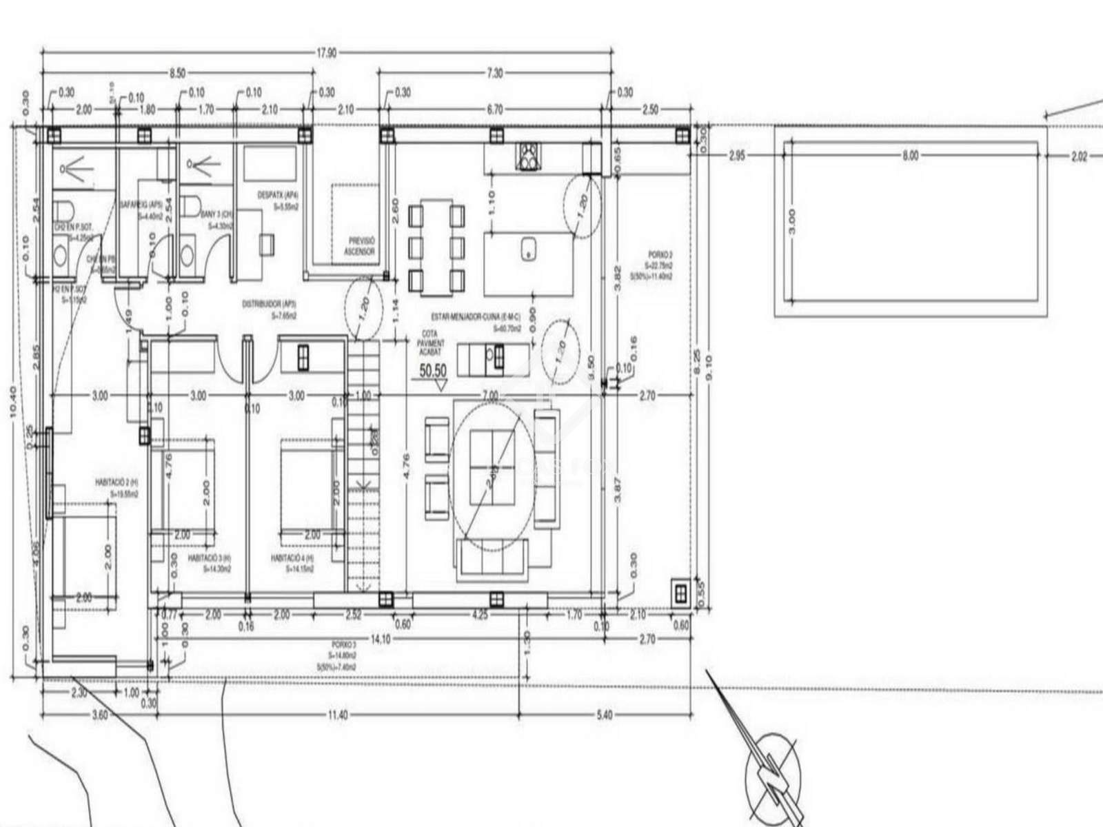 Продается новый дом с 4 спальнями, 3 ванными комнатами, бассейном и садом в жилом комплексе Río de Oro, в 10 минутах от пляжа Сан-Антонио-де-Калонже. Завершение строительства запланировано на лето 2026 года.