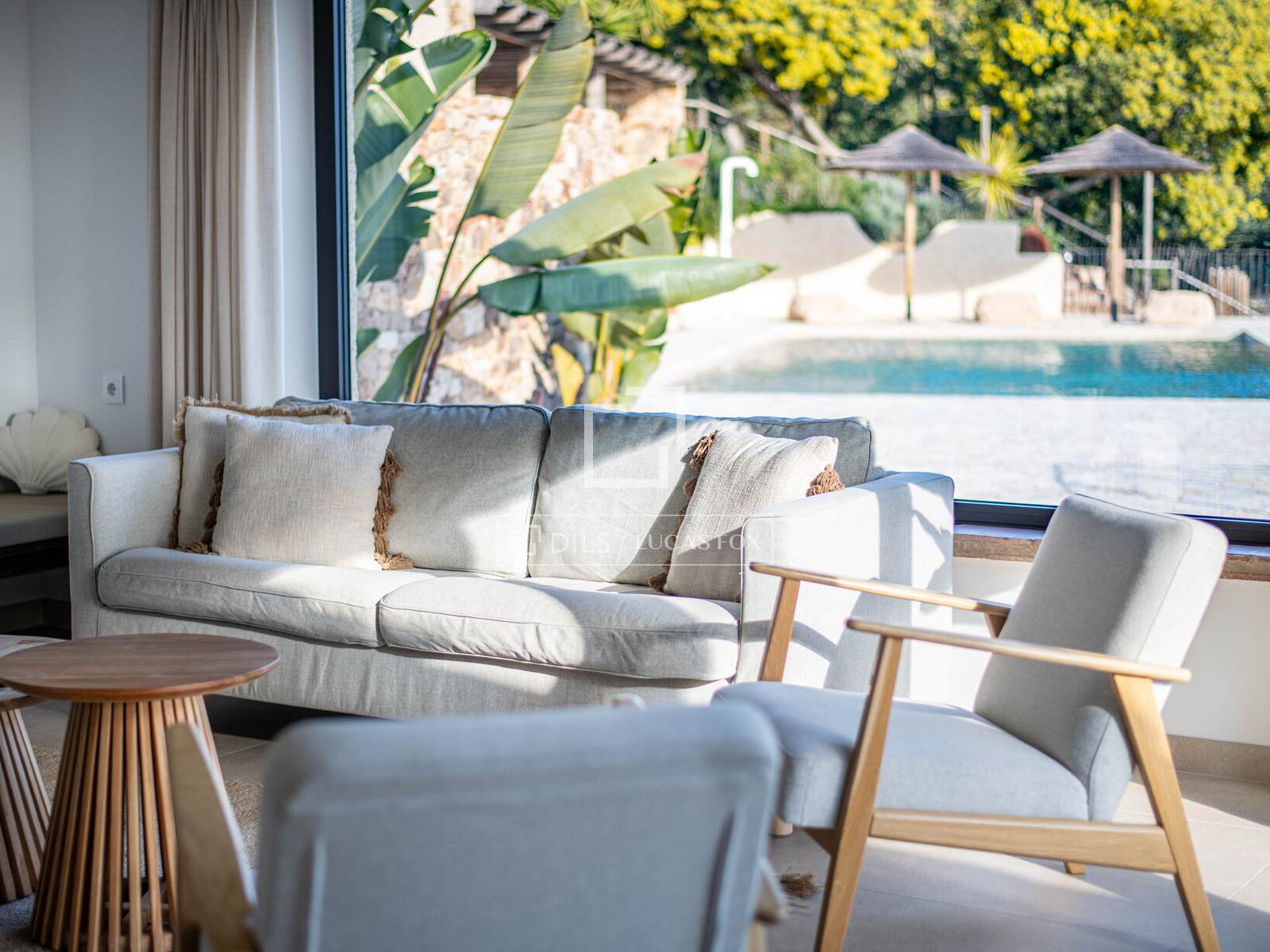 Исключительный комплекс из двух вилл общей площадью 500 кв. м, расположенный на участке площадью более 5000 кв. м с южной ориентацией и панорамным видом на Средиземное море. Комплекс предлагает уединение, архитектурную самобытность и изысканную реставрацию по самым высоким стандартам.
