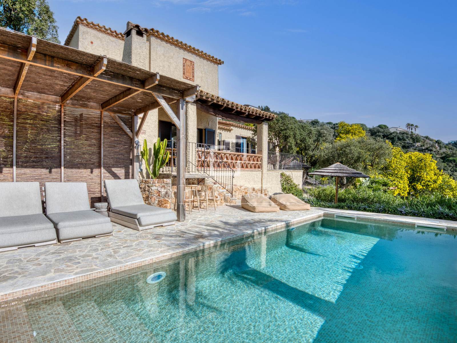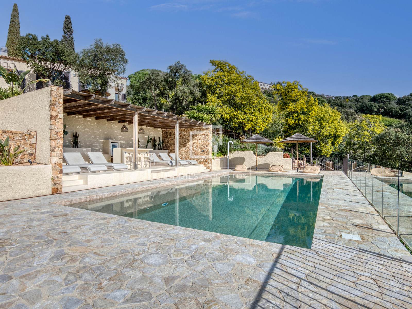 Виллы Mareva: две потрясающие виллы в богемном стиле, недавно полностью отремонтированные, выставлены на продажу. Исключительный комплекс с южной ориентацией, участком более 5000 кв. м, общей площадью застройки 500 кв. м и захватывающим видом на море, расположен в Мас-Ноу, в 7 минутах от пляжа, в Платжа-д'Аро.
