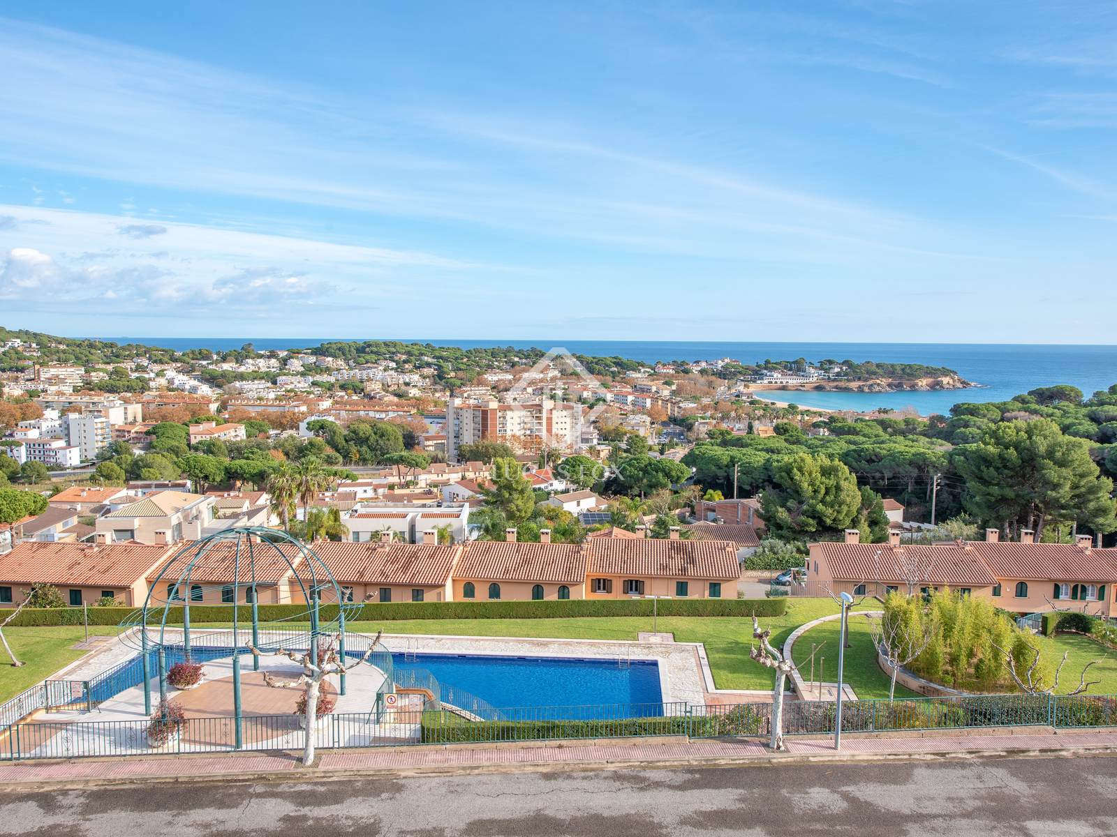 Вилла Mirador — элегантный таунхаус с видом на море, солнечными террасами и общим бассейном на продажу в С'Агаро, в 5 минутах от Сан-Поля, одного из самых красивых пляжей на побережье Коста-Брава.