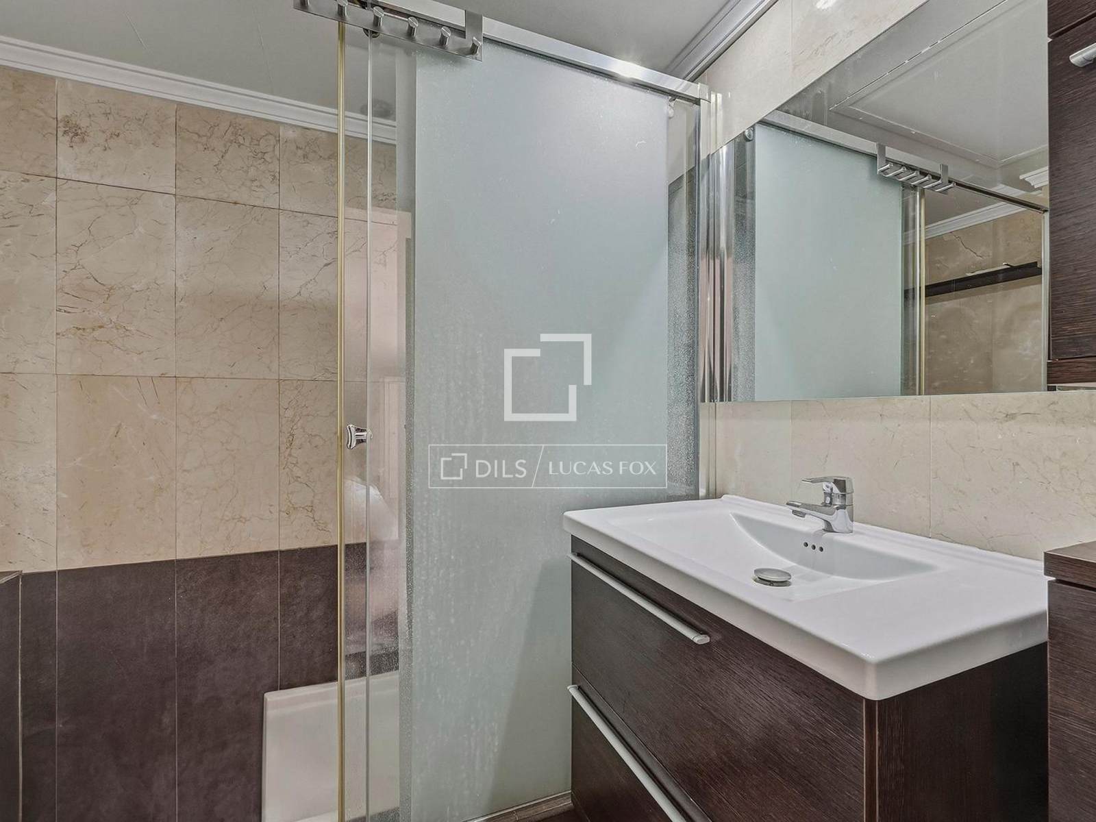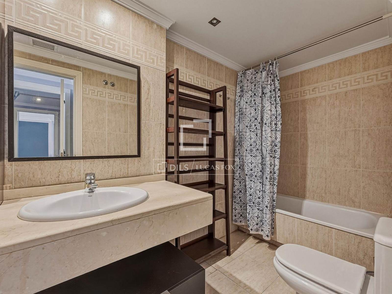 На первом этаже находится просторный холл со встроенным шкафом, две большие спальни и две ванные комнаты, одна из которых примыкает к спальне. Светлая гостиная-столовая имеет прямой выход на частную террасу, а полностью отремонтированная кухня представляет собой современное и функциональное пространство.