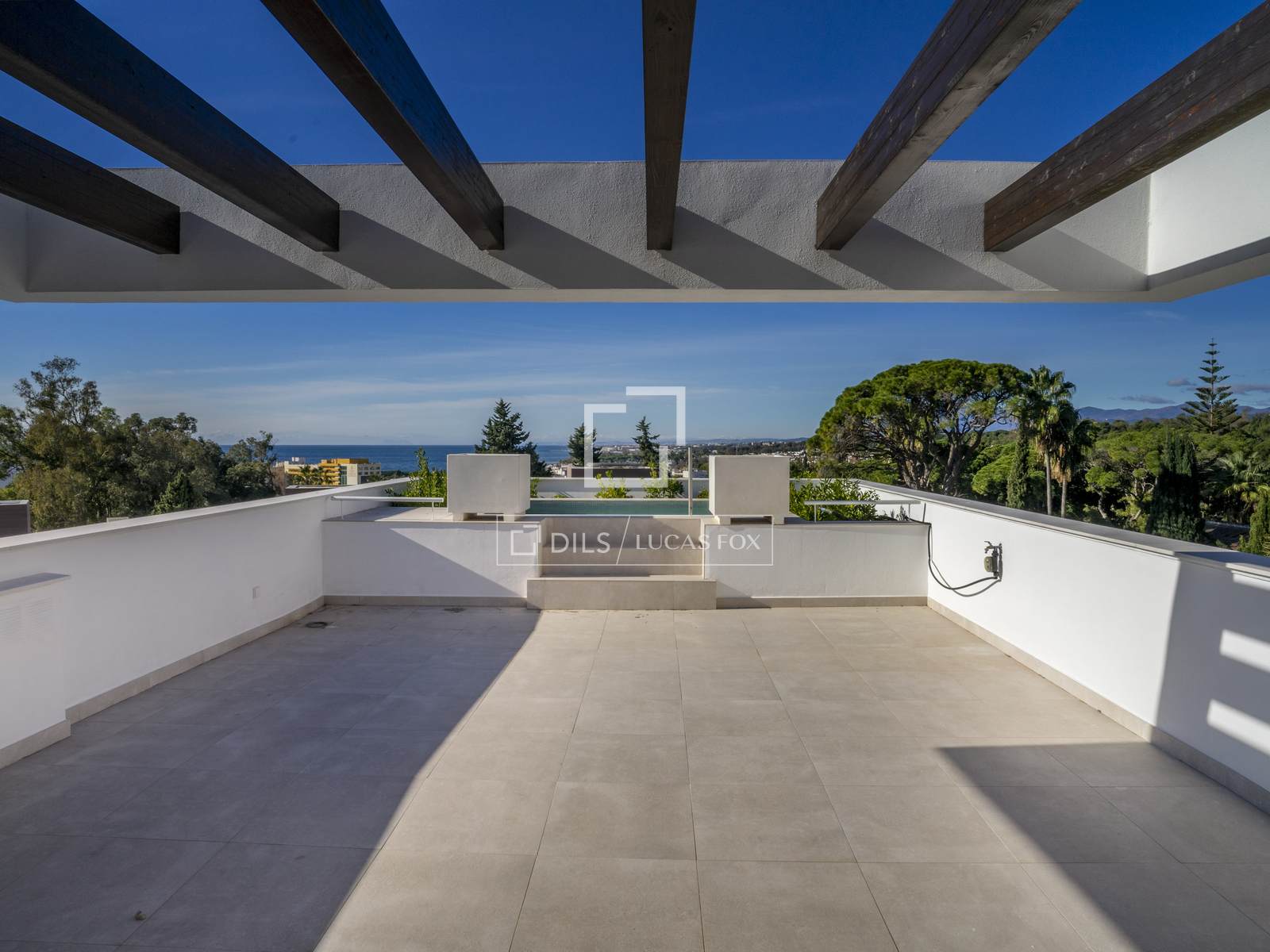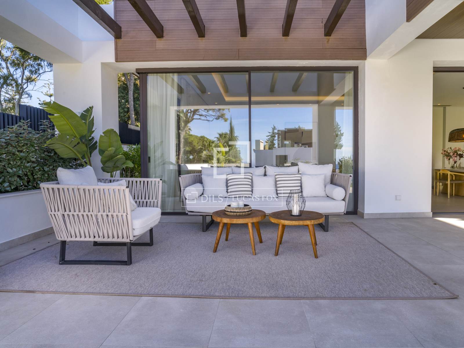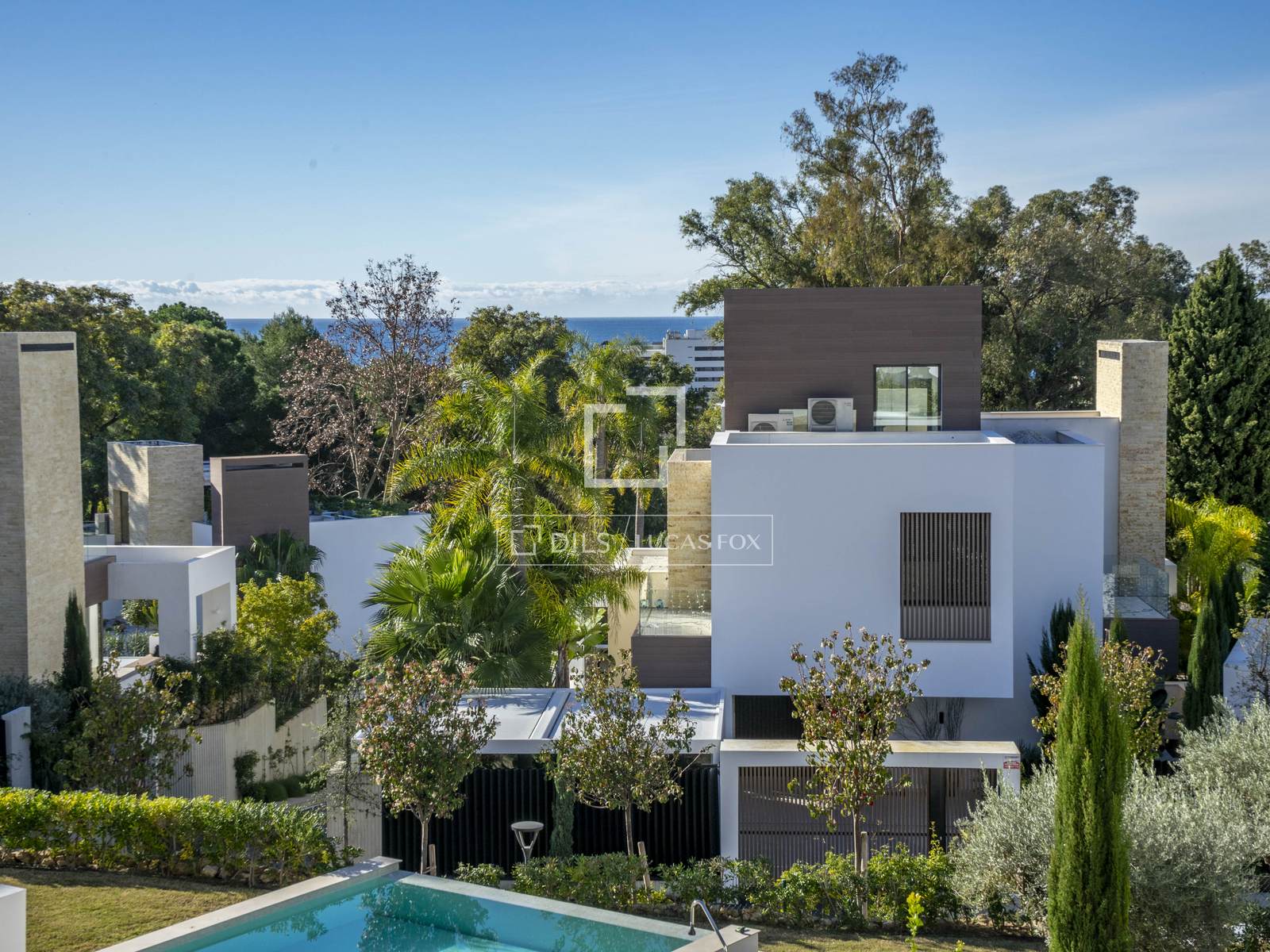 Вилла с четырьмя спальнями, построенная в 2023 году, расположена в небольшом закрытом жилом комплексе с круглосуточной охраной на Золотой Миле Марбельи. Она находится всего в нескольких шагах от пляжа, Marbella Club и Puente Romano.