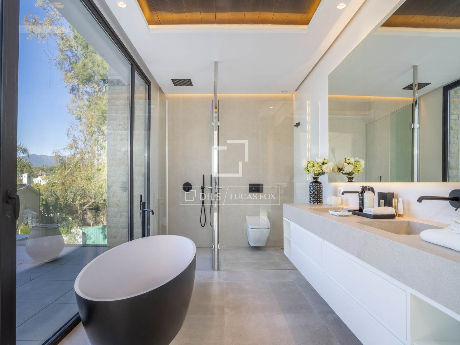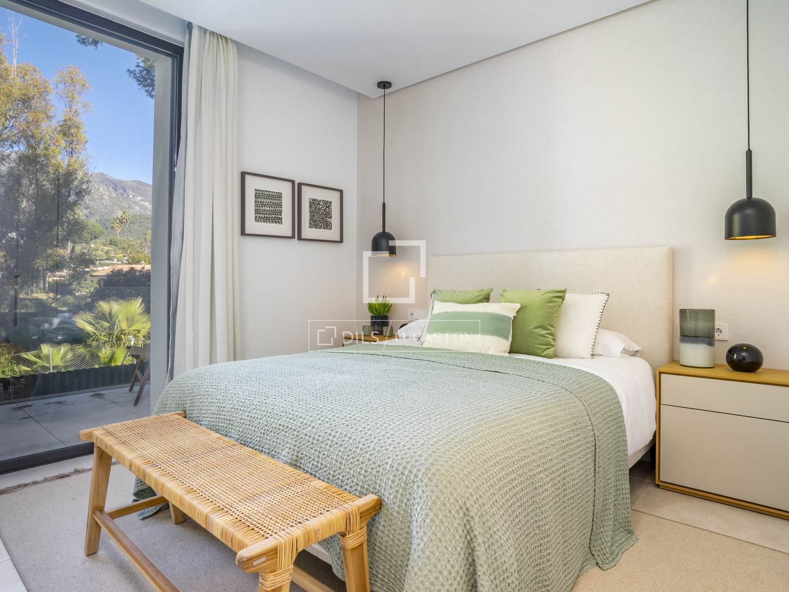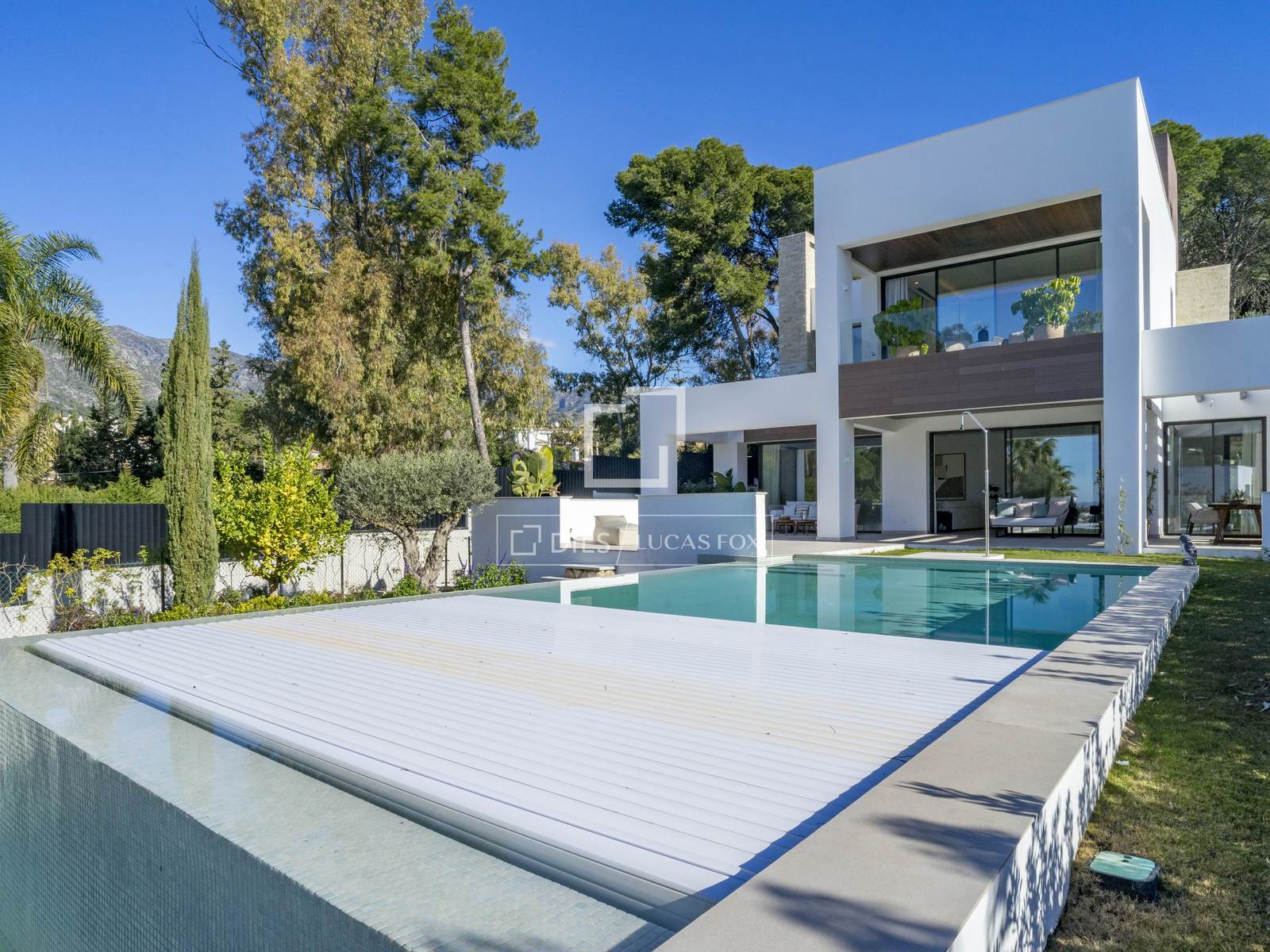 Вилла с четырьмя спальнями, построенная в 2023 году, расположена в небольшом закрытом жилом комплексе с круглосуточной охраной на Золотой Миле Марбельи. Она находится всего в нескольких шагах от пляжа, Marbella Club и Puente Romano.