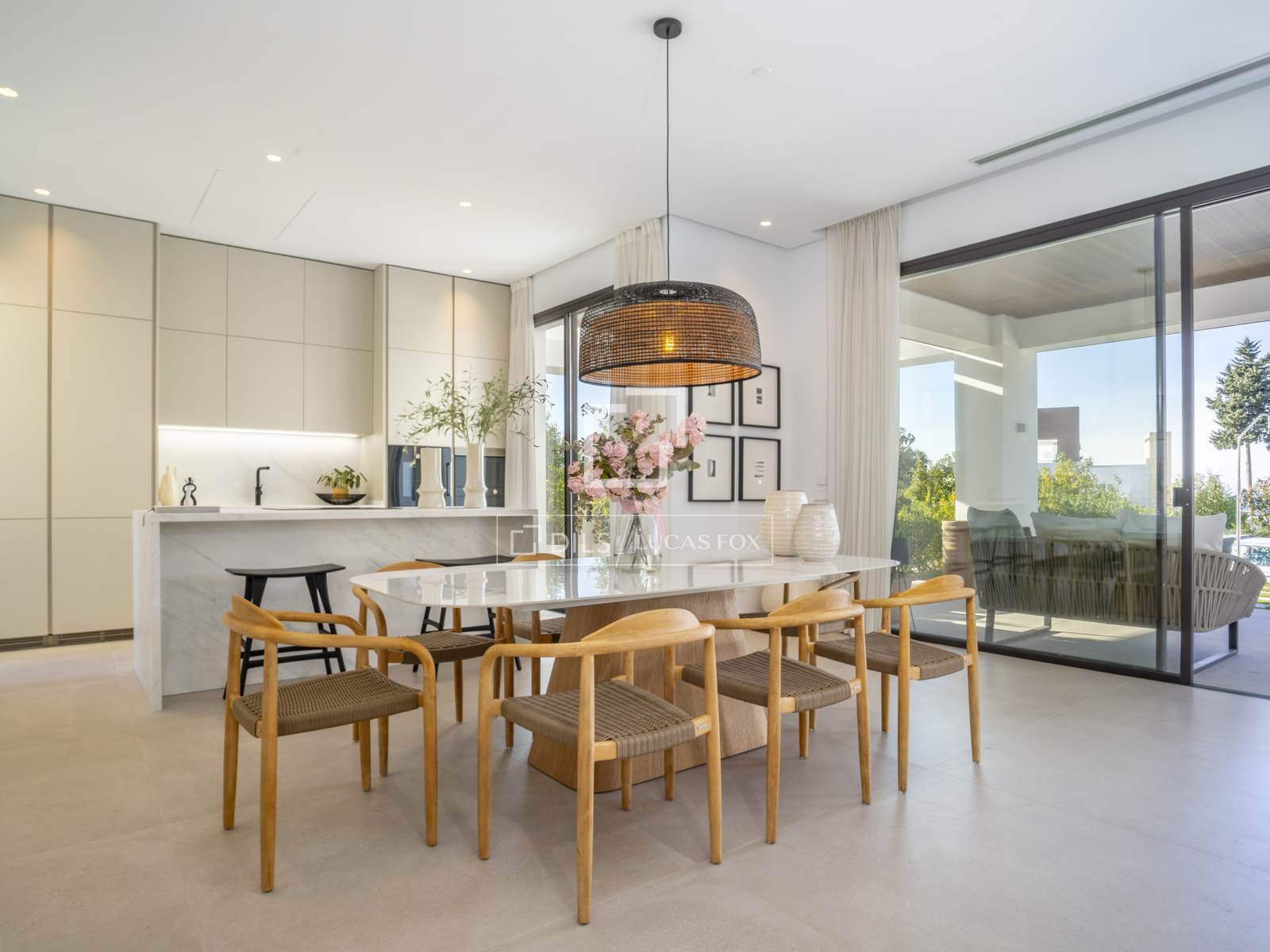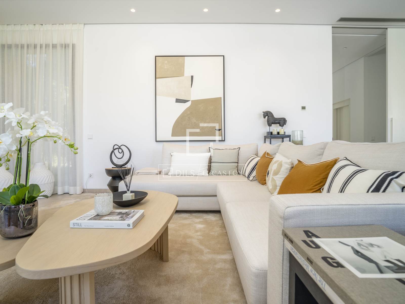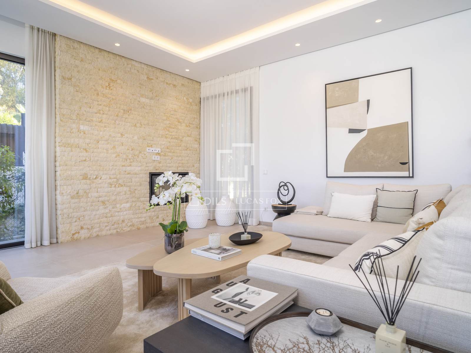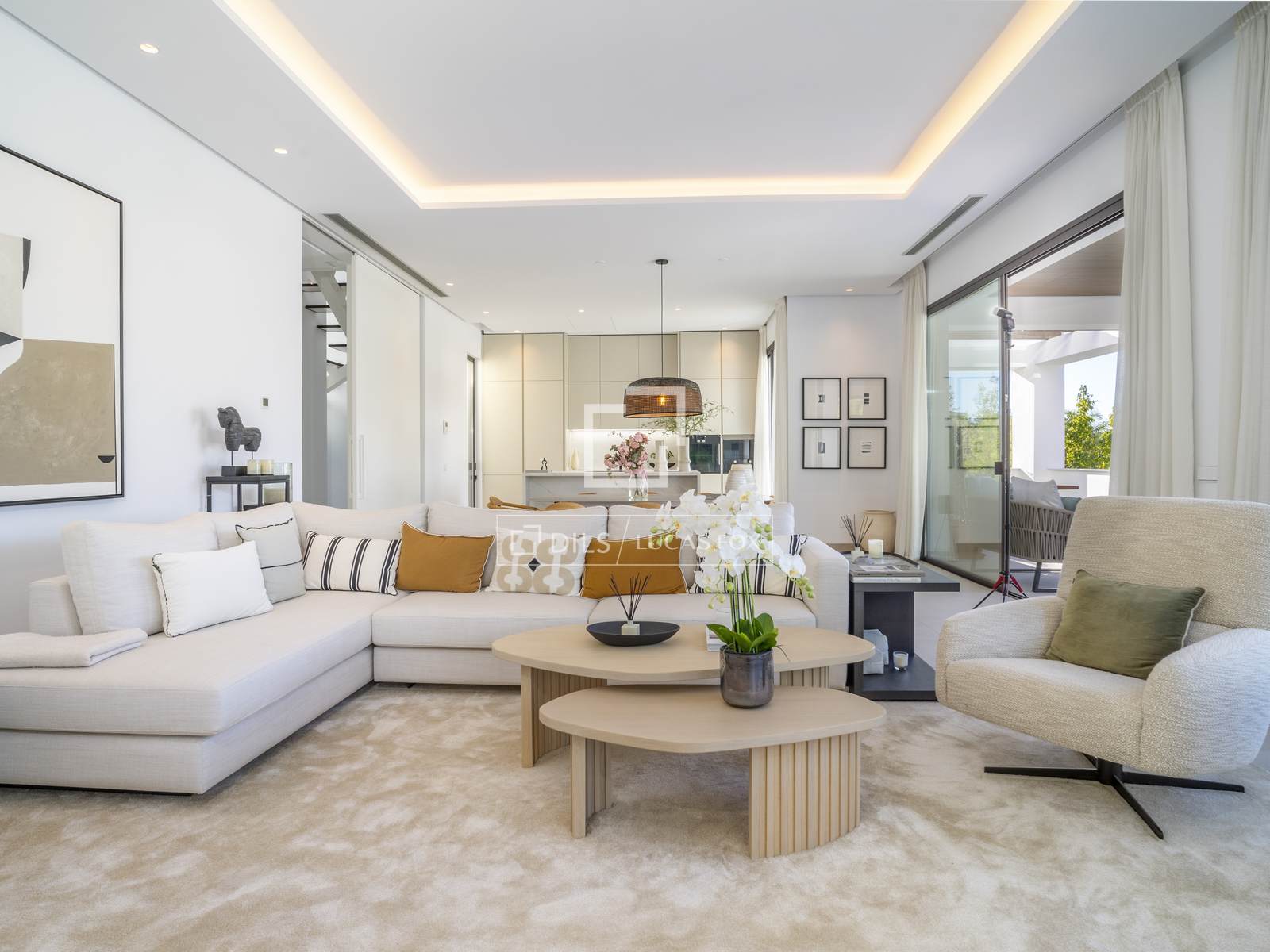 С того момента, как вы переступите порог, вилла очарует вас своей роскошью и тщательно продуманным дизайном. Просторная гостиная с высокими потолками и большими окнами залита естественным светом, подчеркивая каждую деталь изысканного интерьера. Открытая планировка плавно соединяет гостиную, столовую и современную кухню, создавая гармоничное и уютное пространство, идеально подходящее как для приема гостей, так и для более камерных встреч.