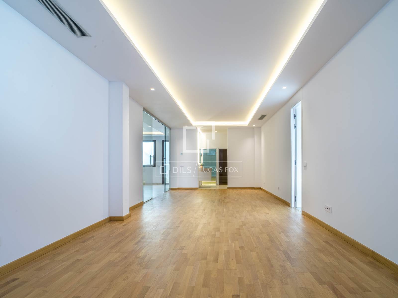 Просторная гостиная с высокими потолками и обилием естественного света.