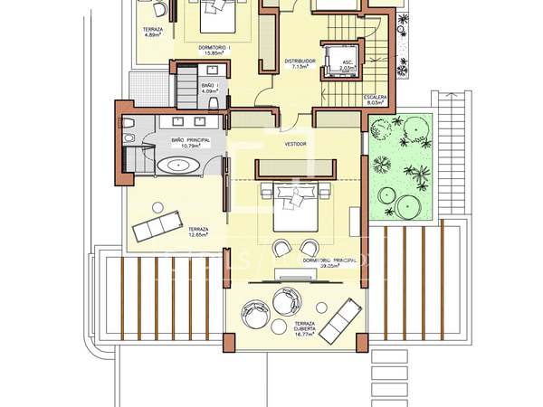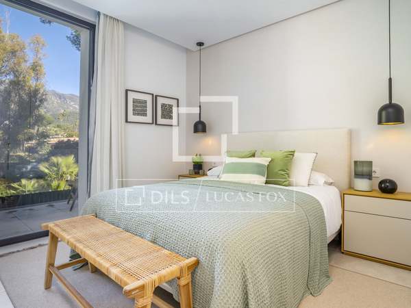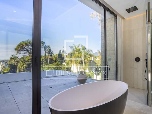 Наверху вилла вмещает три светлые и просторные спальни, включая главную большую спальню, которая имеет собственную ванную комнату и гардеробную. Каждая спальня имеет выход на собственный балкон с выдвижными навесами, идеально подходящими для наслаждения завидным климатом Марбельи и захватывающими закатами.