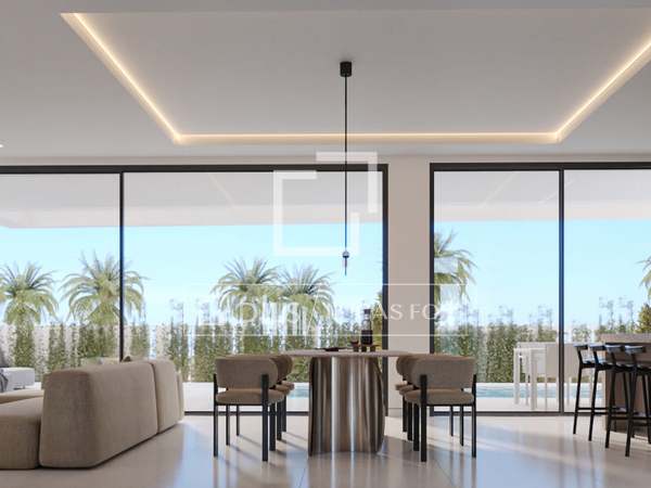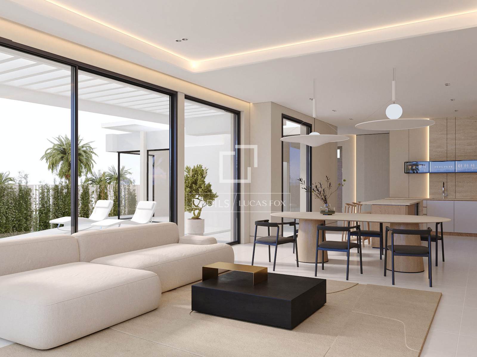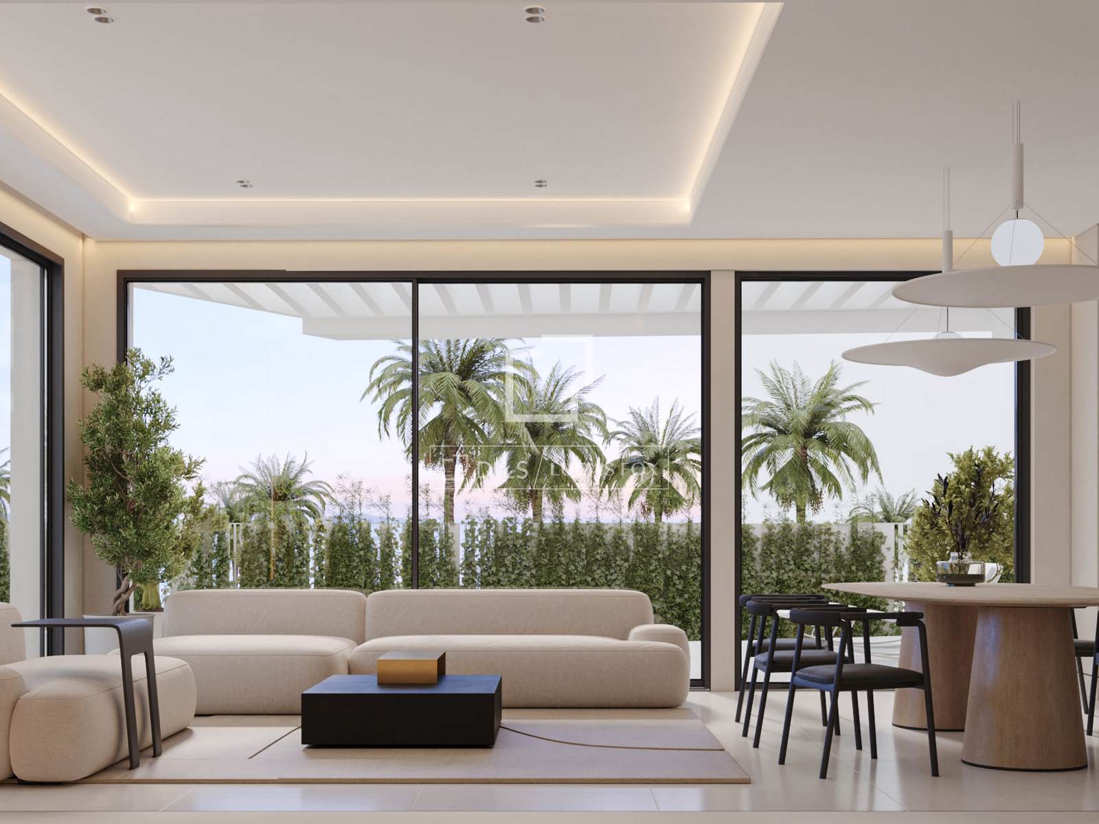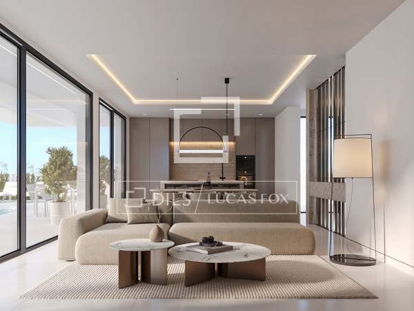 Прекрасно спроектированная современная вилла, предлагающая исключительный уровень жизни на побережье Коста-дель-Соль, сочетает архитектурную элегантность с повседневным комфортом в уединенном жилом районе. Созданный для максимального использования естественного света и обеспечения плавного перехода между помещениями, дом отличается просторными интерьерами открытой планировки, где гостиная, столовая и кухня плавно перетекают друг в друга, обрамленные окнами от пола до потолка, которые выходят прямо на залитые солнцем террасы и благоустроенный частный сад.