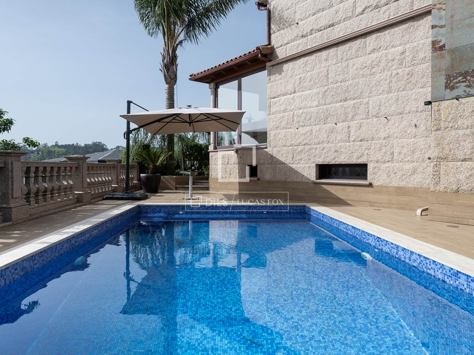 Каменная вилла в тихом, возвышенном месте, с открытыми пространствами, обилием естественного света и бассейном, в жилом районе, недалеко от города Виго.