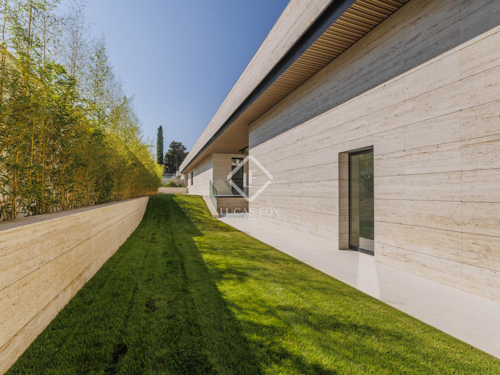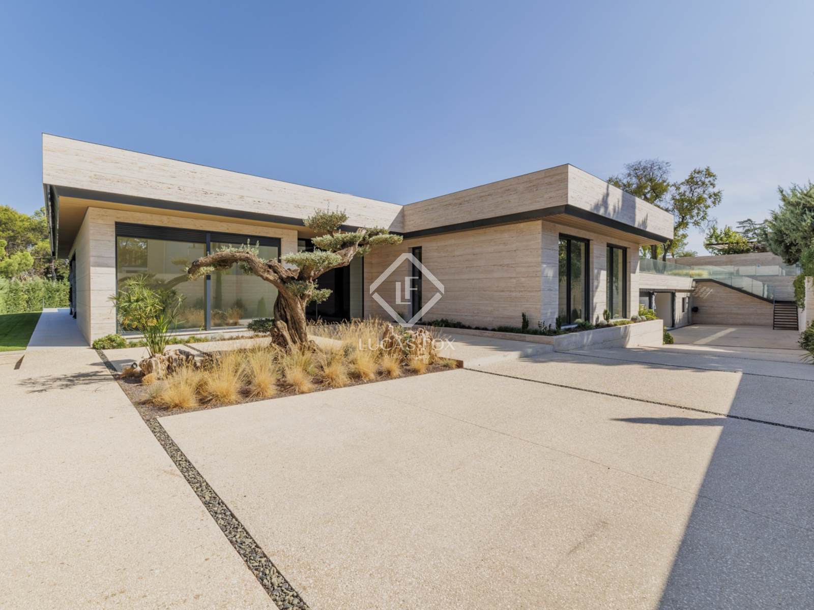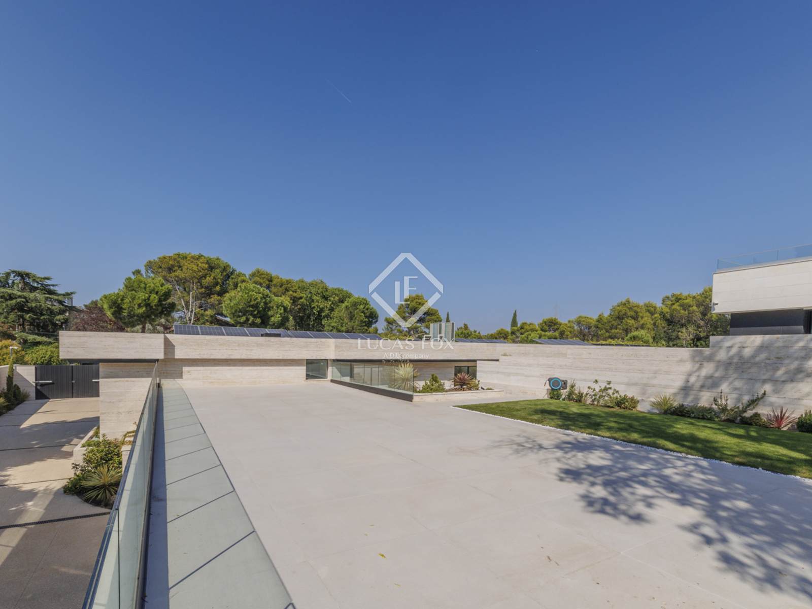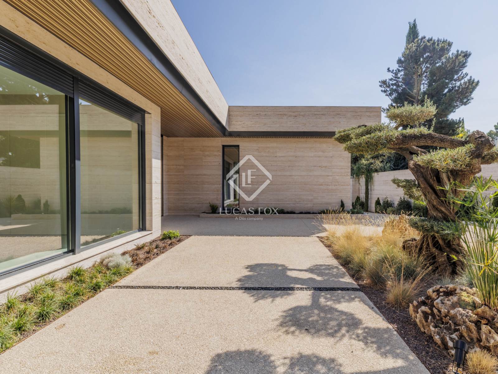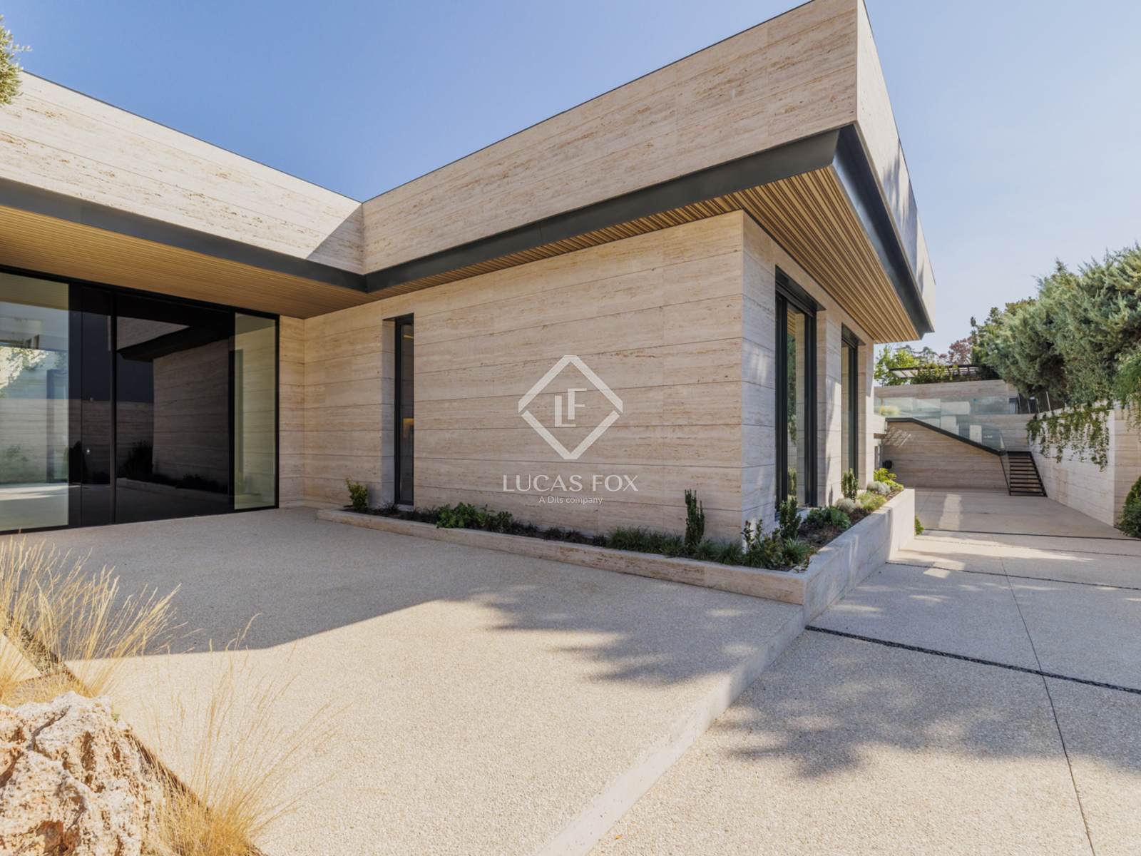 Потрясающий и роскошный дизайнерский дом с просторными помещениями, огромной высотой и одноэтажной планировкой площадью 1200 м² продается в Лас-Ломасе, всего в нескольких минутах от торгового центра David Loyd's и Тринити-колледжа и в 15 минутах от Мадрида.
