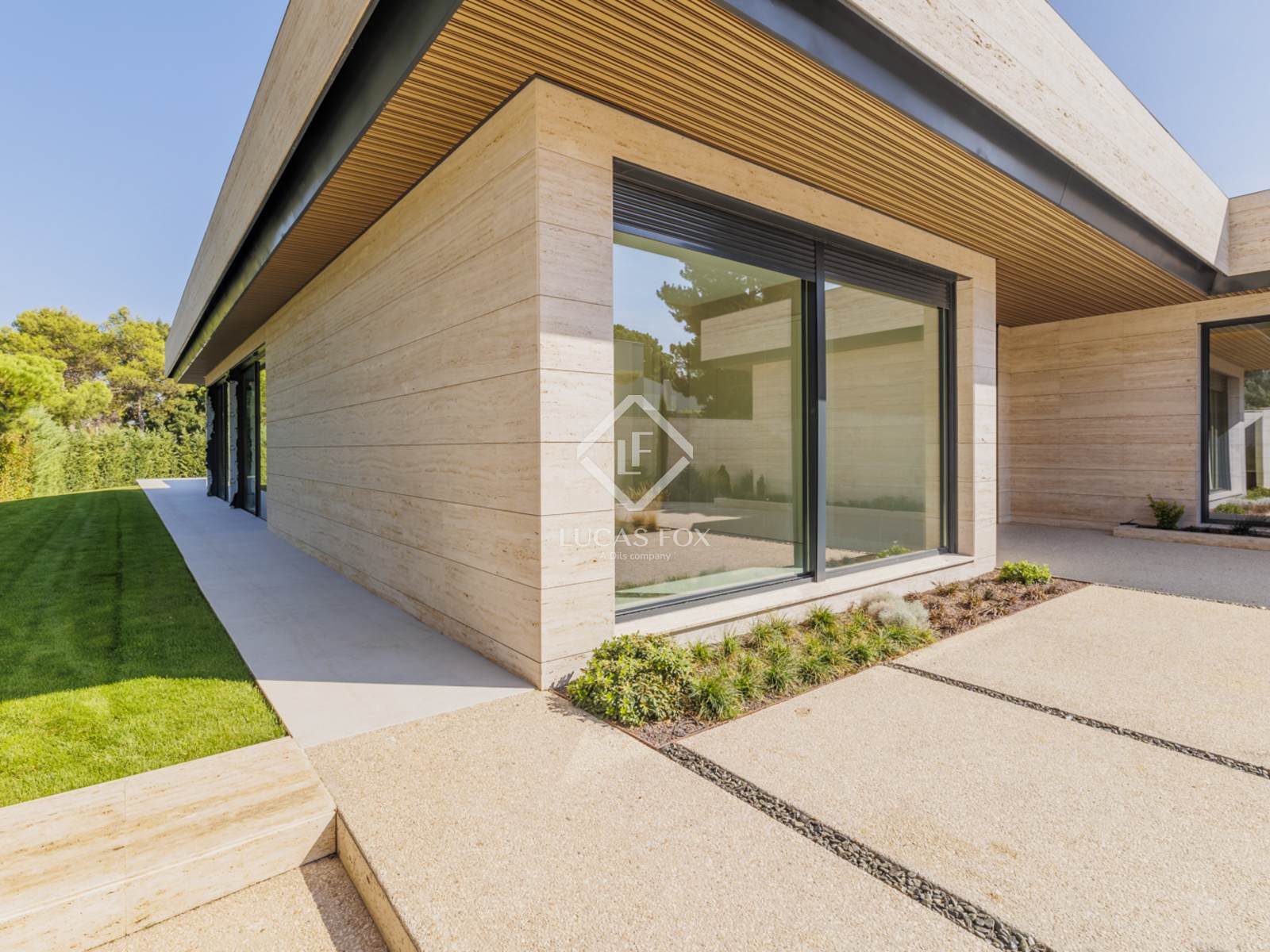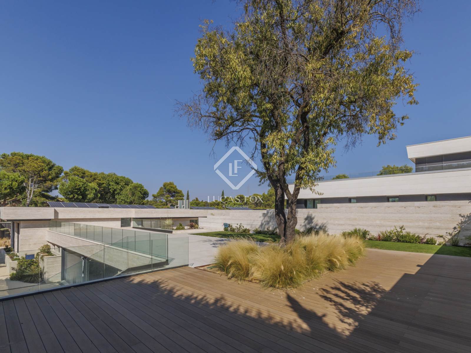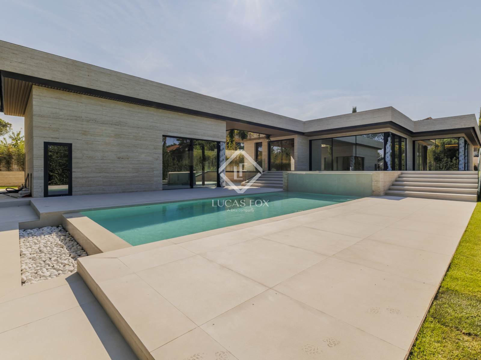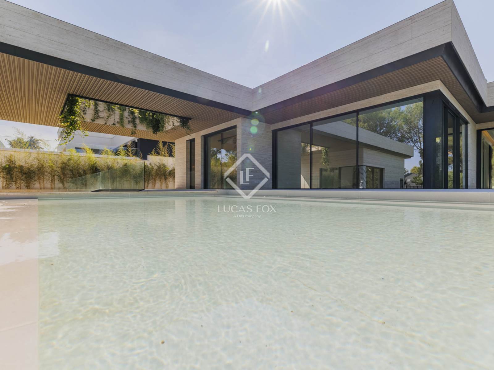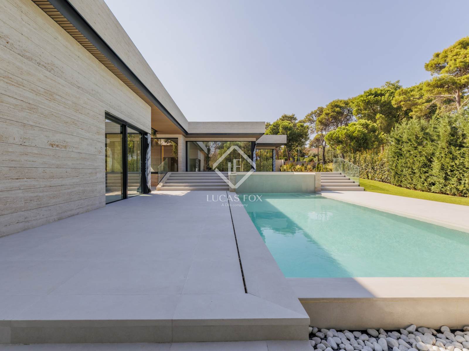 Потрясающий и роскошный дизайнерский дом с просторными помещениями, огромной высотой и одноэтажной планировкой площадью 1200 м² продается в Лас-Ломасе, всего в нескольких минутах от торгового центра David Loyd's и Тринити-колледжа и в 15 минутах от Мадрида.