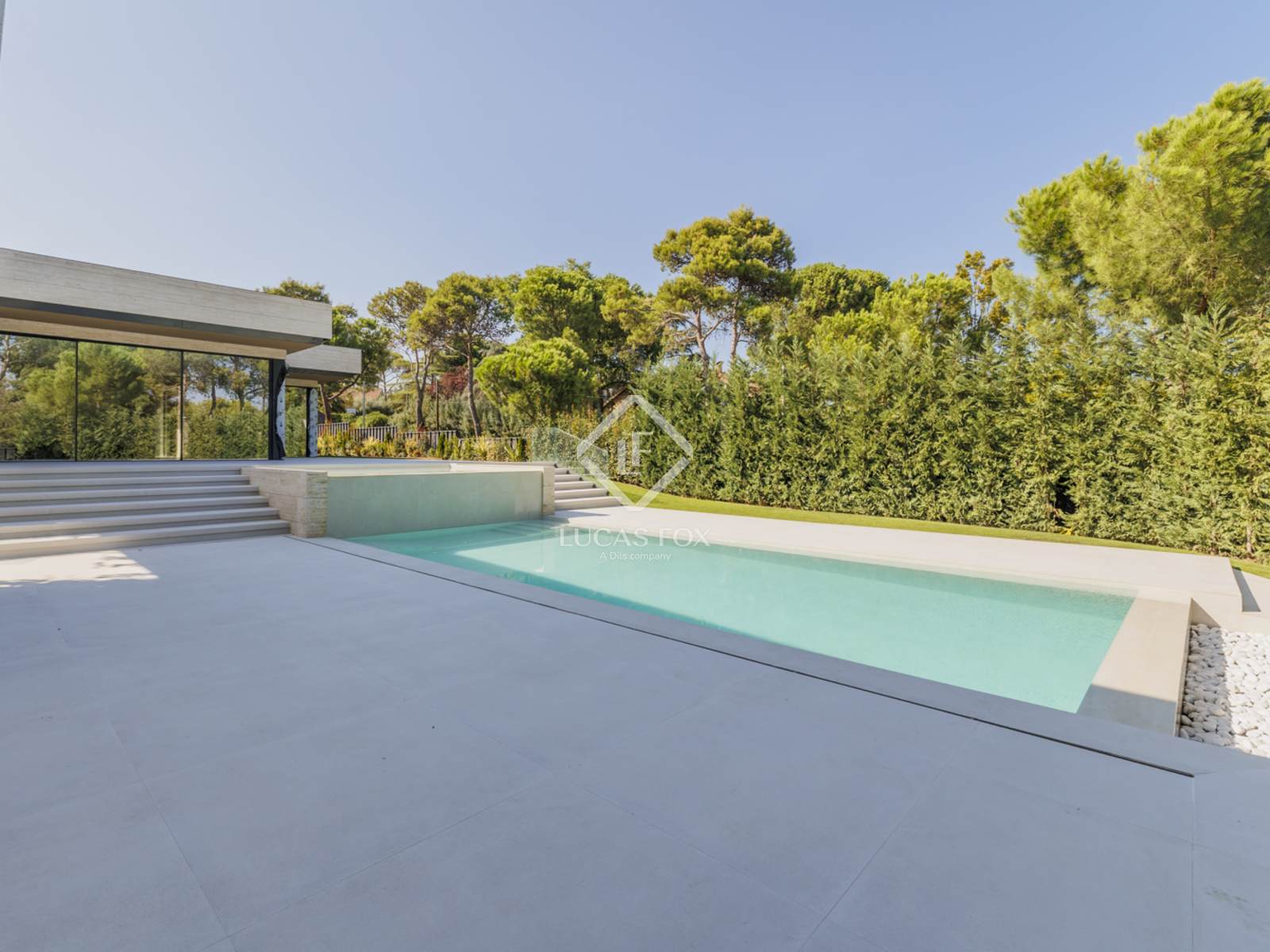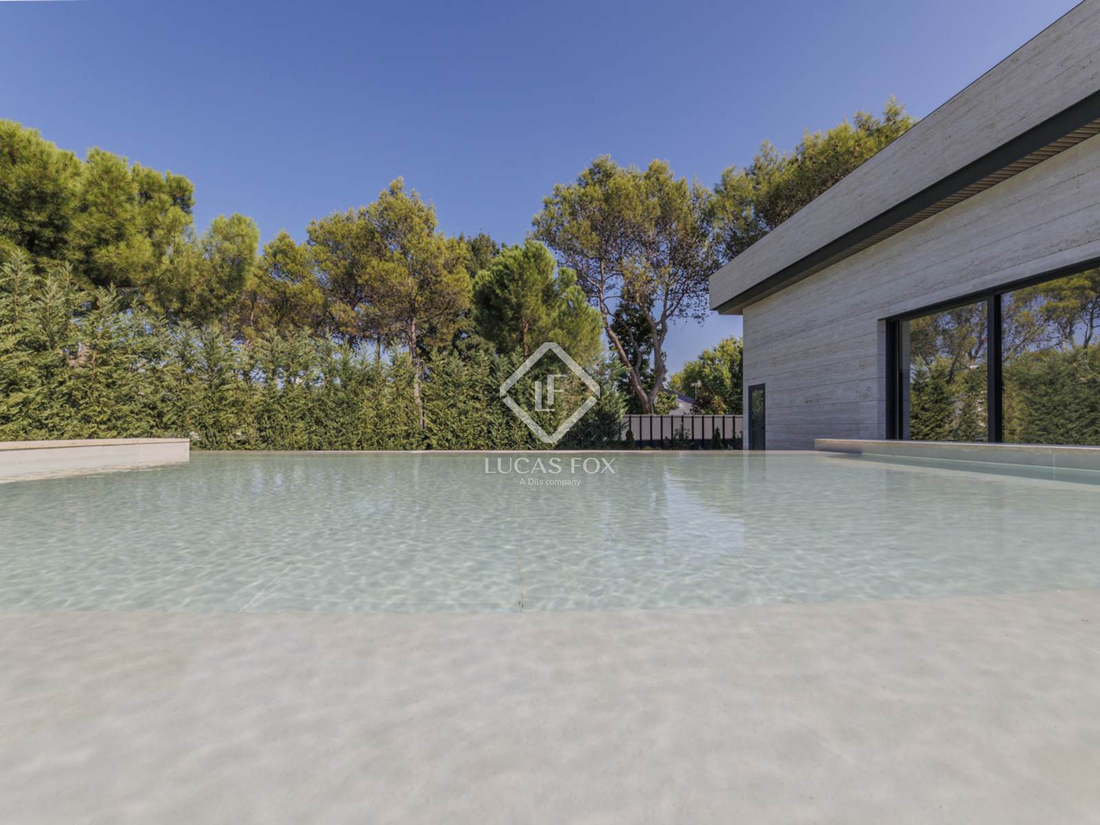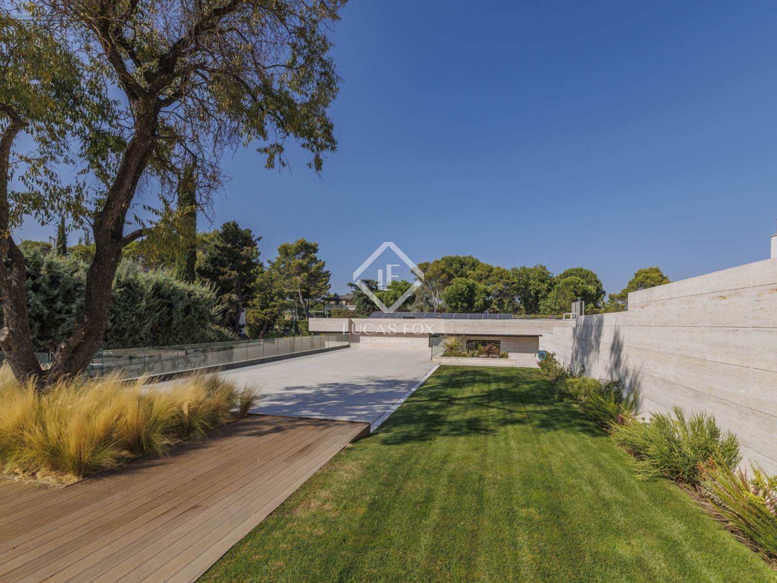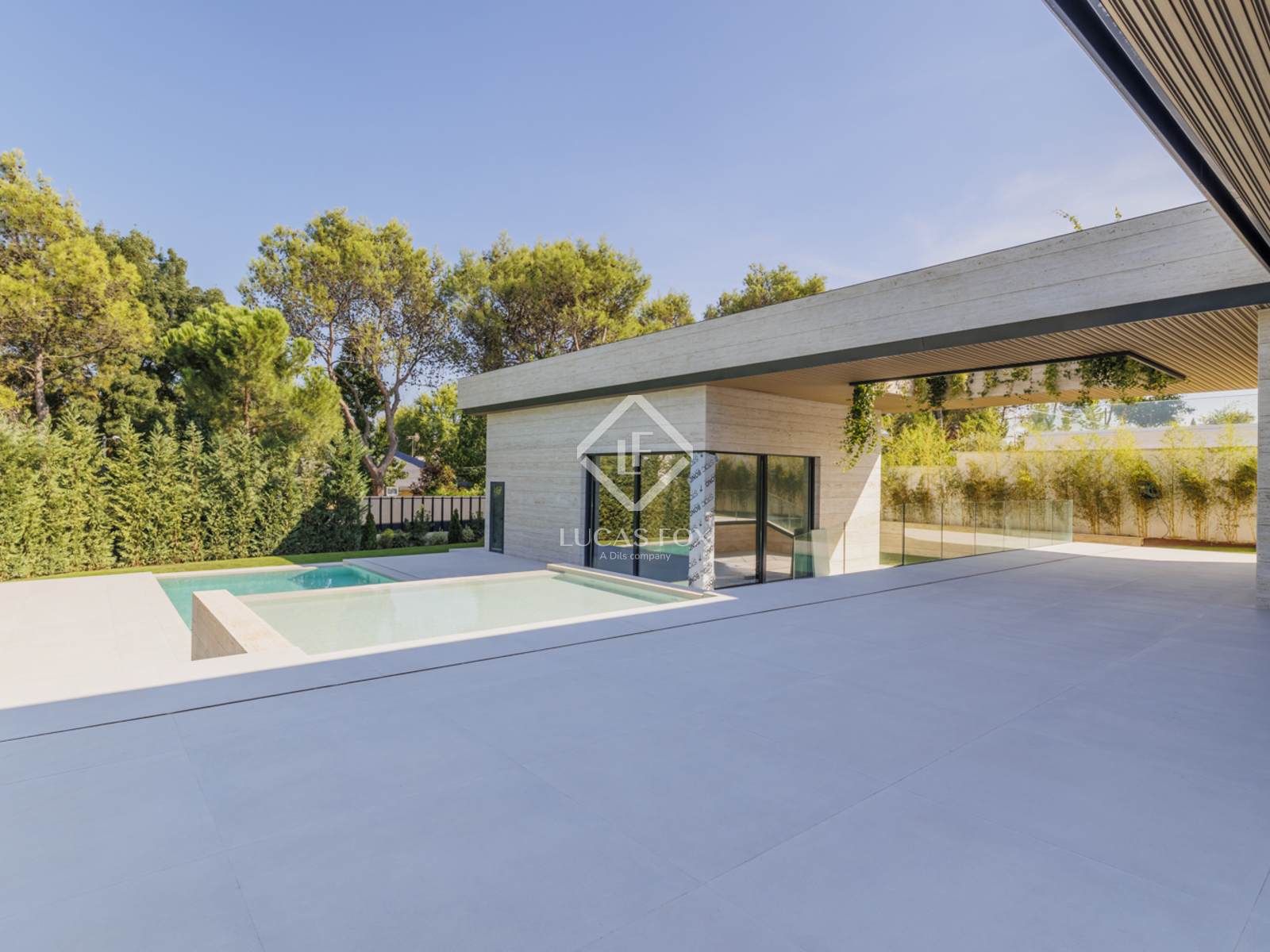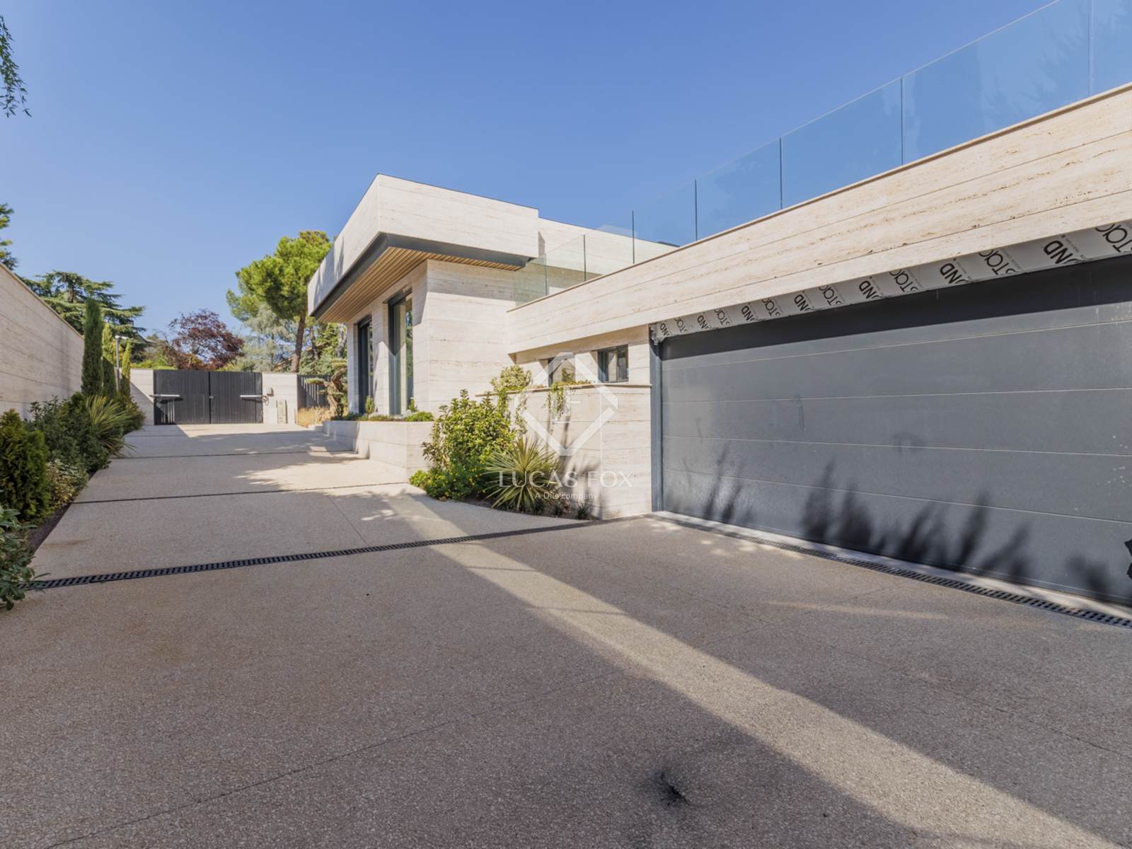Потрясающий и роскошный дизайнерский дом с просторными помещениями, огромной высотой и одноэтажной планировкой площадью 1200 м² продается в Лас-Ломасе, всего в нескольких минутах от торгового центра David Loyd's и Тринити-колледжа и в 15 минутах от Мадрида.
