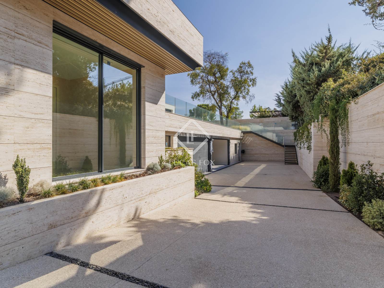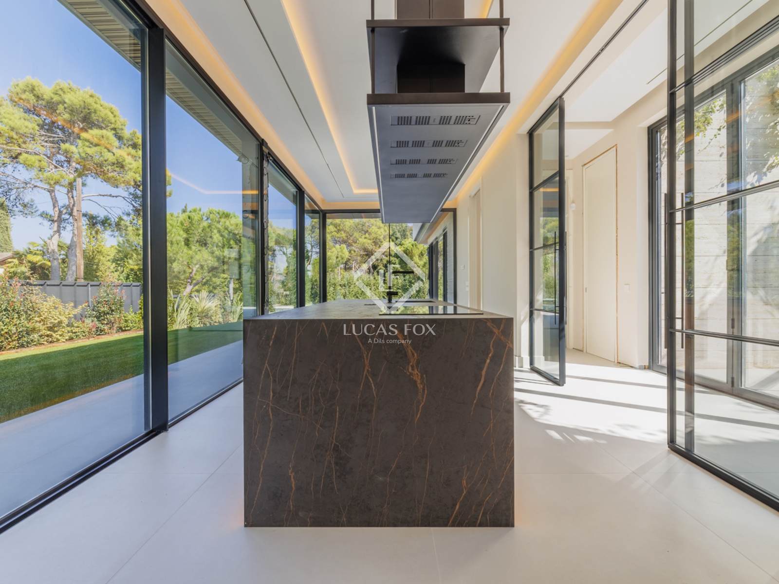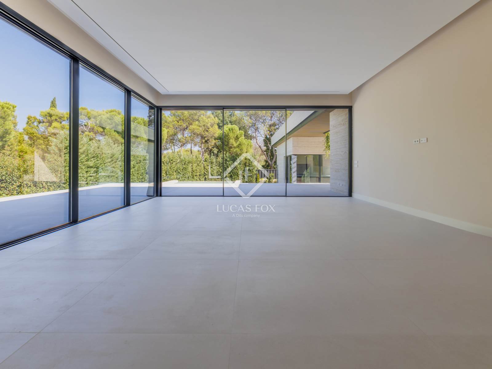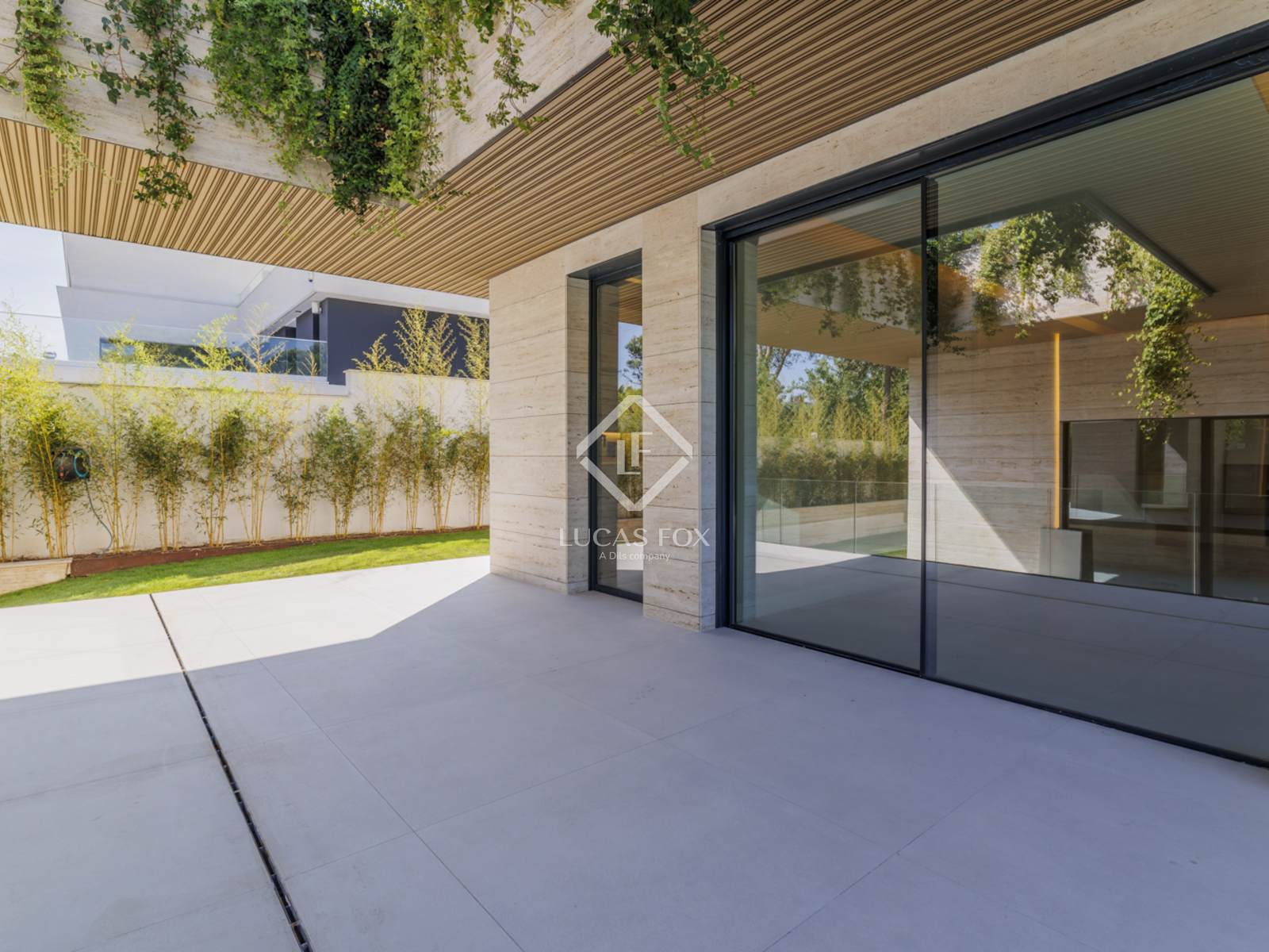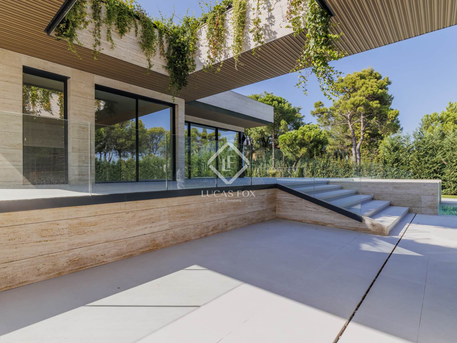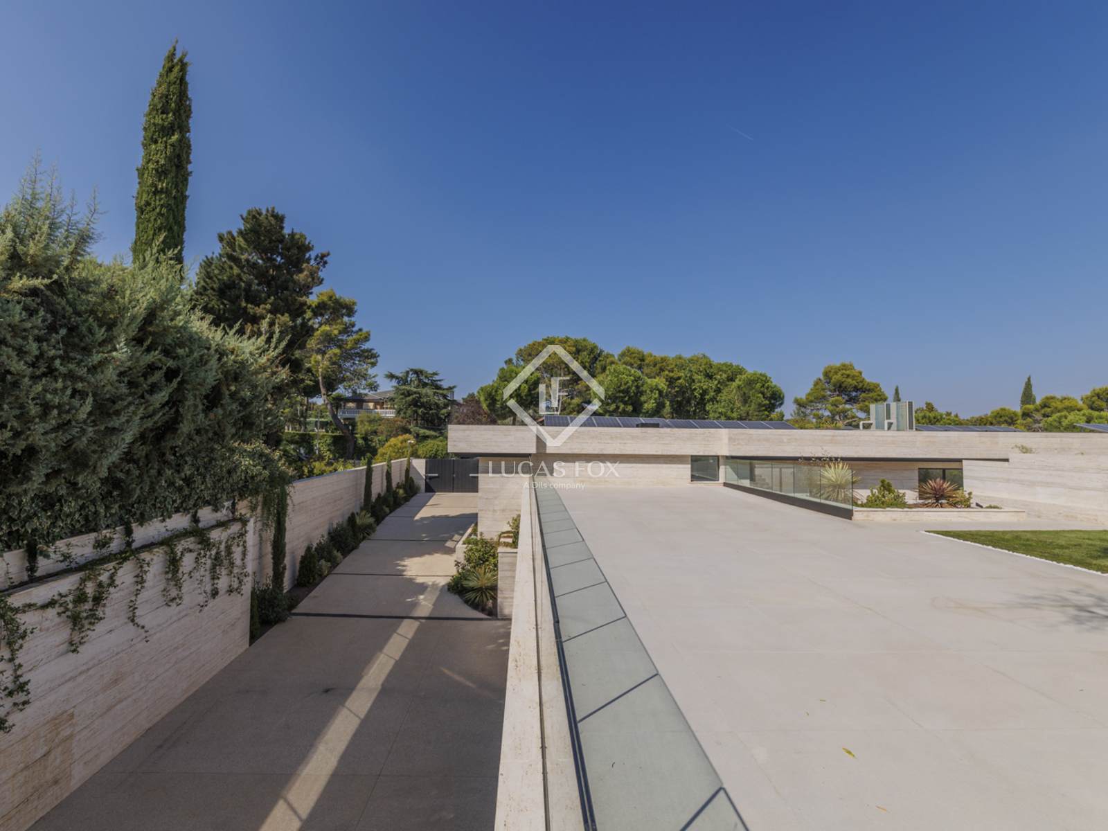 Потрясающий и роскошный дизайнерский дом с просторными помещениями, огромной высотой и одноэтажной планировкой площадью 1200 м² продается в Лас-Ломасе, всего в нескольких минутах от торгового центра David Loyd's и Тринити-колледжа и в 15 минутах от Мадрида.
