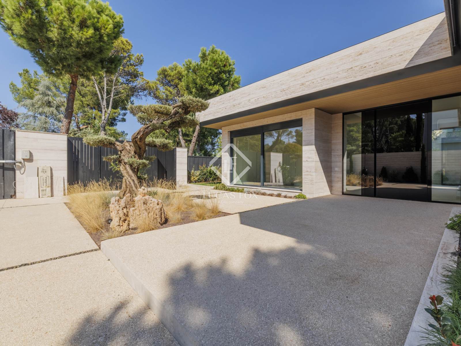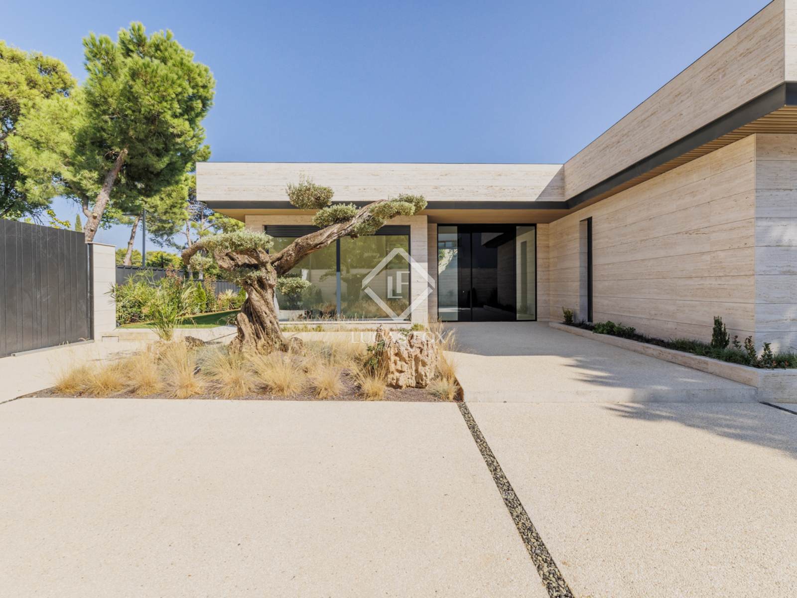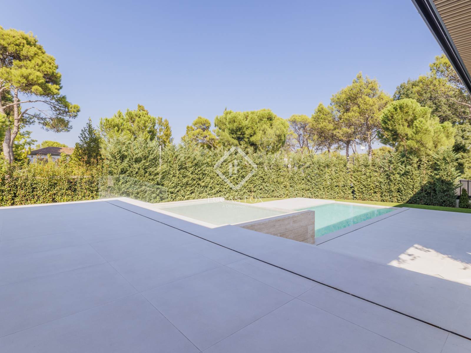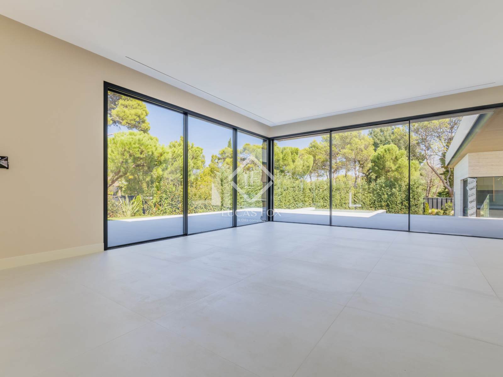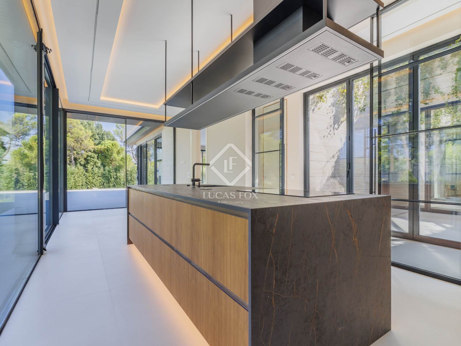 Потрясающий и роскошный дизайнерский дом с просторными помещениями, огромной высотой и одноэтажной планировкой площадью 1200 м² продается в Лас-Ломасе, всего в нескольких минутах от торгового центра David Loyd's и Тринити-колледжа и в 15 минутах от Мадрида.