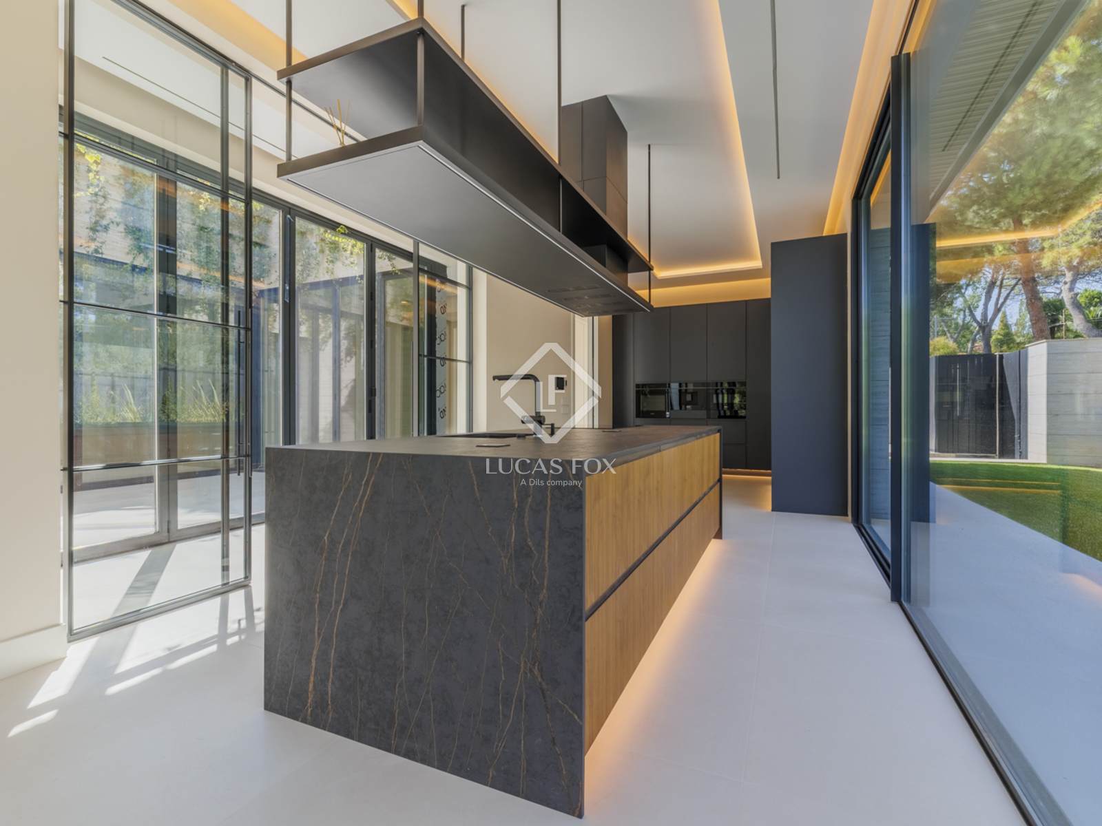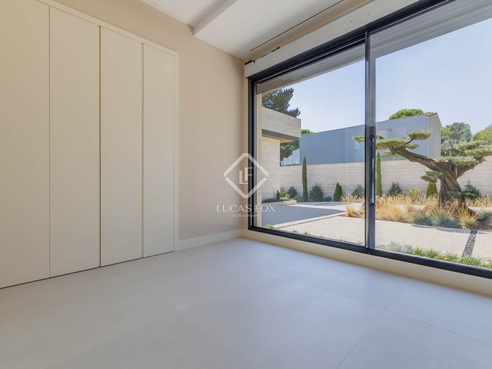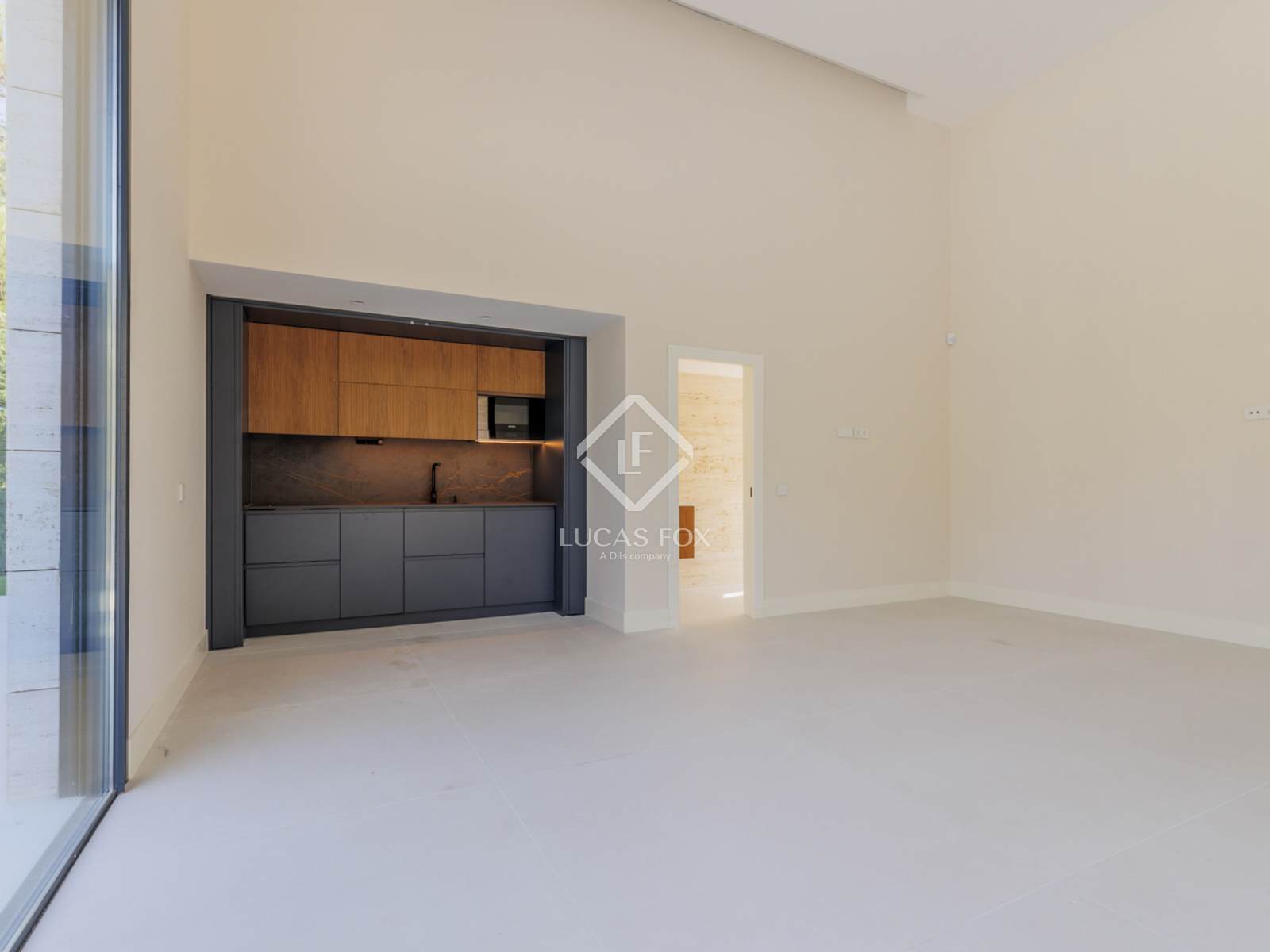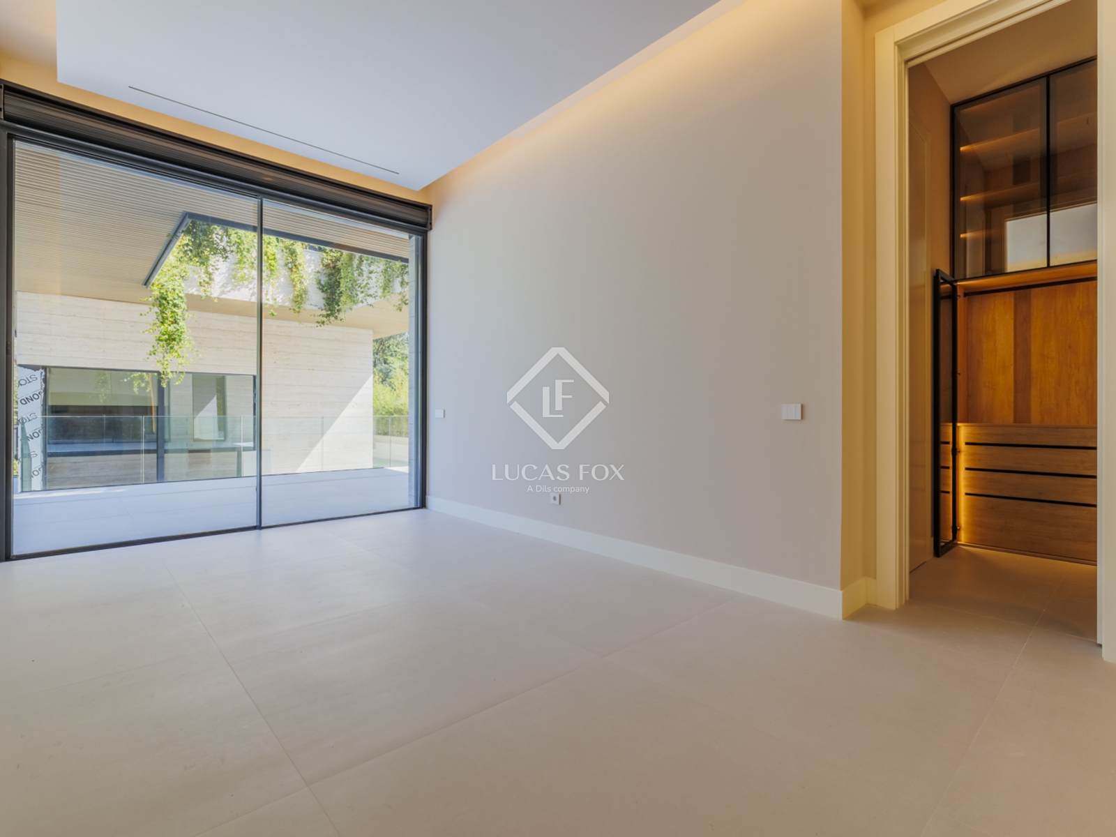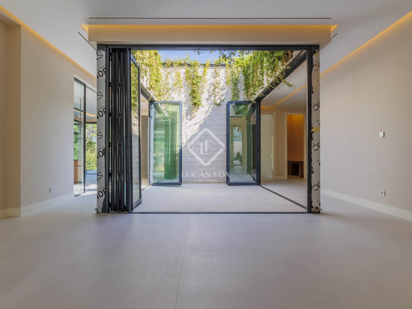 Потрясающий и роскошный дизайнерский дом с просторными помещениями, огромной высотой и одноэтажной планировкой площадью 1200 м² продается в Лас-Ломасе, всего в нескольких минутах от торгового центра David Loyd's и Тринити-колледжа и в 15 минутах от Мадрида.