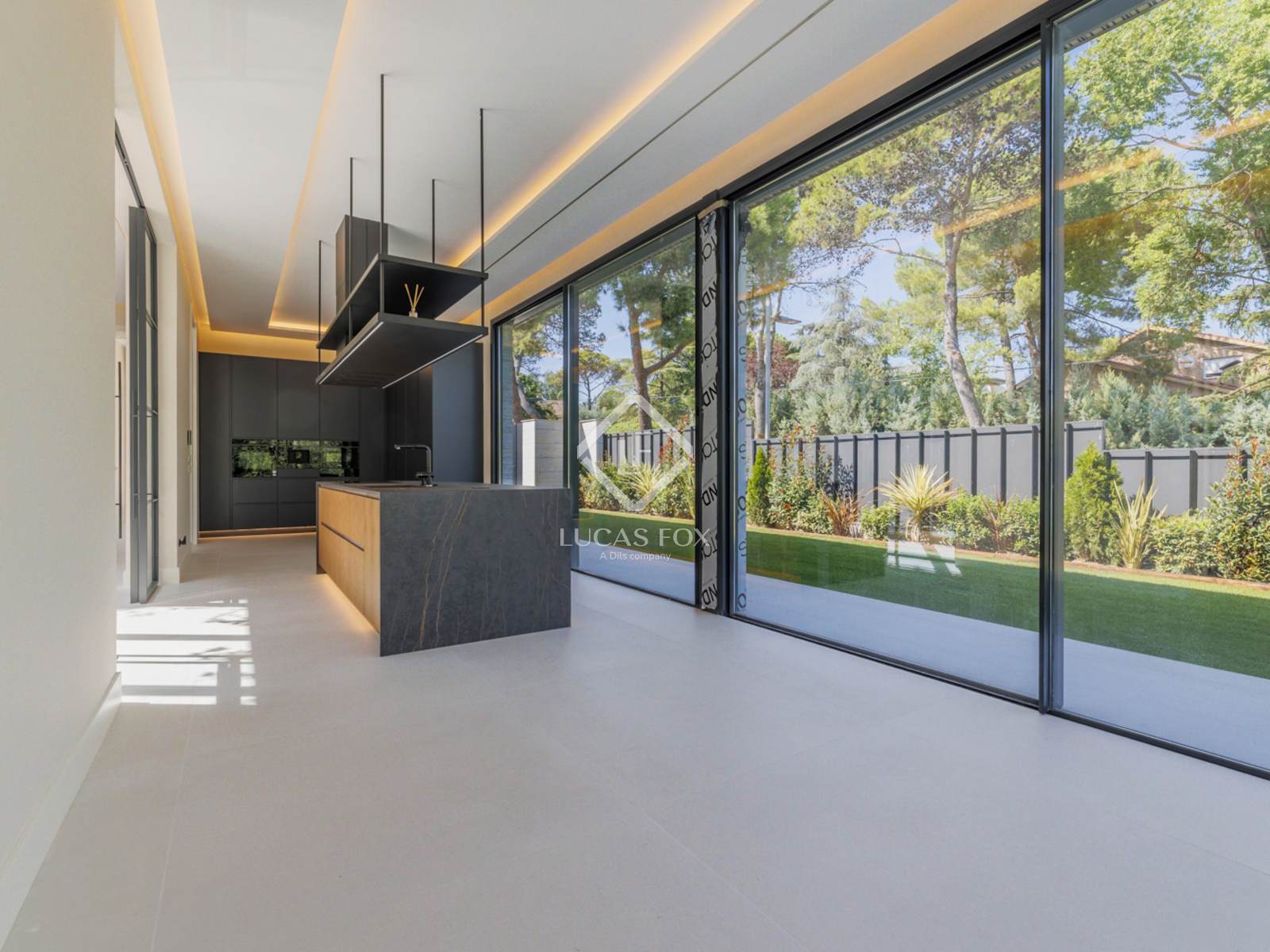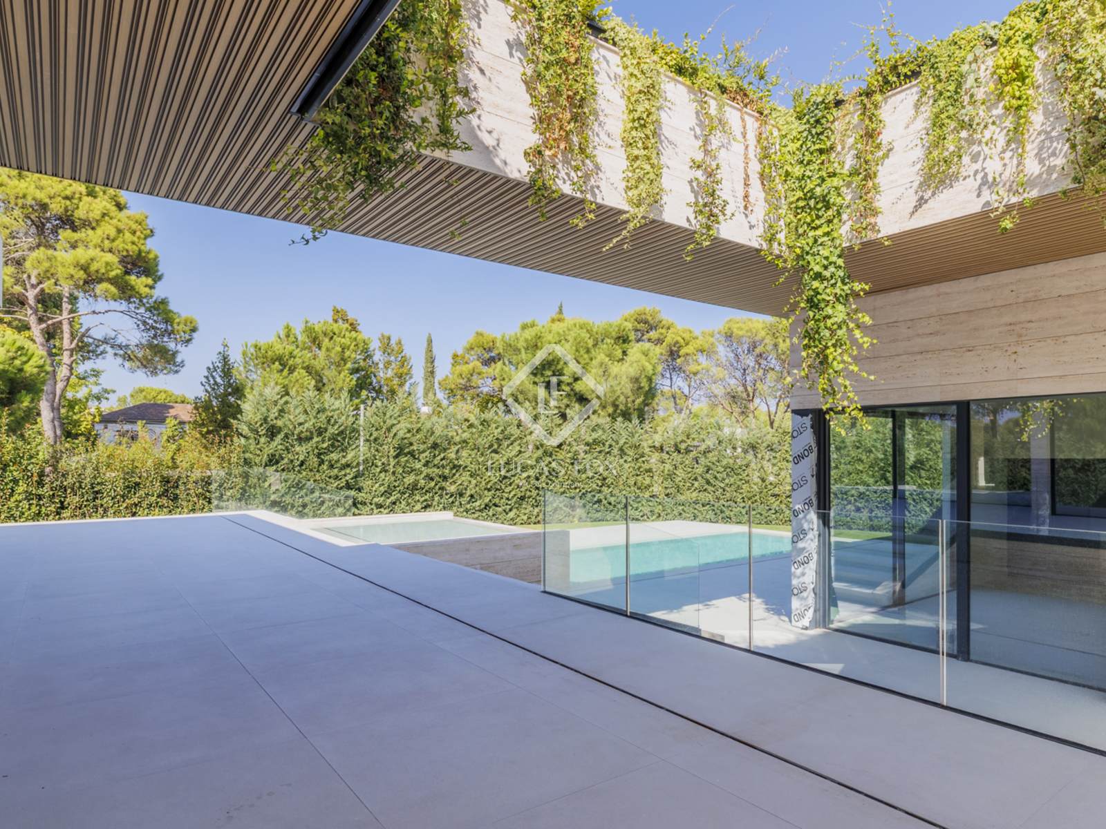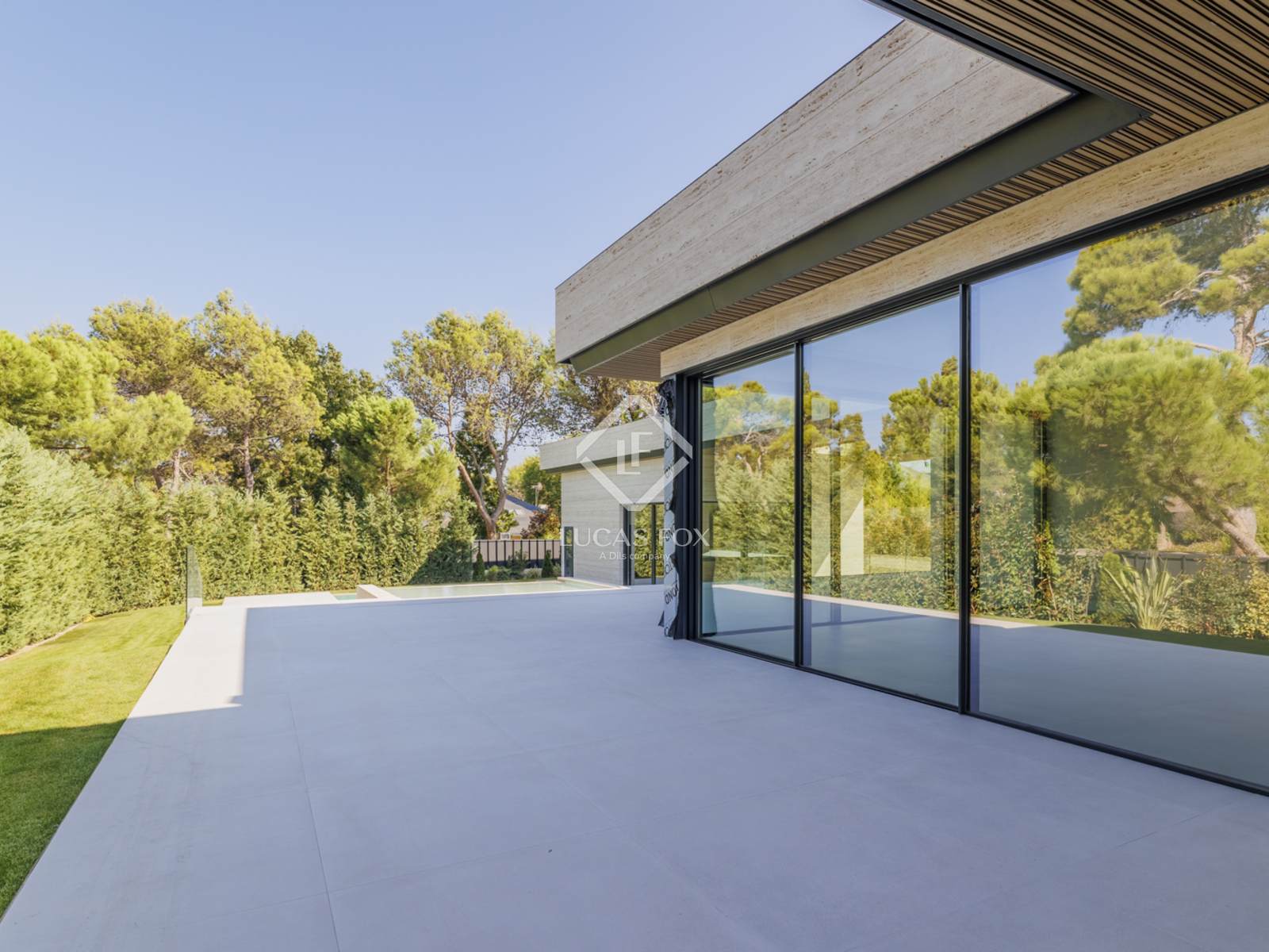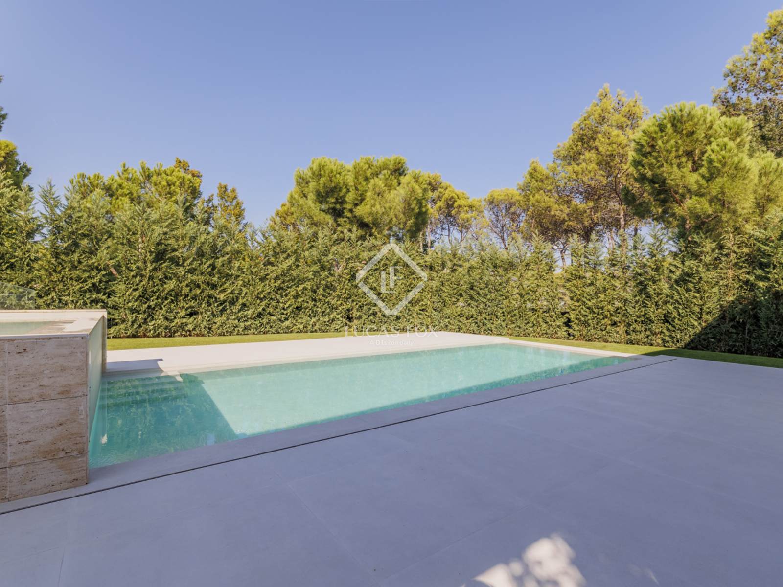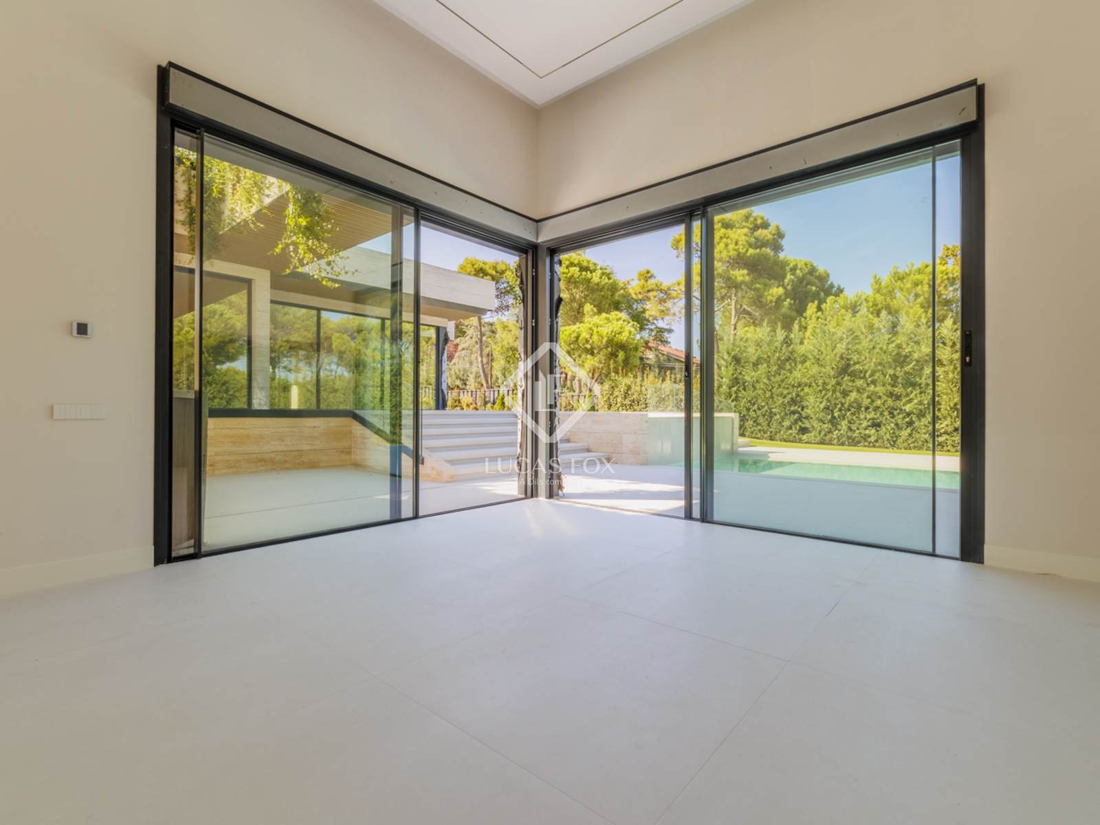 Потрясающий и роскошный дизайнерский дом с просторными помещениями, огромной высотой и одноэтажной планировкой площадью 1200 м² продается в Лас-Ломасе, всего в нескольких минутах от торгового центра David Loyd's и Тринити-колледжа и в 15 минутах от Мадрида.