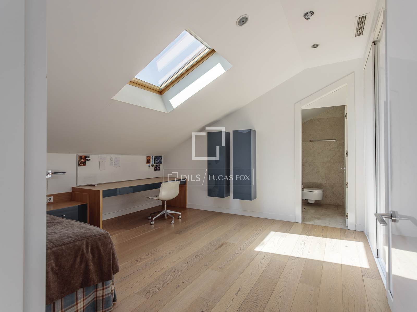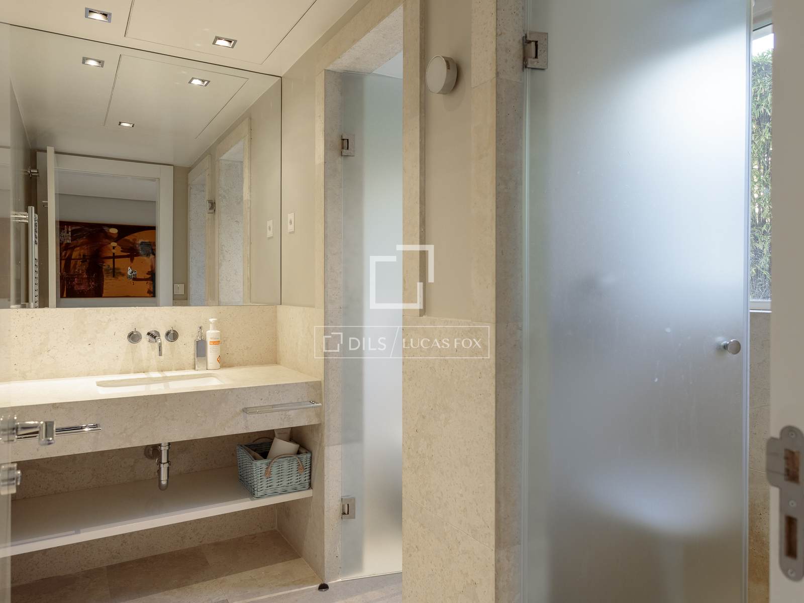 Этот дом, созданный путем объединения двух домов и превращенный в совершенно новое жилище, сочетает в себе современную архитектуру, исключительные материалы и безупречное мастерство. Фирменный стиль Андреса Ребуэльты проявляется в чистых линиях и культовой подвесной лестнице; ландшафтный дизайн Фернандо Карунчо превращает сад в органичное продолжение дома. Более 1300 квадратных метров жилой площади, большие окна, лифт, просторный многофункциональный подвал и впечатляющий круглый открытый бассейн – это дом, созданный для семей, которые хотят разделить особые моменты, не жертвуя при этом своей приватностью.