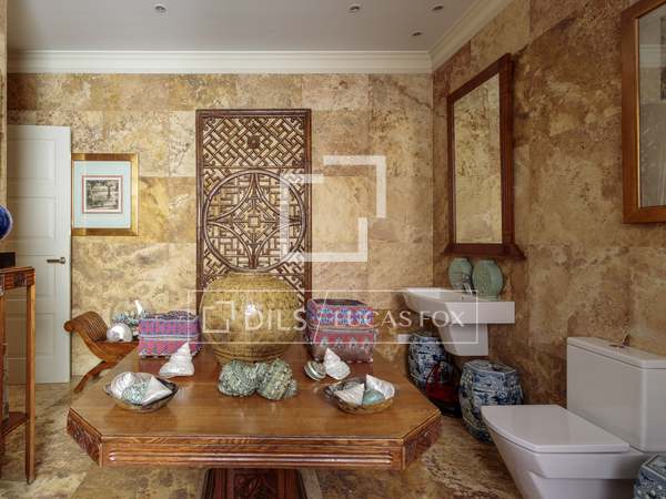 В доме просторный холл, ведущий в две светлые гостиные, элегантный отдельный кабинет, официальную столовую и современную, полностью оборудованную кухню с зоной для завтрака. Спальная зона включает в себя великолепную главную спальню и четыре просторные спальни с двуспальными кроватями, все с собственными ванными комнатами, а также спальню для персонала с собственной ванной комнатой. В доме также есть шесть ванных комнат, парковочное место в том же здании и кладовая.