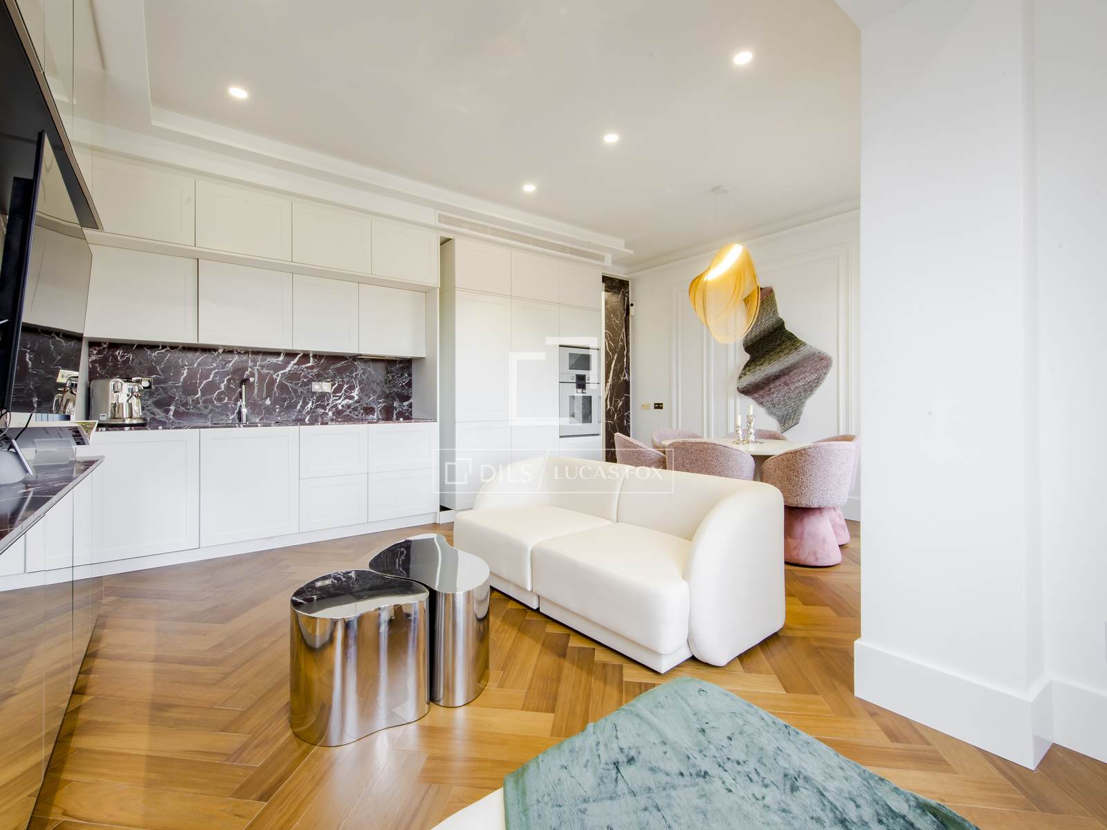 Расположенные на пятом этаже классического здания 1930-х годов, апартаменты сочетают в себе традиционную архитектуру и современный дизайн. В квартире просторная гостиная-столовая с кухней открытой планировки, создающая светлое и воздушное пространство, идеально подходящее для отдыха и развлечений. В главной спальне есть элегантная ванная комната, а также три дополнительные спальни и две ванные комнаты.