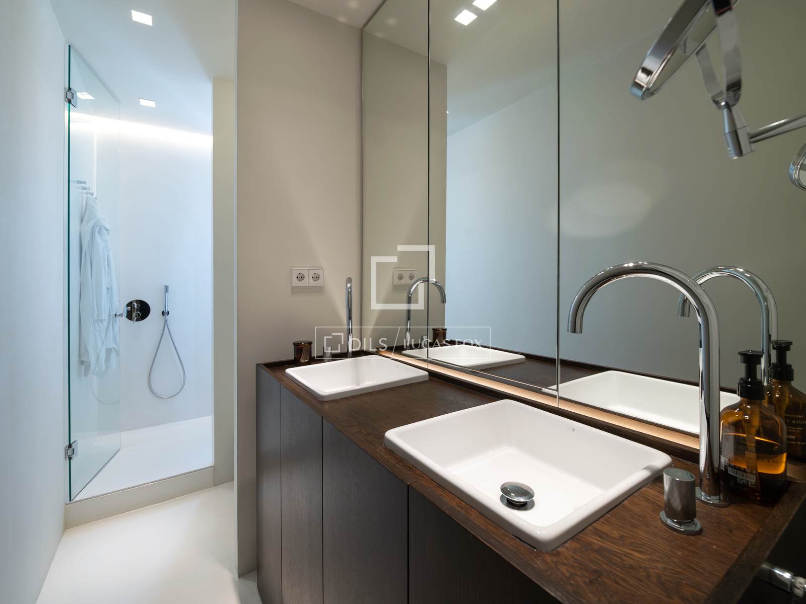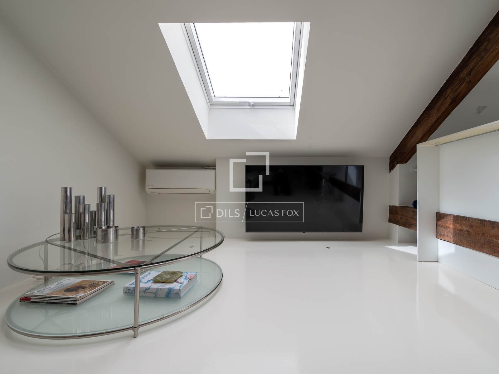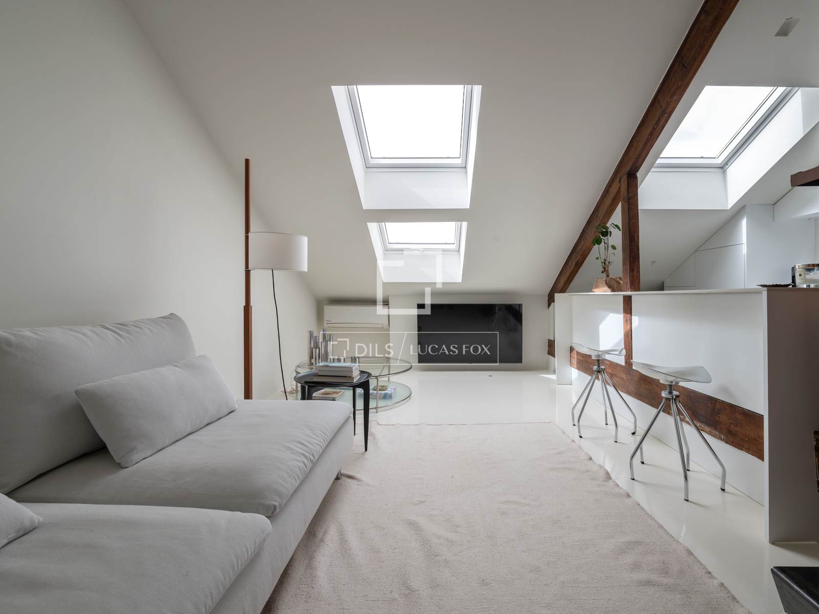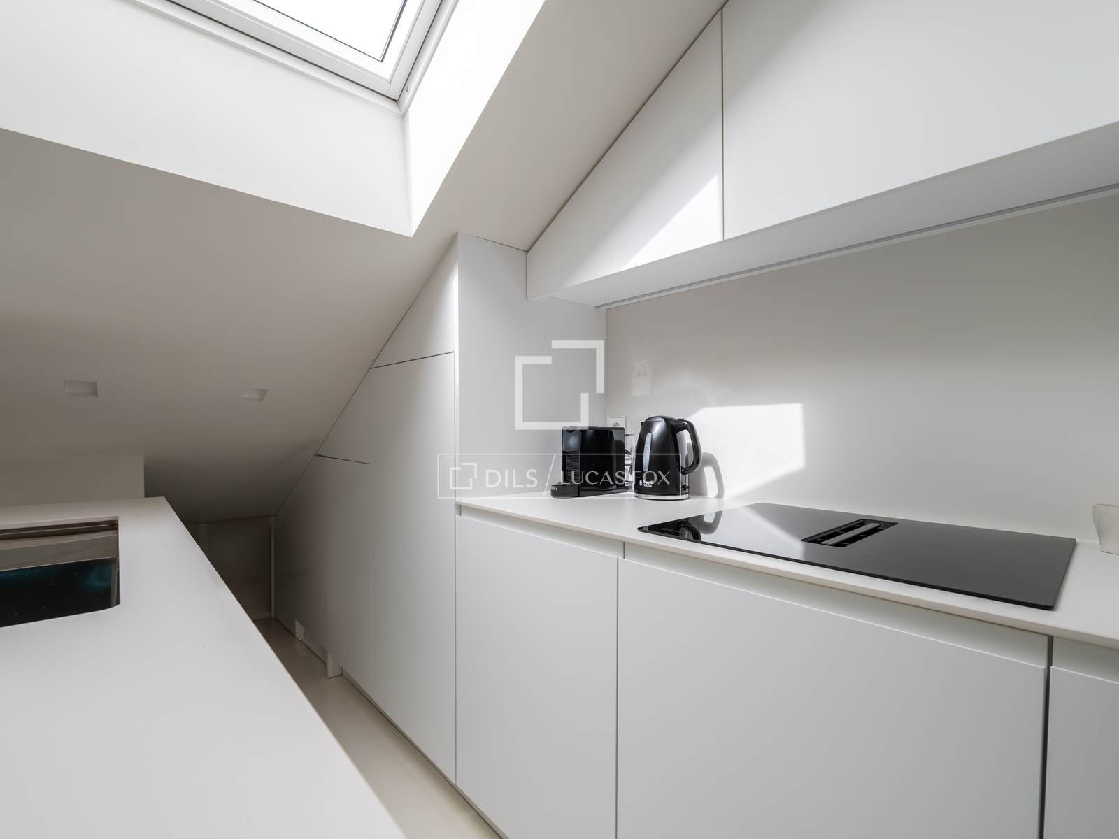 В квартире две полностью оборудованные ванные комнаты с современной отделкой и привлекательная гостиная открытой планировки со скошенным потолком, где гостиная объединена с дизайнерской кухней с центральным островом, создавая просторную, светлую и очень уютную атмосферу.