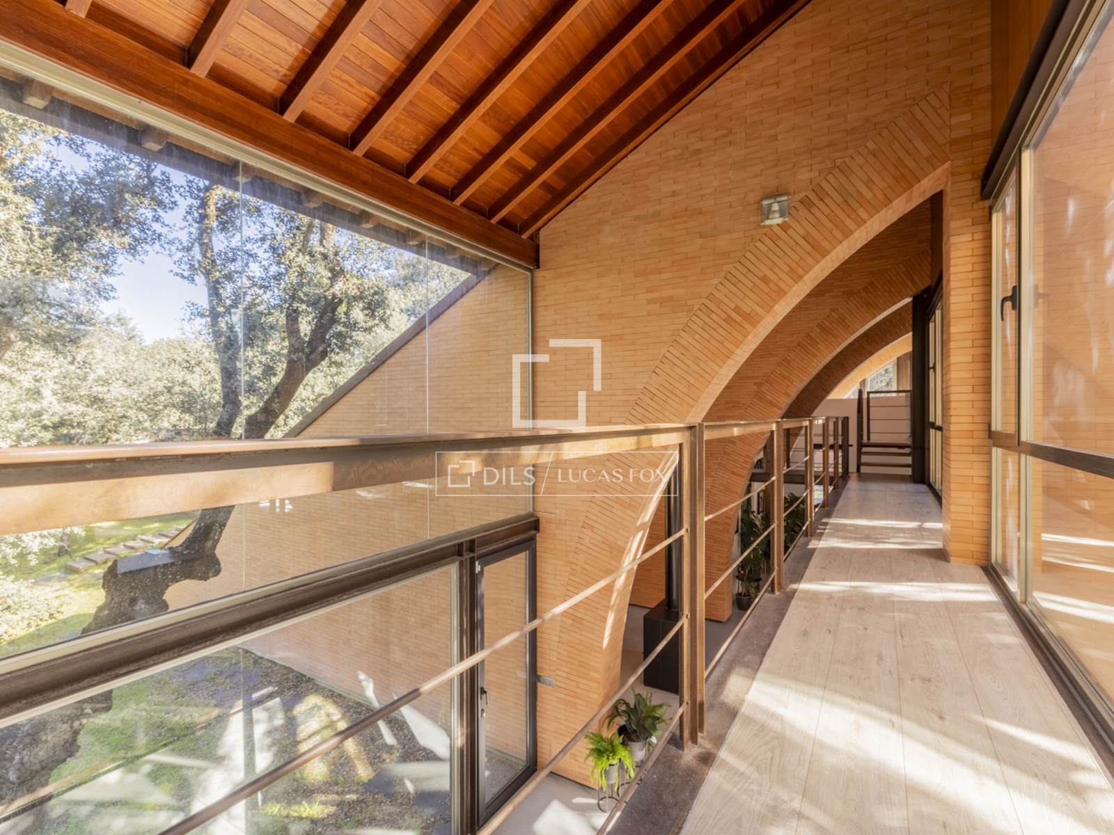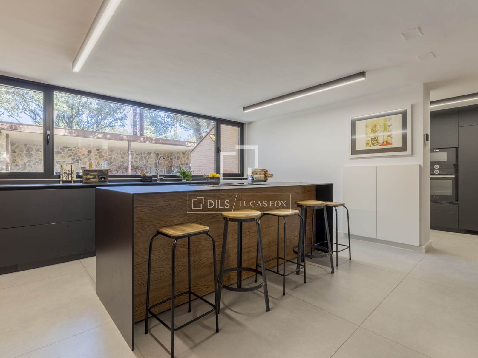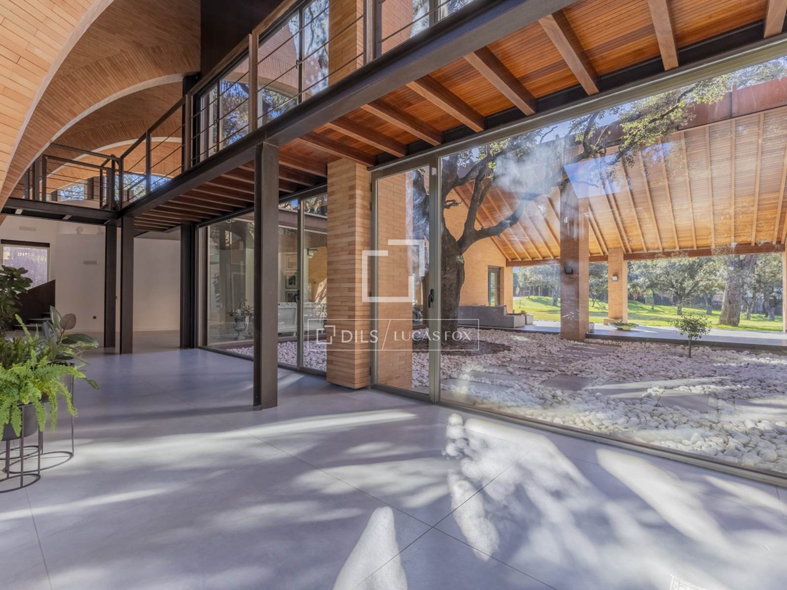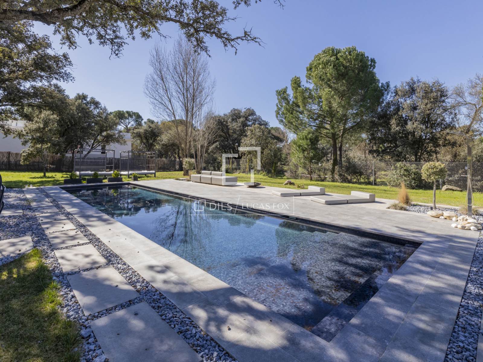 Впечатляющий дом современной архитектуры, полностью отремонтированный по высоким стандартам и интегрированный в лес многовековых дубов, выставлен на продажу в эксклюзивном закрытом поселке Прадо Ларго в Посуэло.