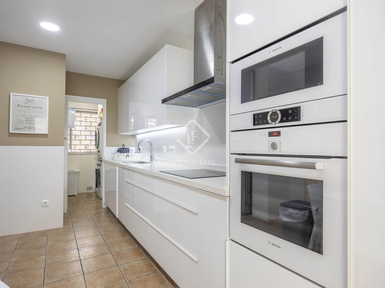 При входе нас встречает просторная гостиная-столовая с камином и видом на море, а также выход на террасу площадью более 12 м², где можно пообедать и поужинать. Гостиная-столовая соединена с современной, полностью оборудованной кухней с дополнительной прачечной.