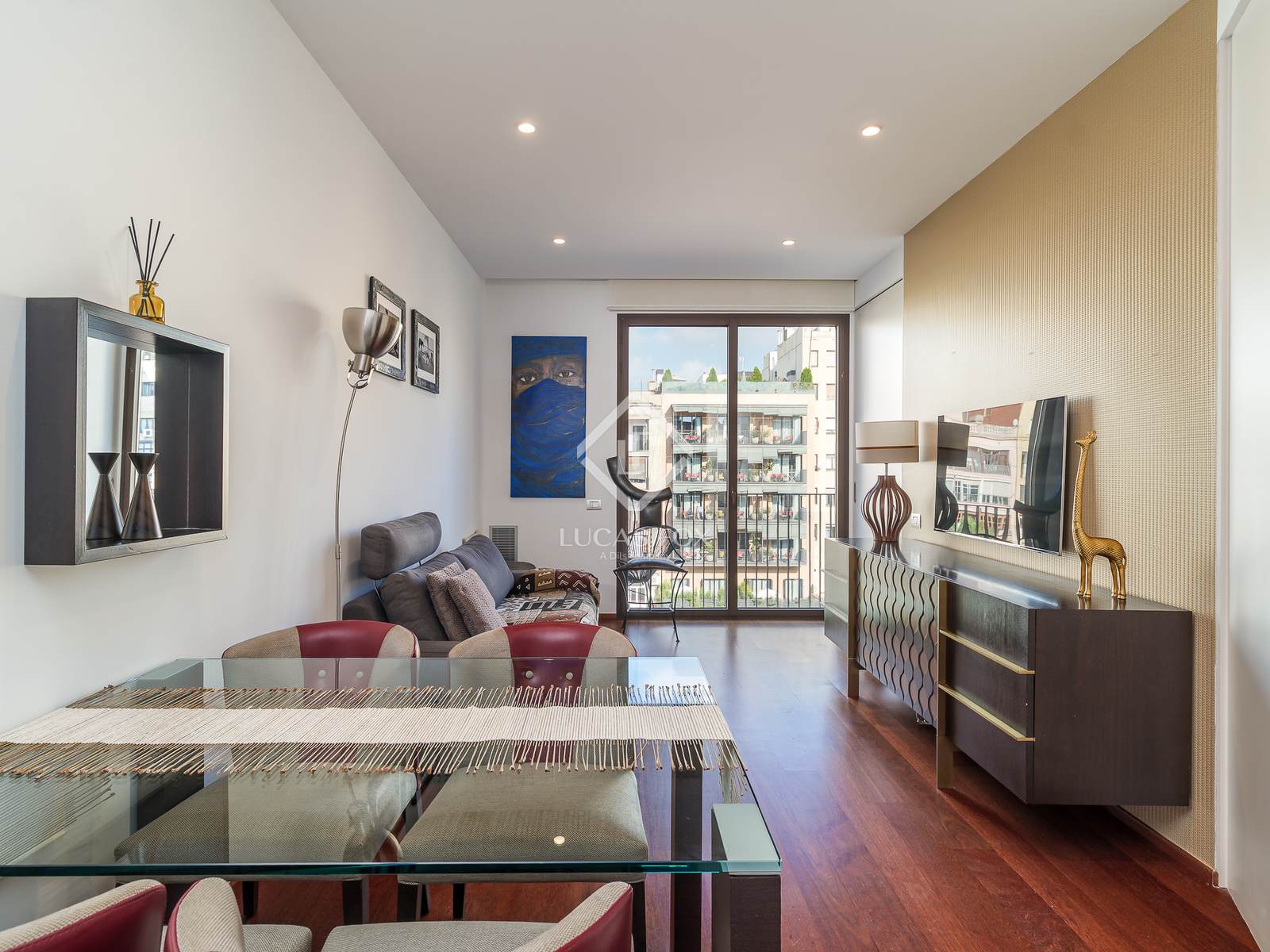 Квартира расположена в самом сердце района Эшампле. Неподалёку находится улица Рамбла Каталония и центр города, а также множество магазинов, ресторанов и других объектов инфраструктуры. Район имеет отличное транспортное сообщение со всеми районами города, включая метро и автобусные остановки.