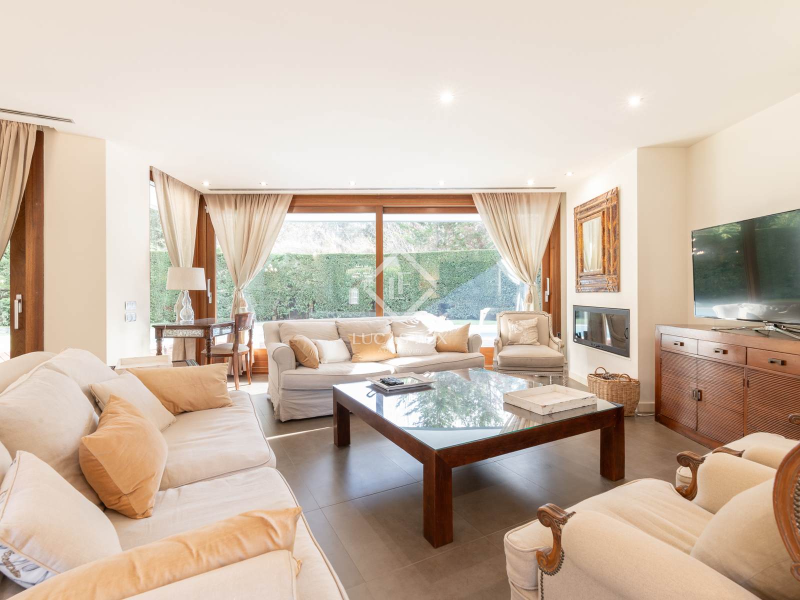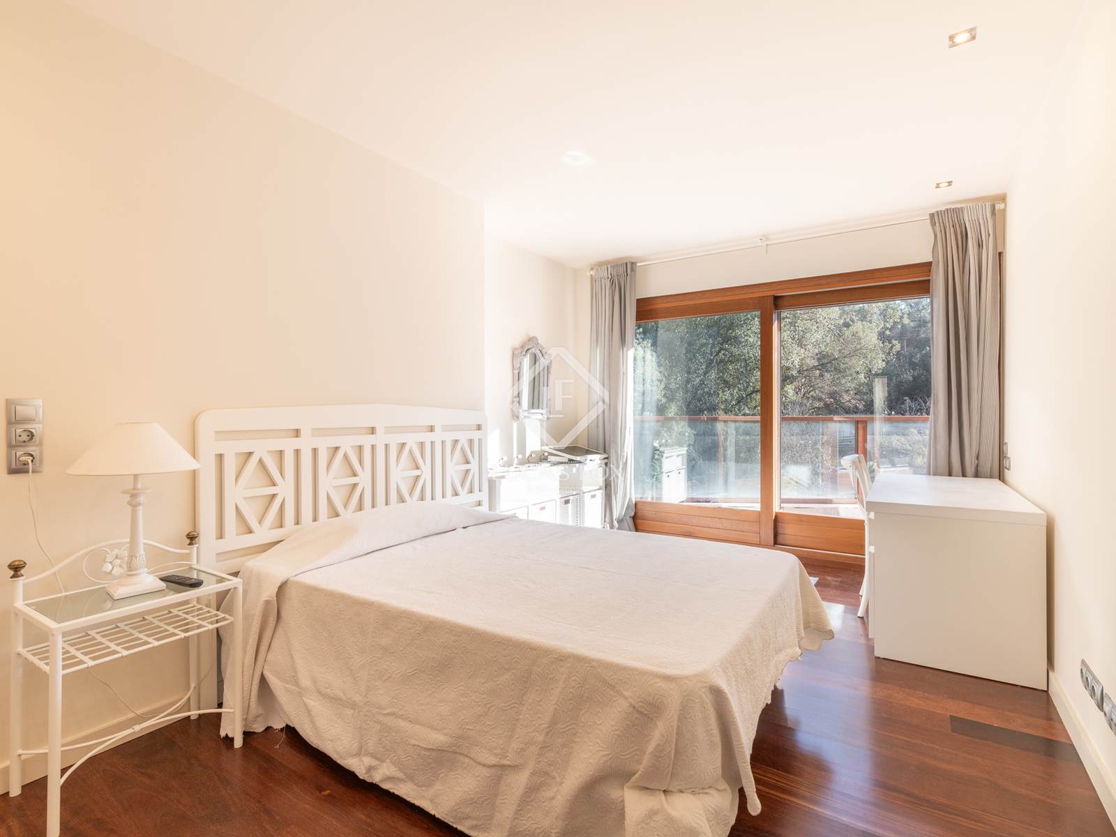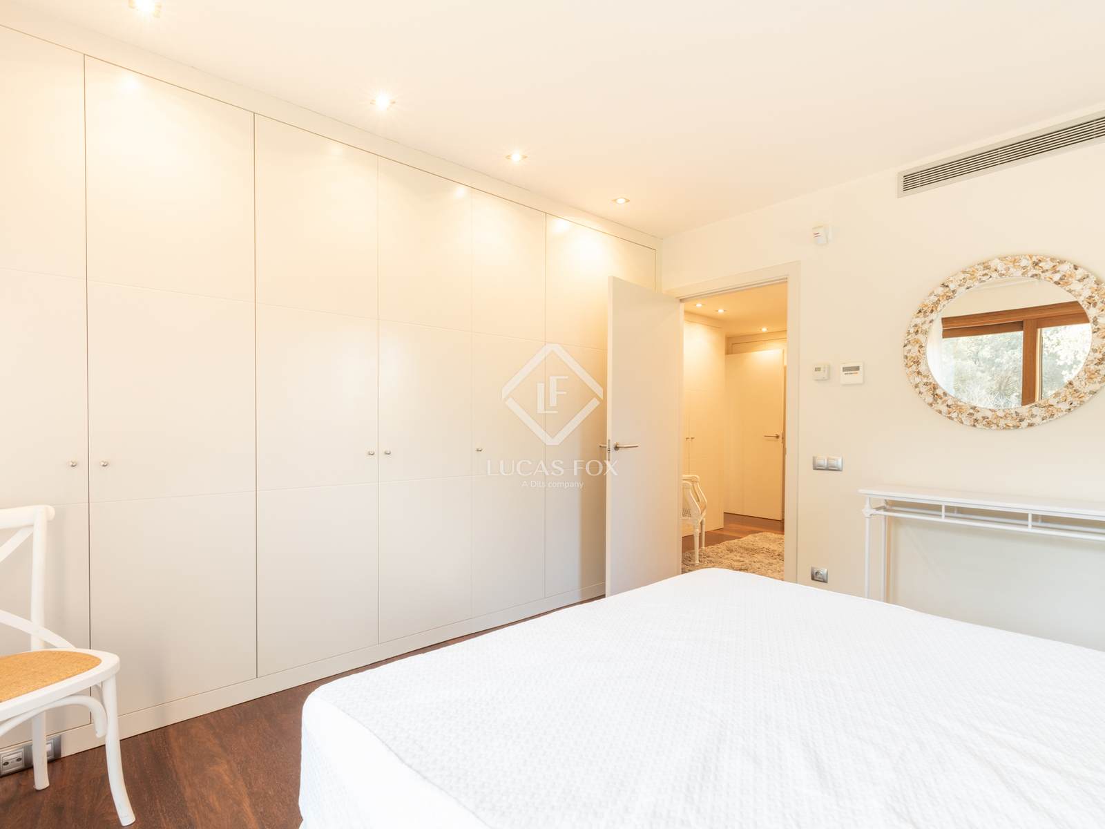 В доме высококачественная отделка, лакированные двери, система домашней автоматизации, полы с подогревом, кондиционер, встроенные шкафы, лифт, автоматические жалюзи, сигнализация и центральный пылесос.