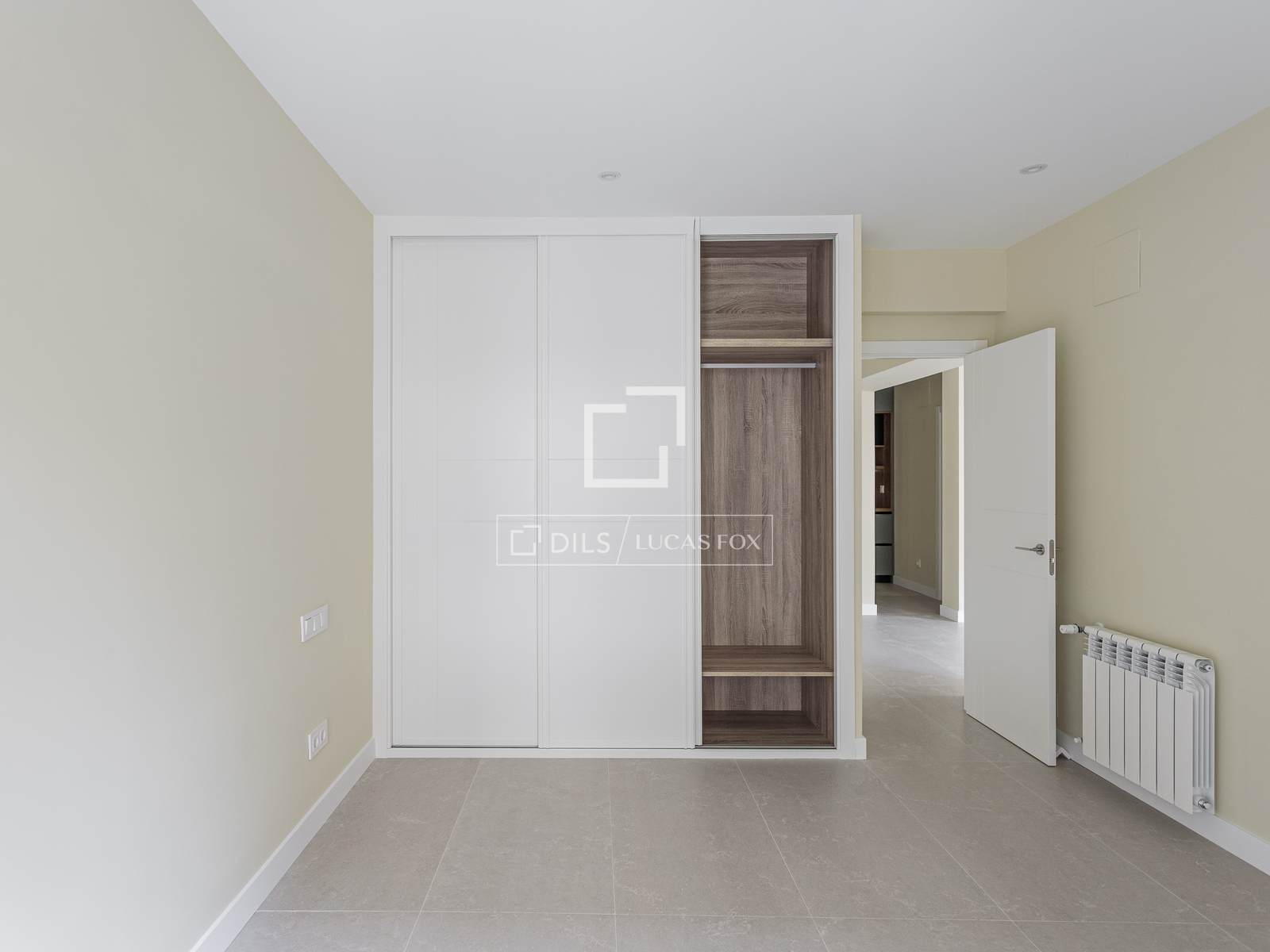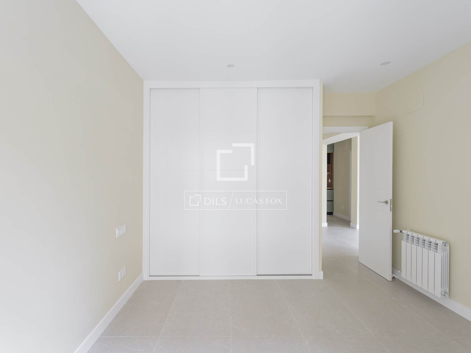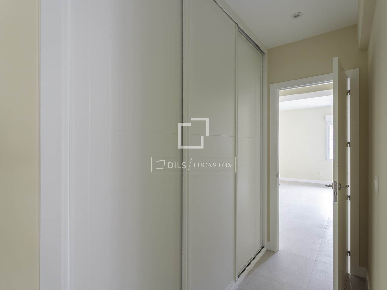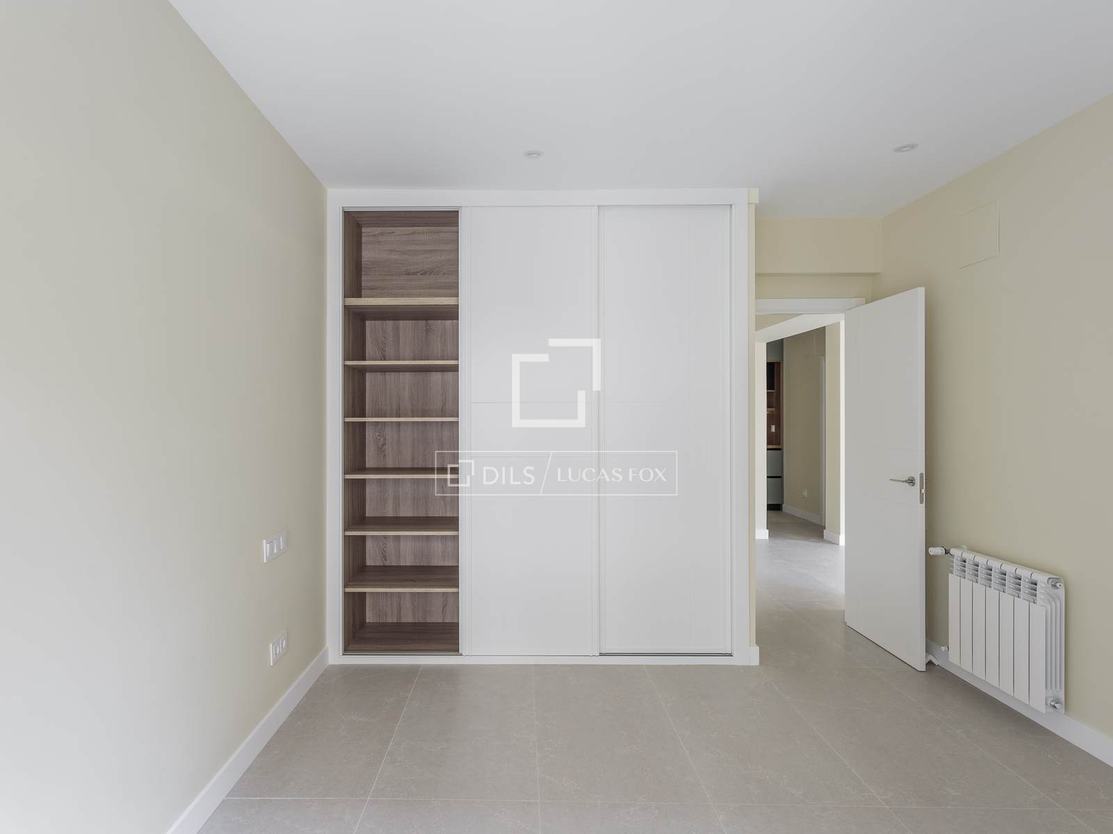 Пройдя мимо гостиной, вы попадете во вторую спальню, на этот раз с двуспальной кроватью, также с просторными встроенными шкафами и местом для кровати шириной 1,60 м. В третьей спальне есть гардеробная, ванная комната и окно с видом на улицу Рафаэля де Риего. Все недавно отремонтировано и готово к заселению, с мебелью или без.