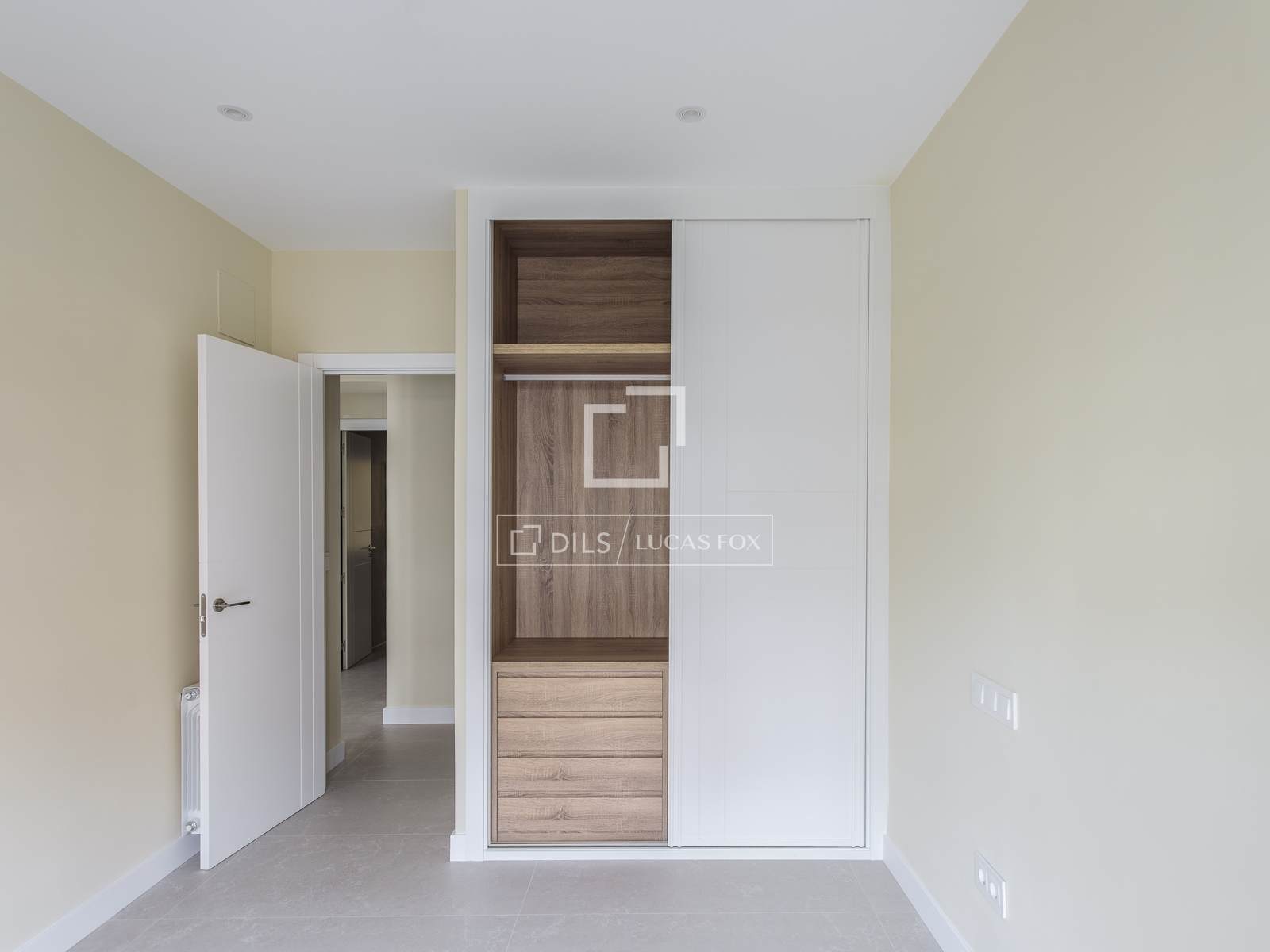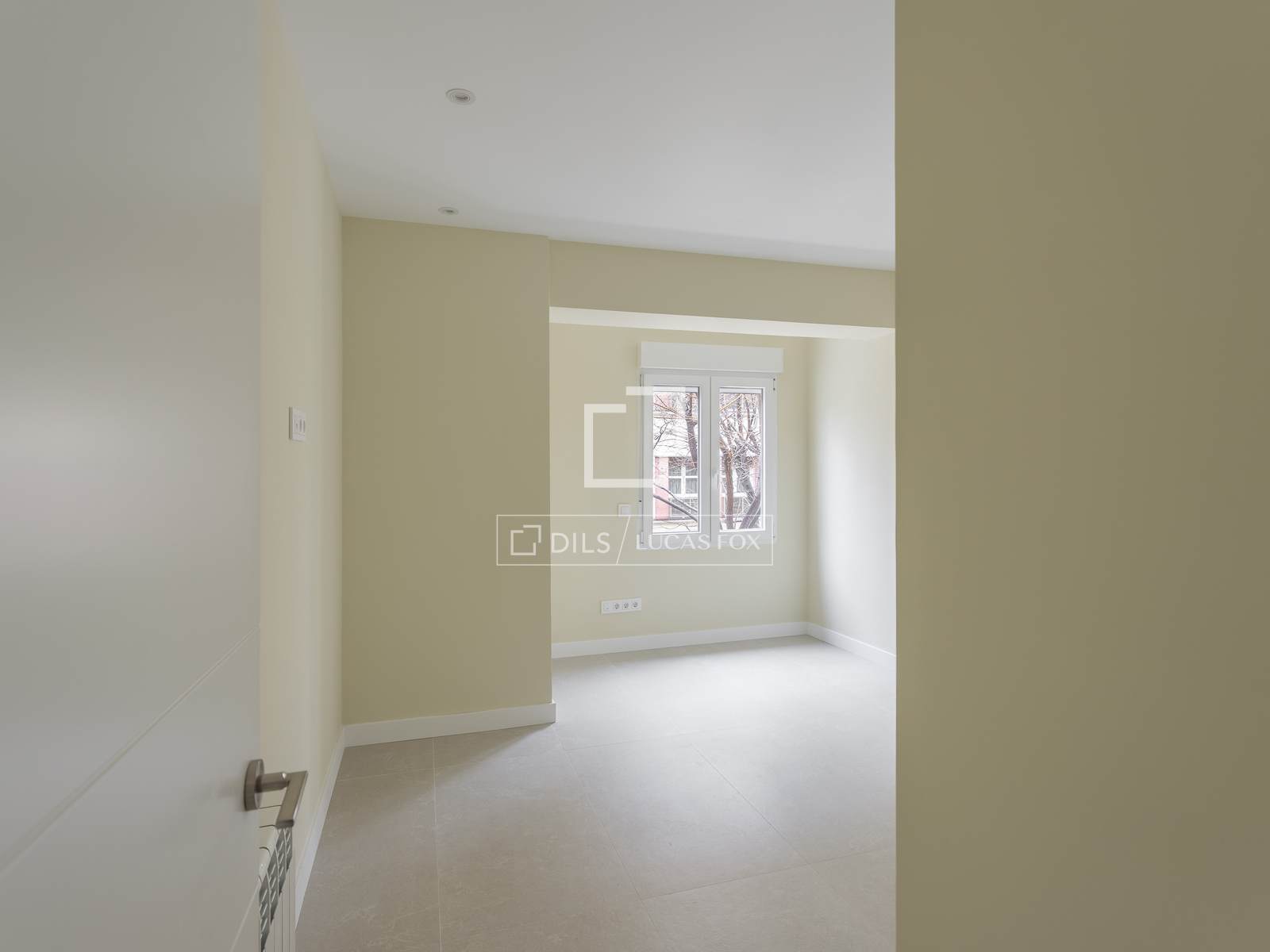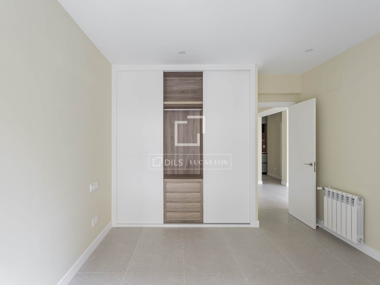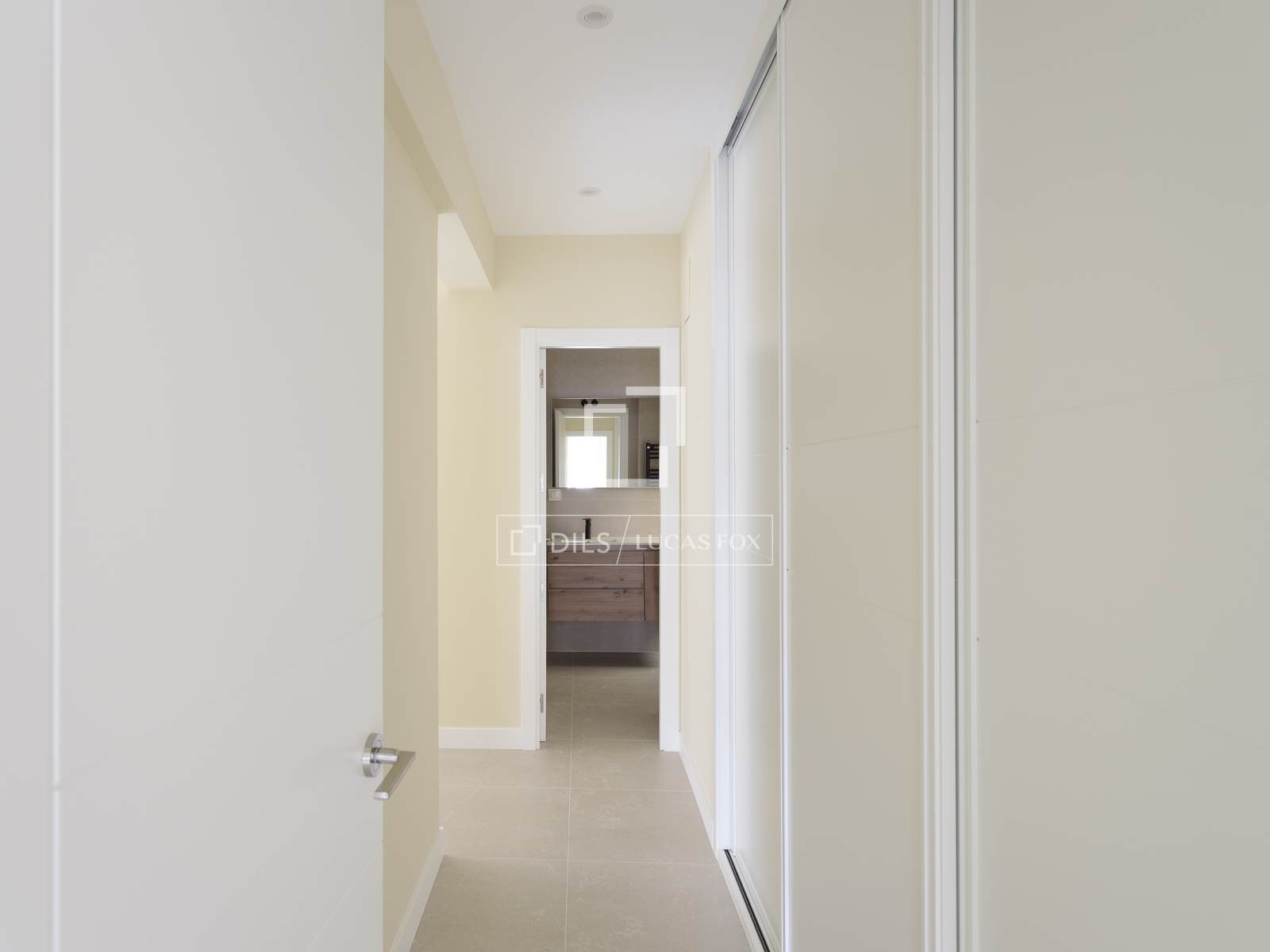 Пройдя мимо гостиной, вы попадете во вторую спальню, на этот раз с двуспальной кроватью, также с просторными встроенными шкафами и местом для кровати шириной 1,60 м. В третьей спальне есть гардеробная, ванная комната и окно с видом на улицу Рафаэля де Риего. Все недавно отремонтировано и готово к заселению, с мебелью или без.