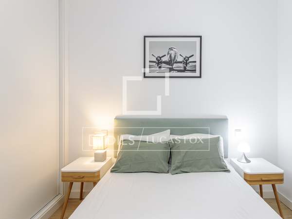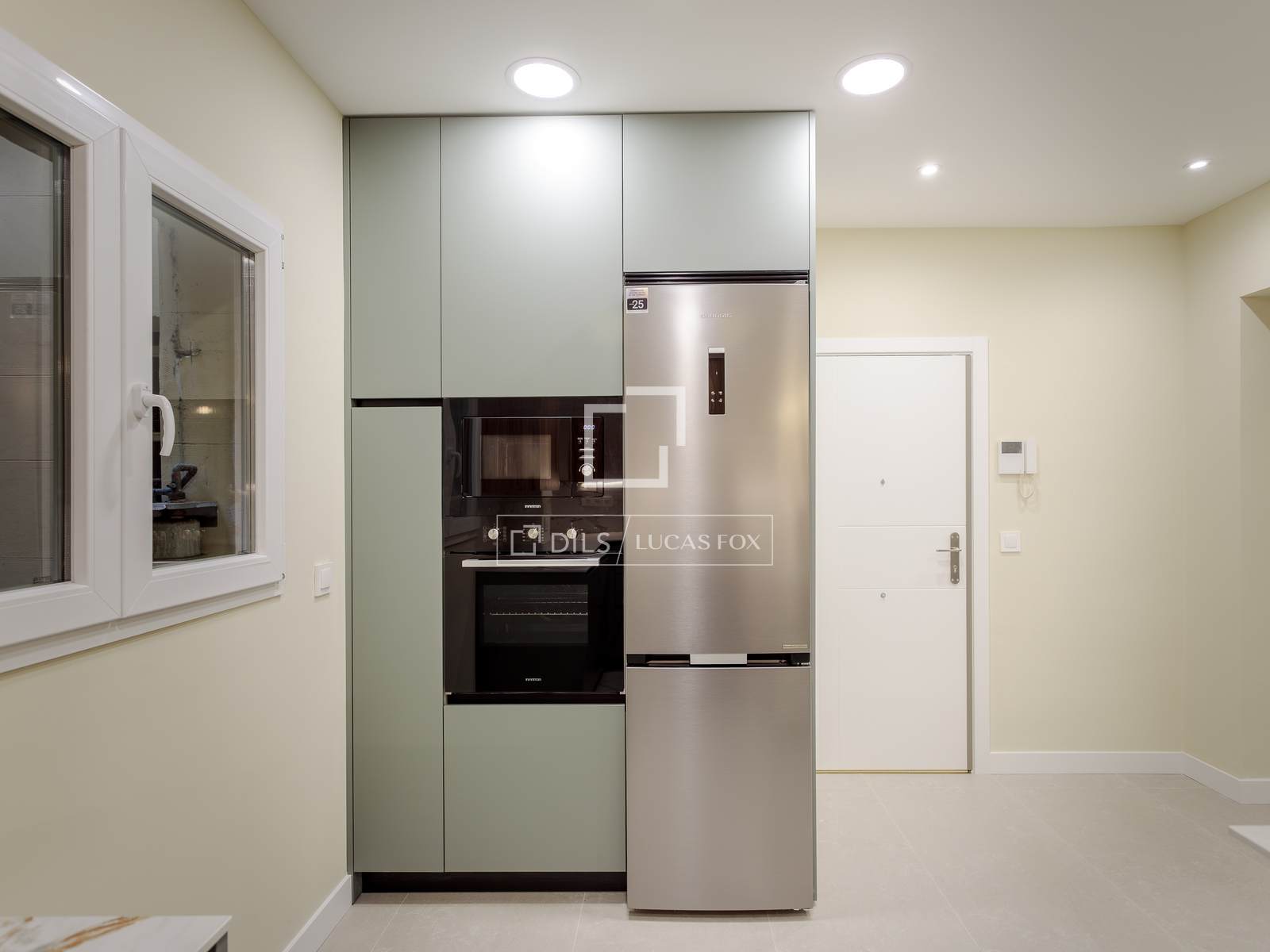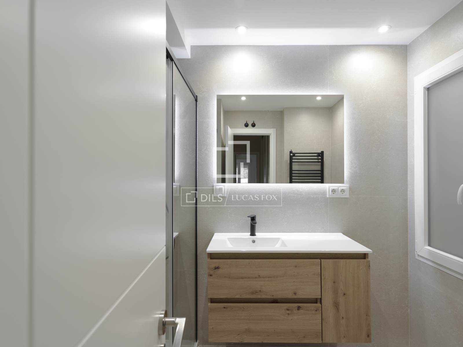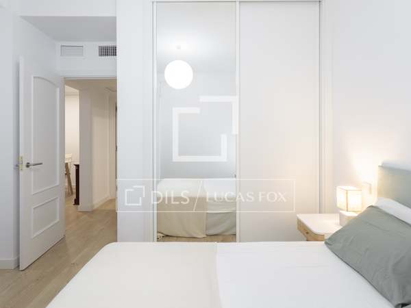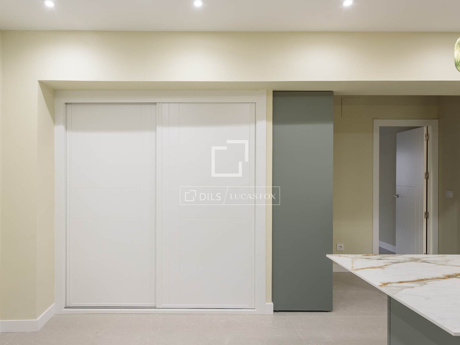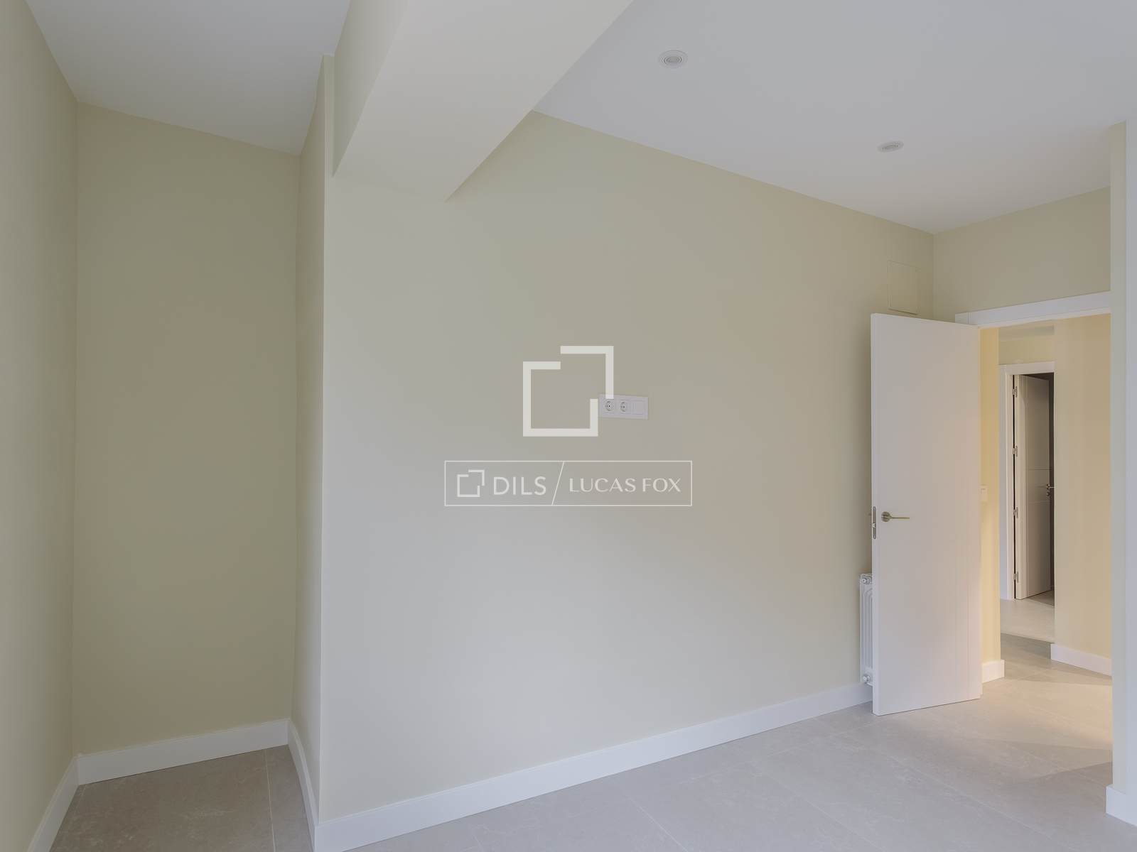 Пройдя мимо гостиной, вы попадете во вторую спальню, на этот раз с двуспальной кроватью, также с просторными встроенными шкафами и местом для кровати шириной 1,60 м. В третьей спальне есть гардеробная, ванная комната и окно с видом на улицу Рафаэля де Риего. Все недавно отремонтировано и готово к заселению, с мебелью или без.