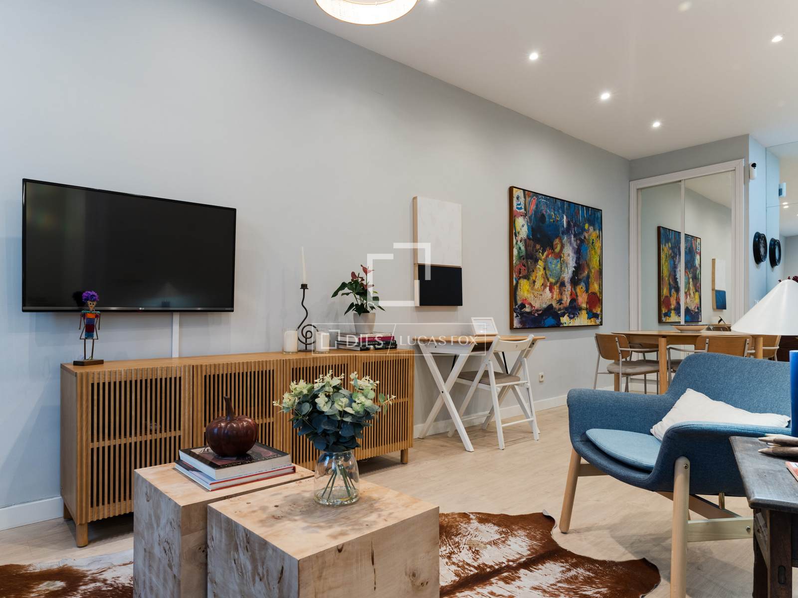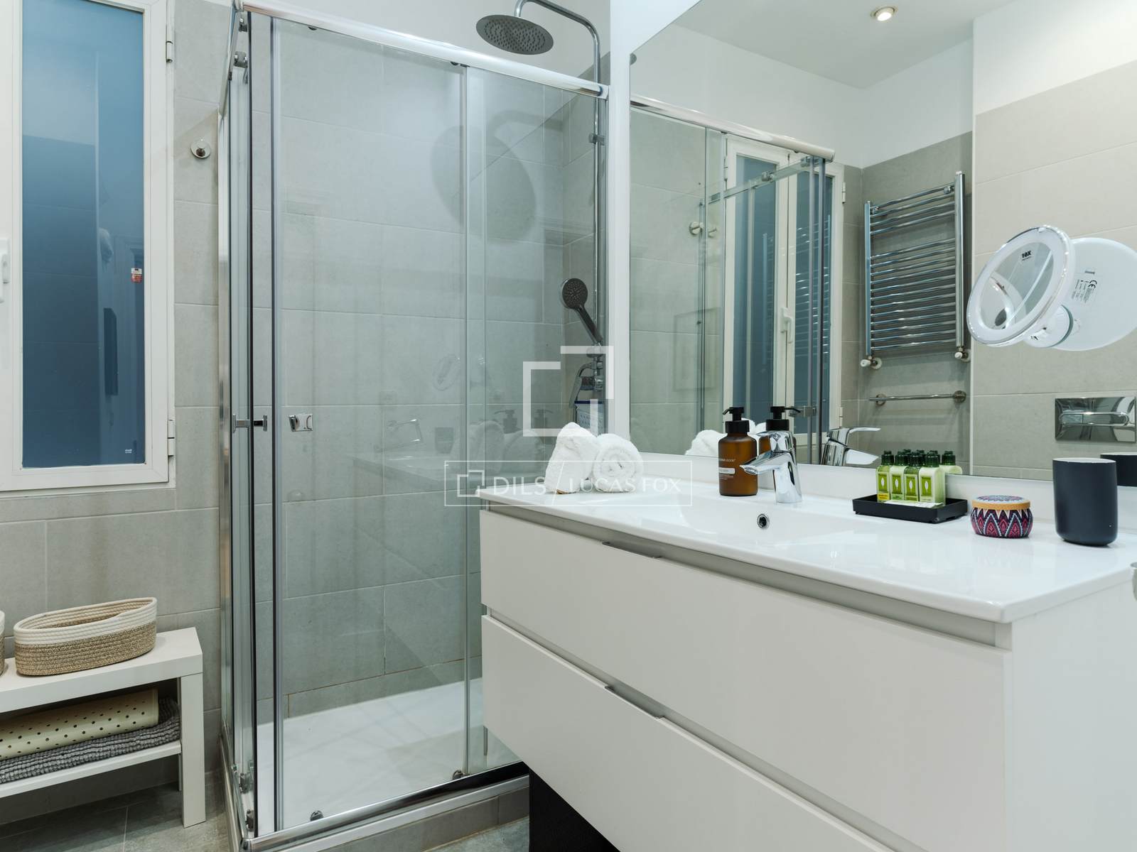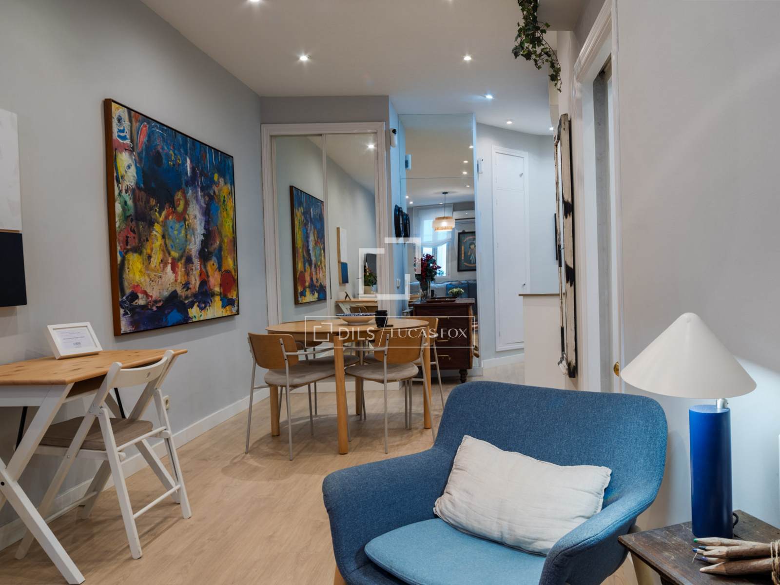 Эта уютная, практичная и современная квартира расположена на втором этаже на одной из самых знаковых улиц престижного района Саламанка, что обеспечивает тишину и покой. Благодаря окнам, выходящим на просторный внутренний дворик, квартира отличается отличным естественным освещением и идеально подходит для размещения до трех человек, или двух взрослых и двух детей. В гостиной открытой планировки находится зона отдыха, обеденный стол на четверых и полностью оборудованная встроенная кухня. Гостиная обставлена удобным диваном-кроватью на двоих, креслом, телевизором с плоским экраном, журнальными столиками и кожаным ковром. В обеденной зоне расположен прямоугольный (раздвижной) белый деревянный стол и четыре стула. Спальня отделена от гостиной раздвижной дверью и оборудована двуспальной кроватью (1,60 x 1,90 метра) с двумя небольшими прикроватными тумбочками и просторными встроенными шкафами. Ванная комната полностью отремонтирована и оборудована душевой кабиной со стеклянной перегородкой. Вход в нее осуществляется через раздвижную дверь из гостиной/обеденной зоны. Просторная и современная кухня белого цвета с кремовой каменной столешницей полностью оборудована бытовой техникой и посудой на шесть человек. Имеется несколько шкафов для хранения. Эта уютная квартира может похвастаться прекрасным центральным расположением и очень комфортным интерьером, выполненным в сдержанном и спокойном стиле. Полы во всей квартире деревянные, за исключением ванной комнаты, где плитка. В здании есть лифт и консьерж. К лифту ведут четыре ступеньки, а в коридор квартиры – еще одна ступенька.