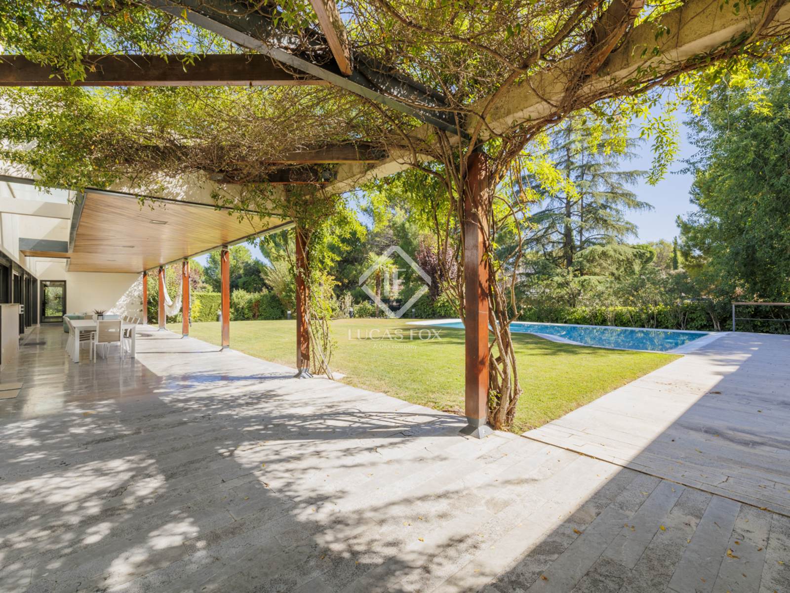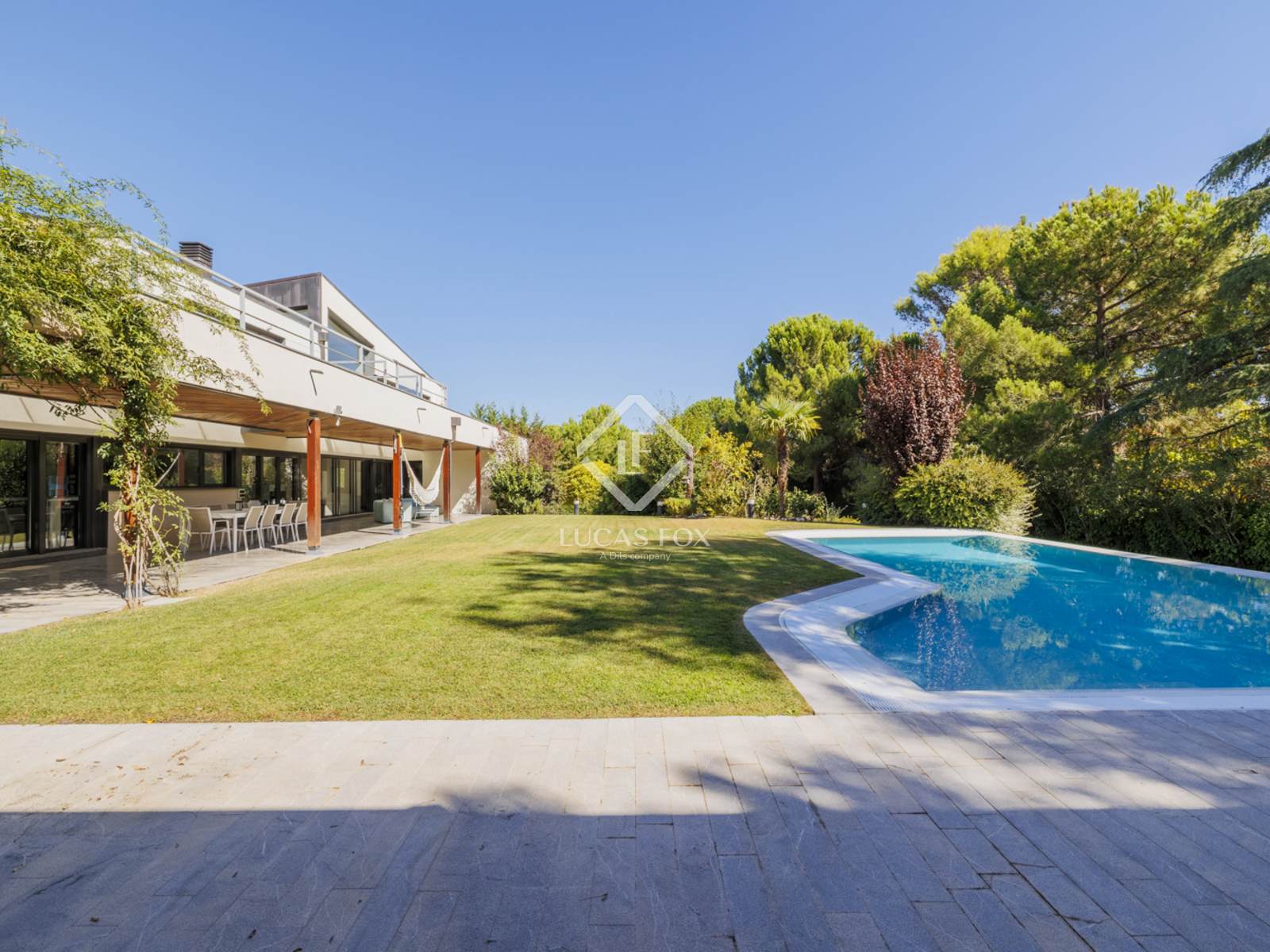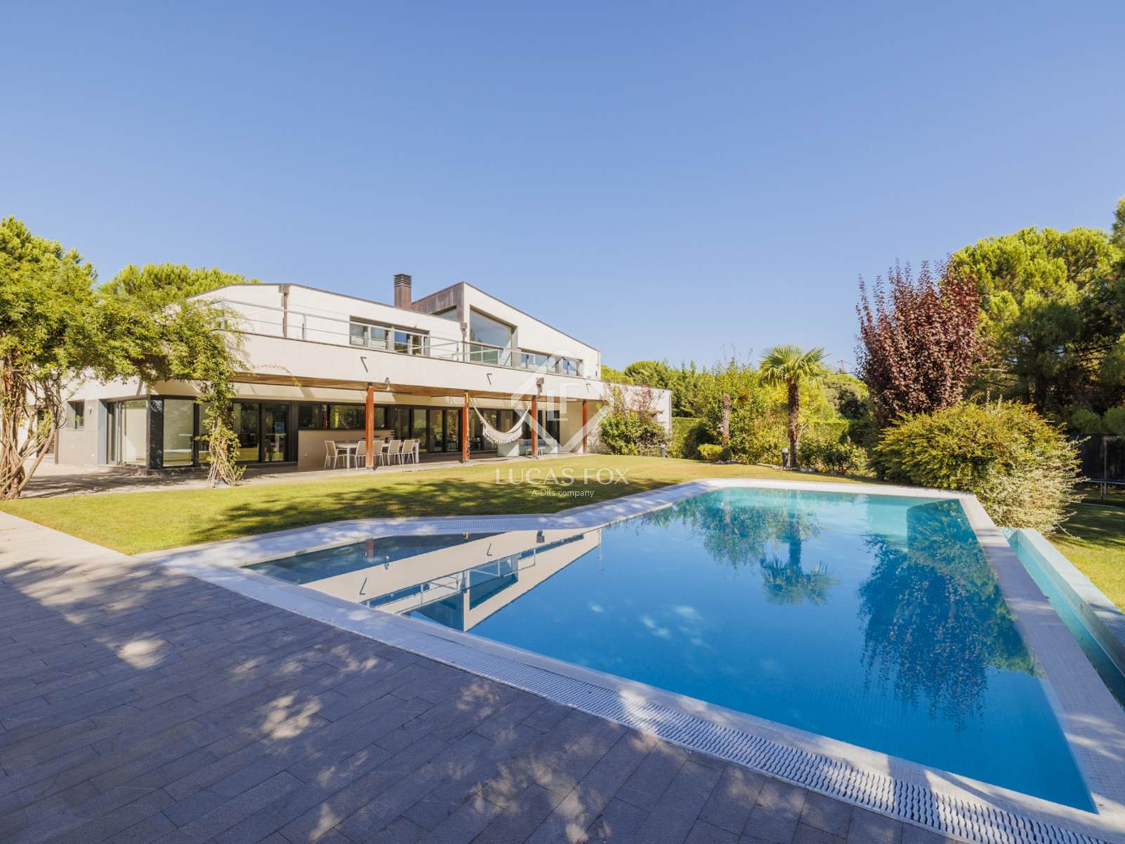 Современная отдельная вилла на идеальном участке площадью 2600 м² с ландшафтным садом, пейзажным бассейном, многофункциональной спортивной площадкой, в эксклюзивном районе Лас-Ломас в Боадилья-дель-Монте, Мадрид.