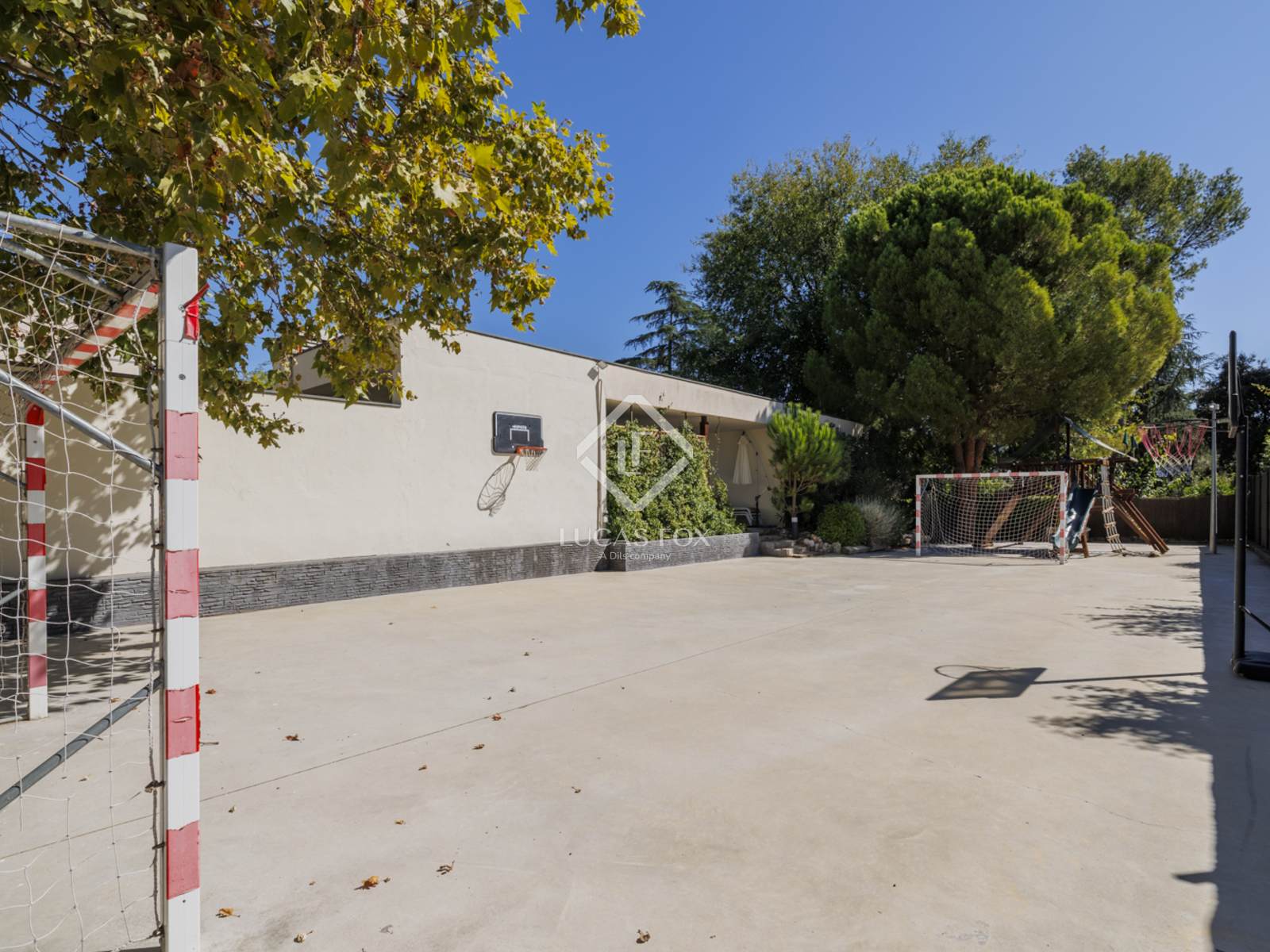 В саду есть потрясающий пейзажный бассейн, уютная зона барбекю, раздевалка с душем и туалетом, идеально расположенная рядом с бассейном, и, что не менее важно, многофункциональная футбольная/баскетбольная площадка.